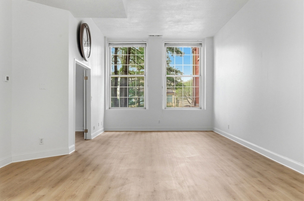 Exciting opportunity at the highly coveted Old Medford High Condominiums! Boasting over 800 square feet of open-concept living, this charming home features soaring ceilings and oversized windows that fill the space with natural light and character. Recent updates during current ownership include high-efficiency windows (2016), a fully renovated kitchen with granite countertops, stainless steel appliances, and abundant cabinet storage (2018), replacement hot water tank (2022) and HVAC system (2023), as well as newly installed flooring (2026). Additional perks include GARAGE parking, extra storage, and access to exceptional building amenities, such as an indoor swimming pool, sauna, tennis courts, and a communal patio with BBQs. Ideally located just steps from vibrant Medford Square with direct access to Route 93, this home offers both comfort and convenience in a truly unique setting.