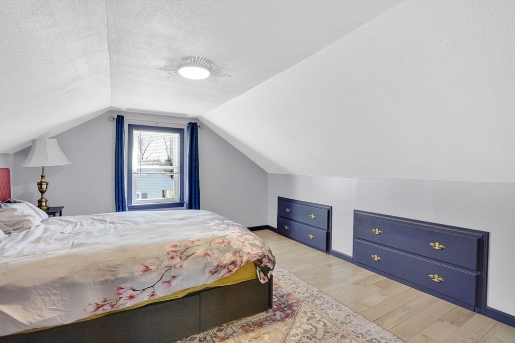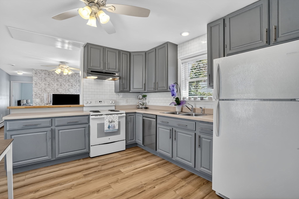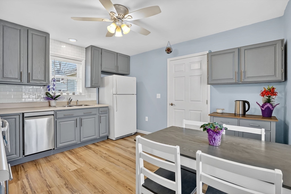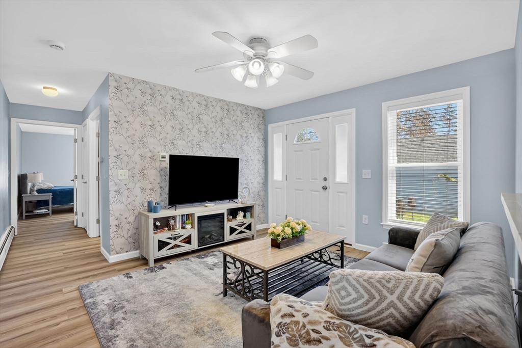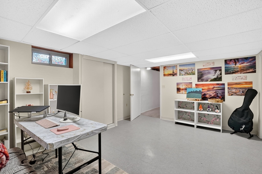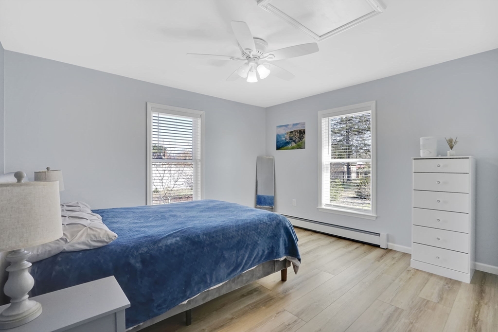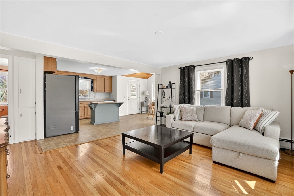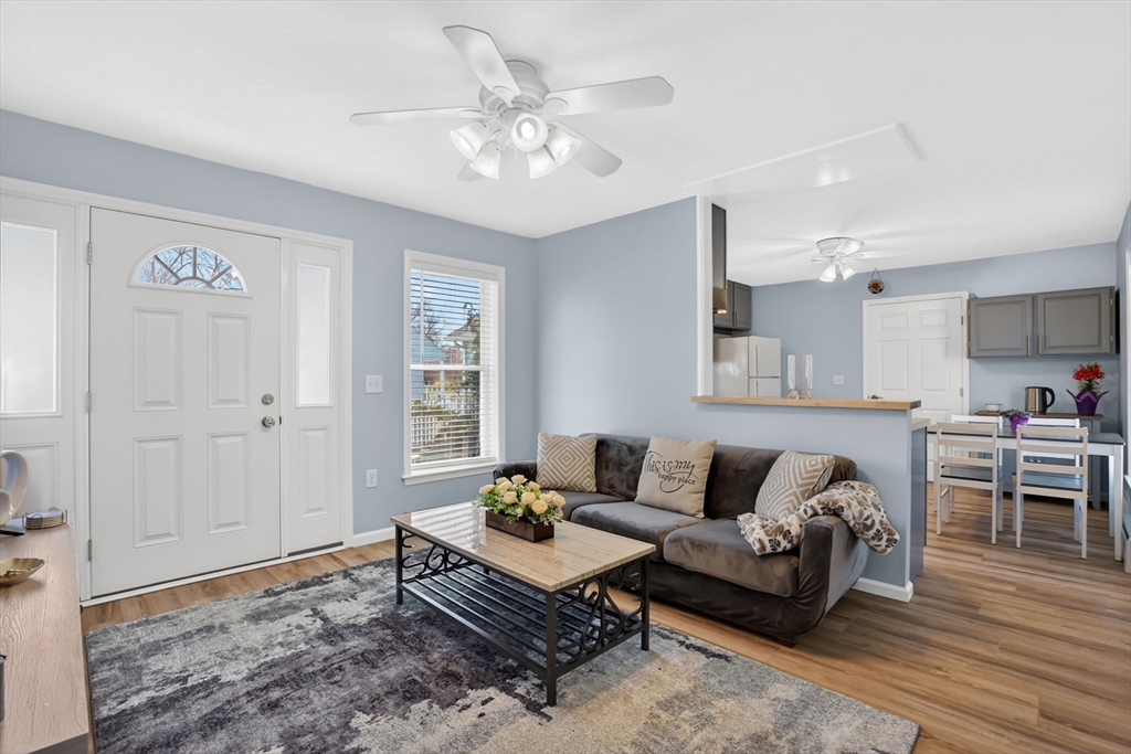 Feeding Hills cape with attached one-level in-law apartment close to Robinson State Park. Original house features open concept eat-in kitchen and living room, 4 beds, 1.5 baths. In-law apartment added in 2012 (APO) features open kitchen and living room, full bath with shower, and spacious main bedroom. ADU can be accessed from the first floor bedroom (currently used as an office) of the main house or from the backyard private side entrance. Full connected basement includes a finished office space, "hidden" room behind the laundry area closet is currently used as craft studio. Plenty of space for workout, hangout, or storage space in the unfinished portion of the basement. Private fenced back yard. Recent updates include roof on the main home in 2023, high-efficiency gas 4-zone heating system, on-demand hot water system, replacement windows, hardwood flooring in upstairs bedrooms, and LVP flooring in ADU. First showings at the open house April 30 from 4:30-6.