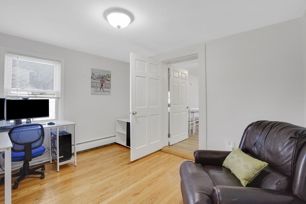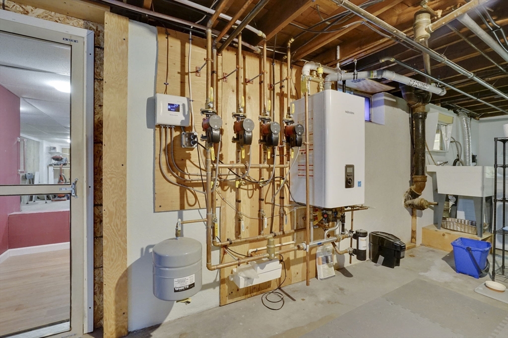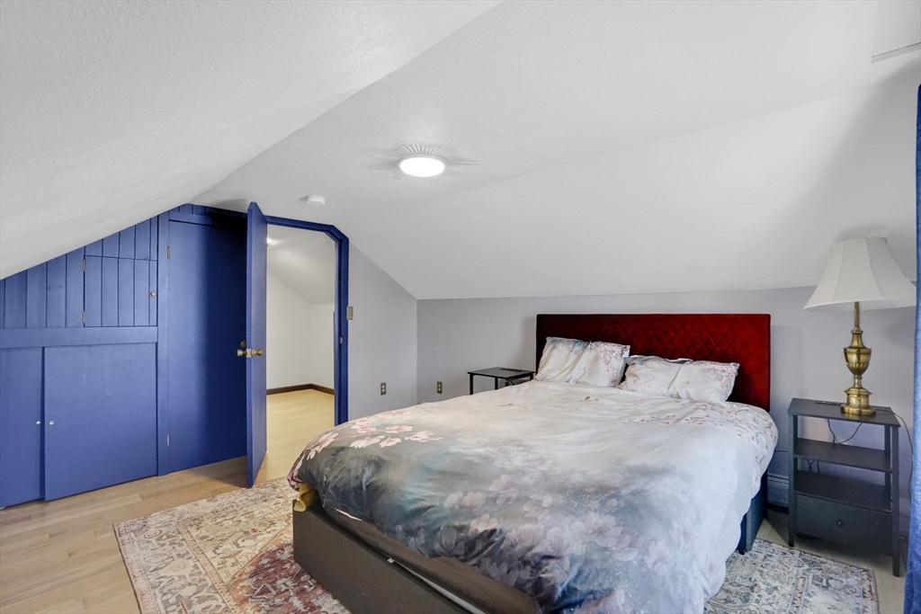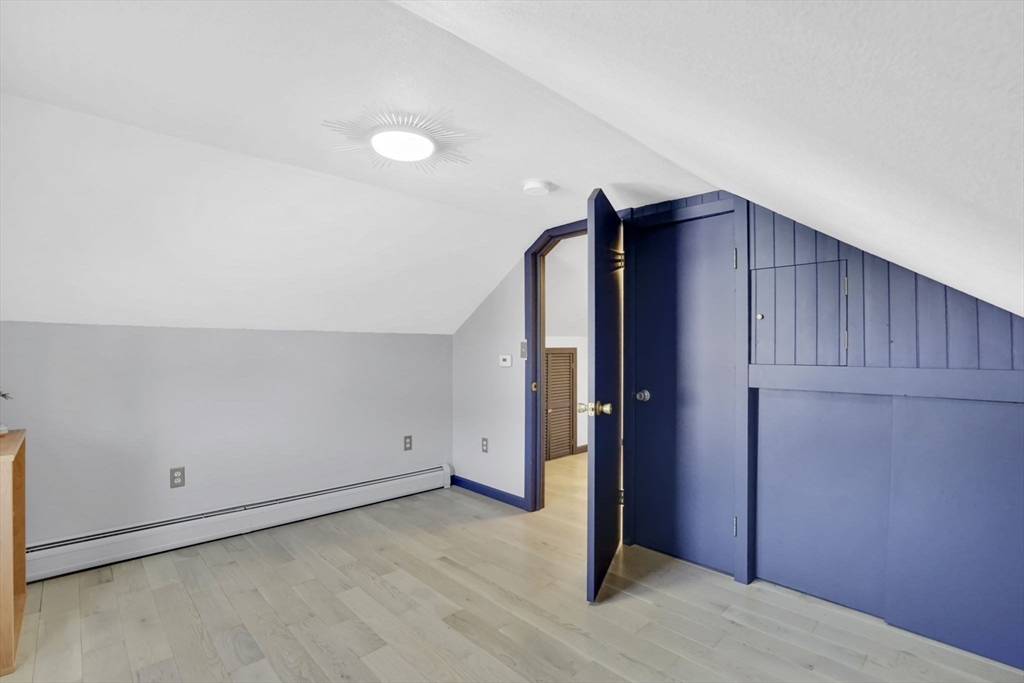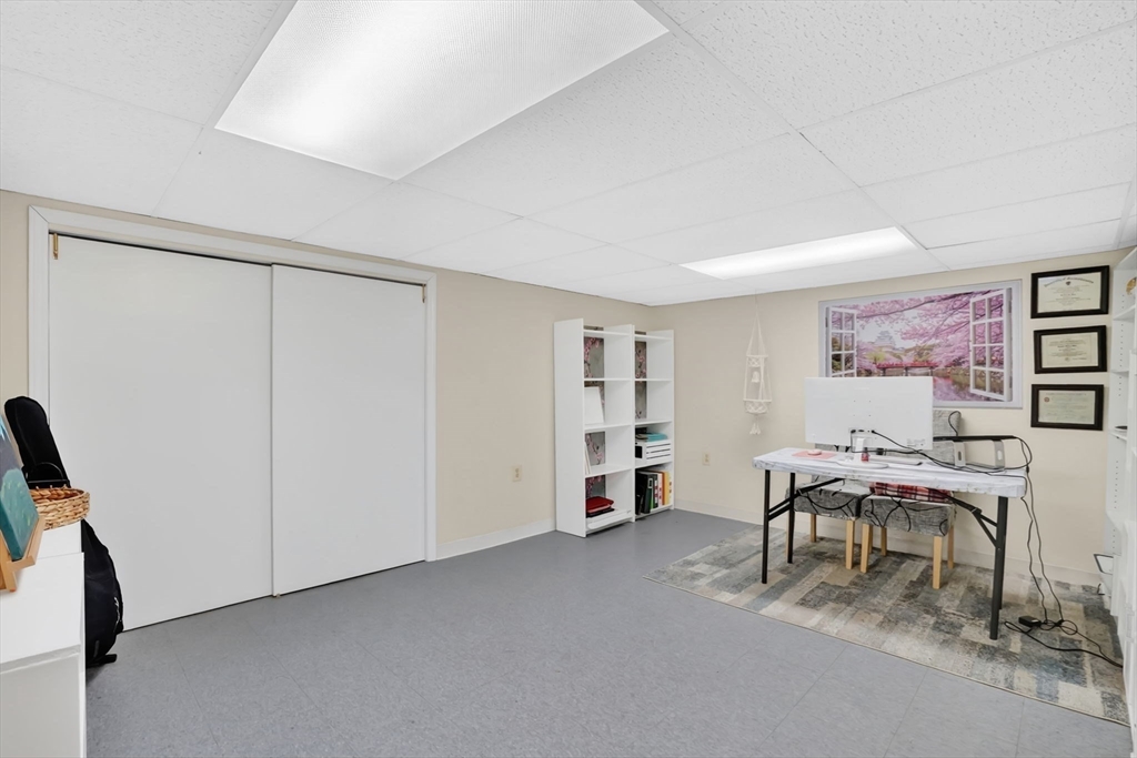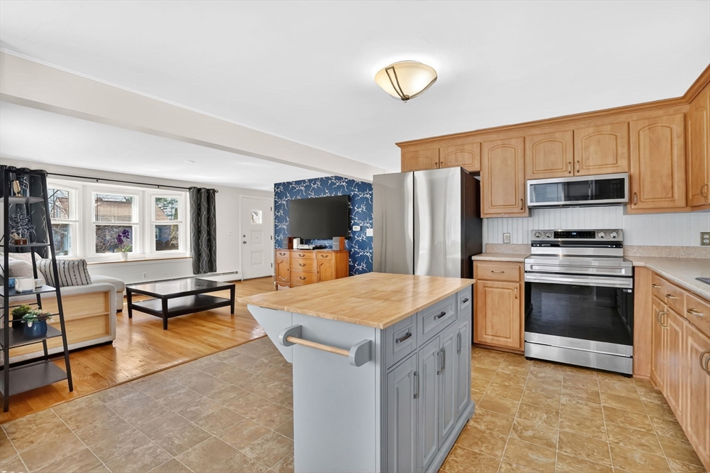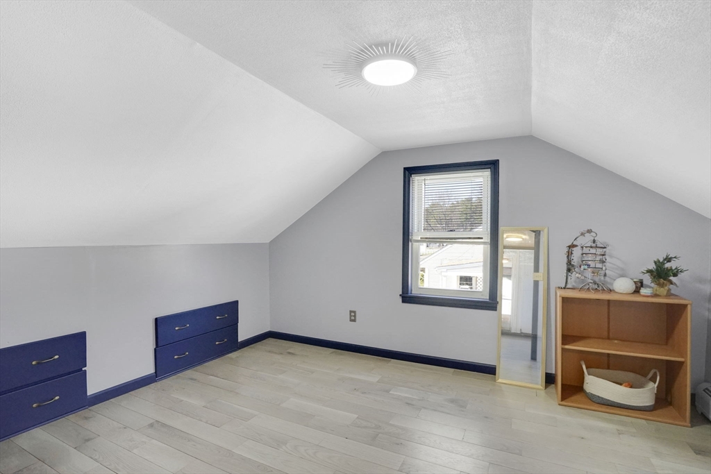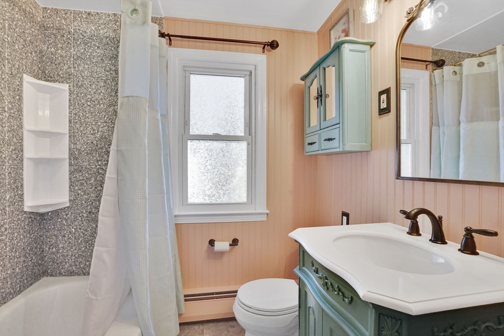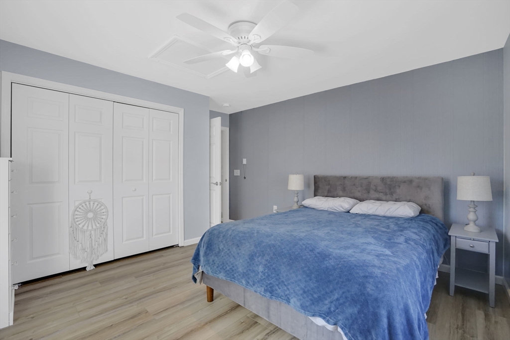 Feeding Hills cape with attached one-level in-law apartment close to Robinson State Park. Original house features open concept eat-in kitchen and living room, 4 beds, 1.5 baths. In-law apartment added in 2012 (APO) features open kitchen and living room, full bath with shower, and spacious main bedroom. ADU can be accessed from the first floor bedroom (currently used as an office) of the main house or from the backyard private side entrance. Full connected basement includes a finished office space, "hidden" room behind the laundry area closet is currently used as craft studio. Plenty of space for workout, hangout, or storage space in the unfinished portion of the basement. Private fenced back yard. Recent updates include roof on the main home in 2023, high-efficiency gas 4-zone heating system, on-demand hot water system, replacement windows, hardwood flooring in upstairs bedrooms, and LVP flooring in ADU. First showings at the open house April 30 from 4:30-6.