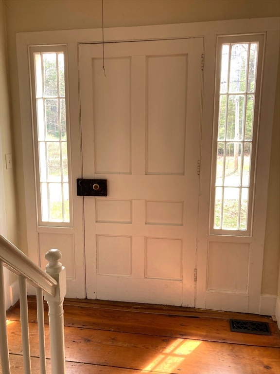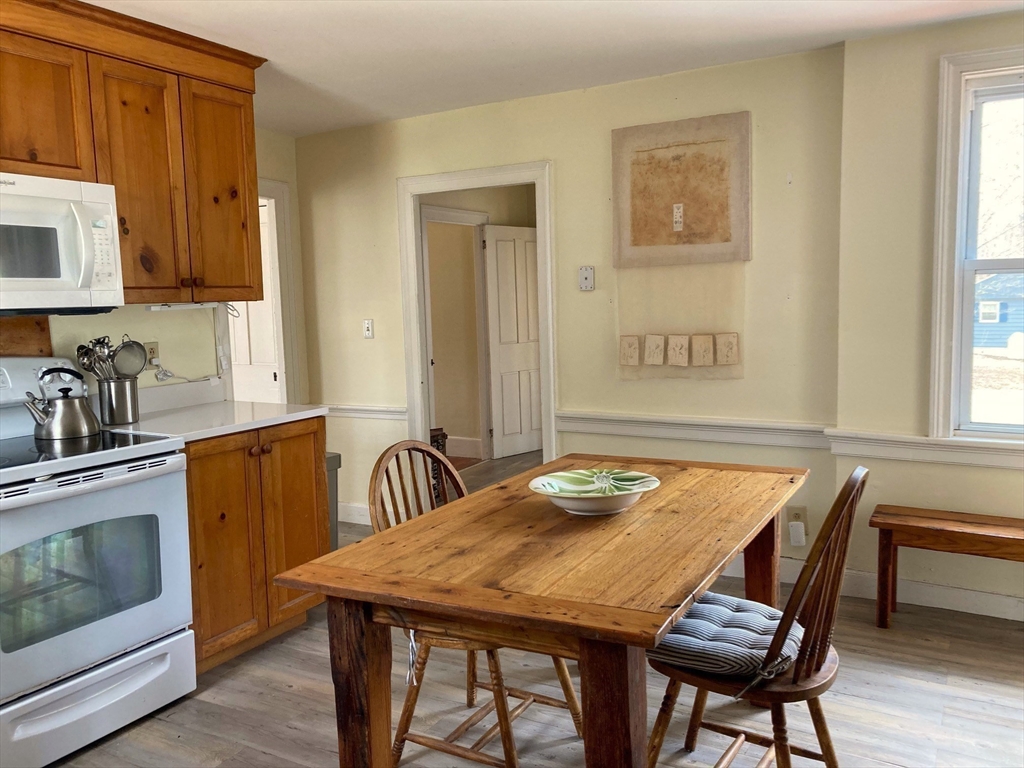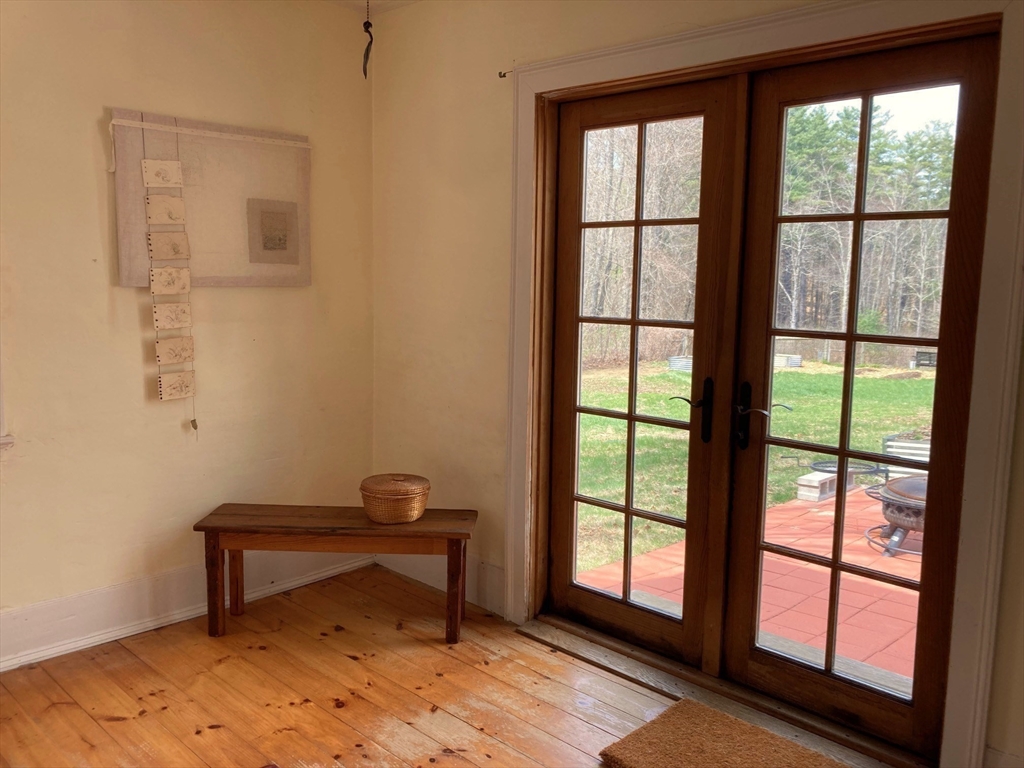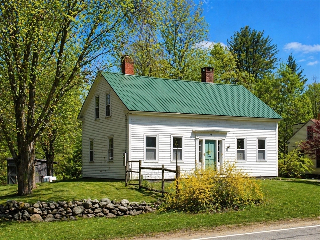 NATURE-LOVER’S PARADISE!!! Updated, antique Cape nestled by miles of conservation land and trails. The peaceful, private backyard overlooks a marsh, pond, and woodlands for wildlife viewing at its best. This 4 bed/1 bath home with living, dining, kitchen, library, and laundry blends period charm with modern efficiency. Highlights include original wide-pine floors, classic central stair, and preserved woodwork, paired with state-of-the-art heat pumps providing zoned heat, A/C, and hot water—all with no fossil fuels. Additional upgrades include double-pane windows, metal roof, soapstone wood stove, and foam insulation for comfort and warmth. Also includes horse stable, goat shed/chicken coop, enclosed fencing, and raised bed gardens for hobby farm. Extra storage space with tack room, attic, and mud entry. Quiet, friendly neighborhood close to historic Town Common, major routes, shopping, and top-rated Petersham Center School. Make this sweet cottage home your slice of heaven today!