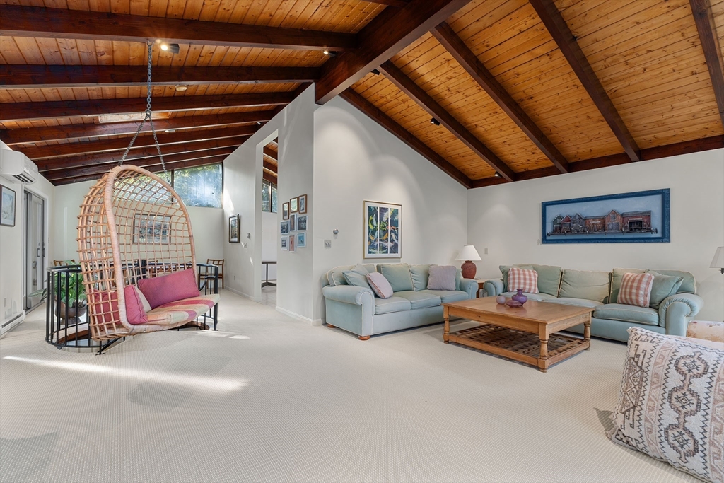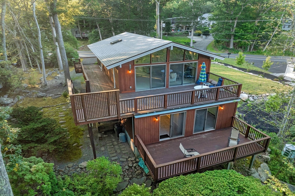 VIRTUALLY STAGED. Floor plans to support furniture placement. | Tucked into one of Magnolia’s most desirable settings, 150 Hesperus Avenue offers a rare blend of privacy, light, and architectural character. This four bedroom, three bath home features a distinctive upside down layout designed to maximize natural light and capture the surrounding woodland views. The main living level showcases soaring ceilings and oversized sliders that open to expansive wraparound decks, creating a seamless indoor outdoor experience reminiscent of a modern treehouse. The lower level offers spacious, quiet bedrooms with direct access to the outdoors, enhancing the home’s connection to nature. Set moments from Magnolia Beach, Ravenwood trails, and downtown Gloucester, with convenient access to the highway and commuter rail to Boston. Recent improvements include a new septic system. A unique offering that combines comfort, style, and an exceptional setting.