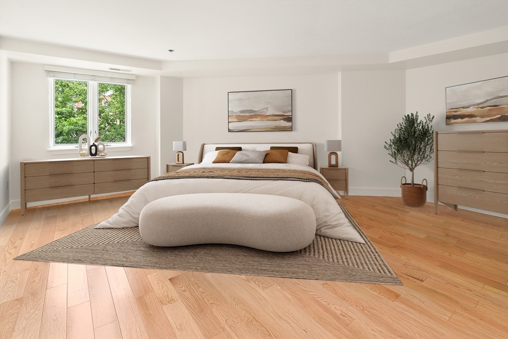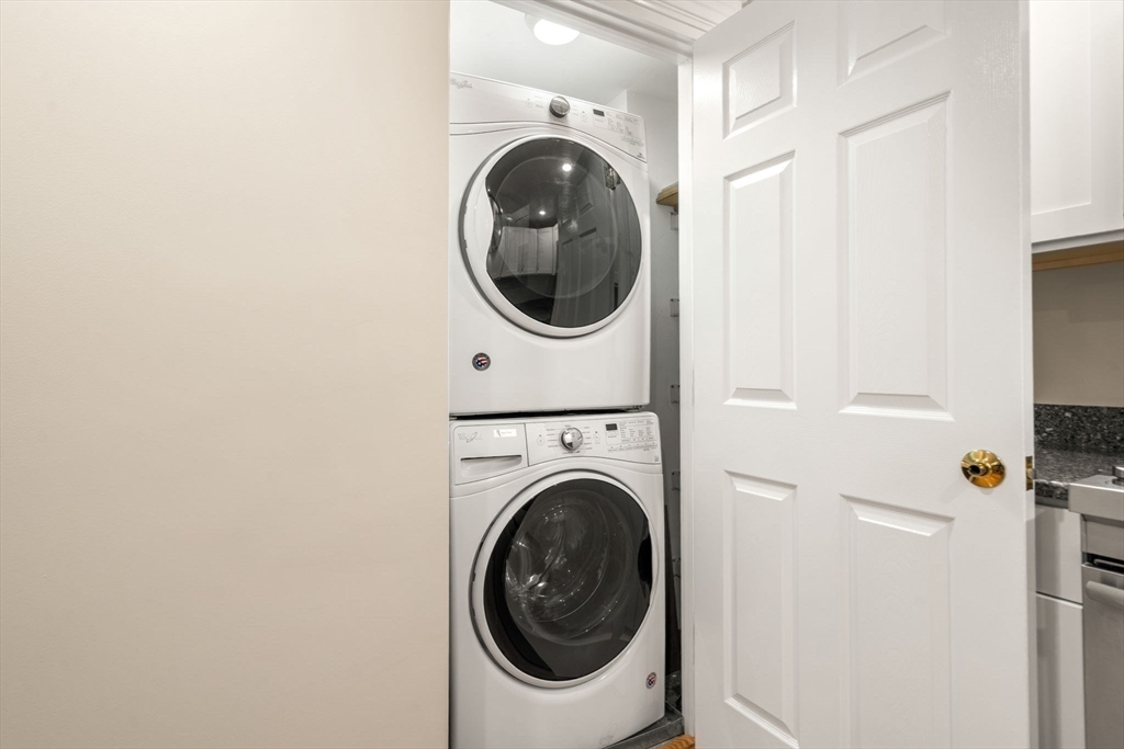 All windows in this renovated residence overlook a lushly landscaped courtyard. Generous living space offers hardwood floors throughout and the dining room presents the character of exposed beams. A spacious nook off the living room is ideal for an office or guest area. Enjoy cooking in your large eat-in kitchen with white cabinets, recessed lighting, quartz counter tops and Jenn-Air appliances. The washer/dryer sits in a separate laundry room within the kitchen. For quiet and comfort, the oversized bedroom accommodates king-size furniture and has two closets. Building amenities include elevator, concierge, exercise room, garage (for an additional fee), bicycle area, private storage and a peaceful courtyard. This exceptional property is located steps to Boston Harbor, Faneuil Hall Marketplace, the Financial District and several MBTA stations. Experience the charm of living in Boston's Waterfront/North End. You are almost home.