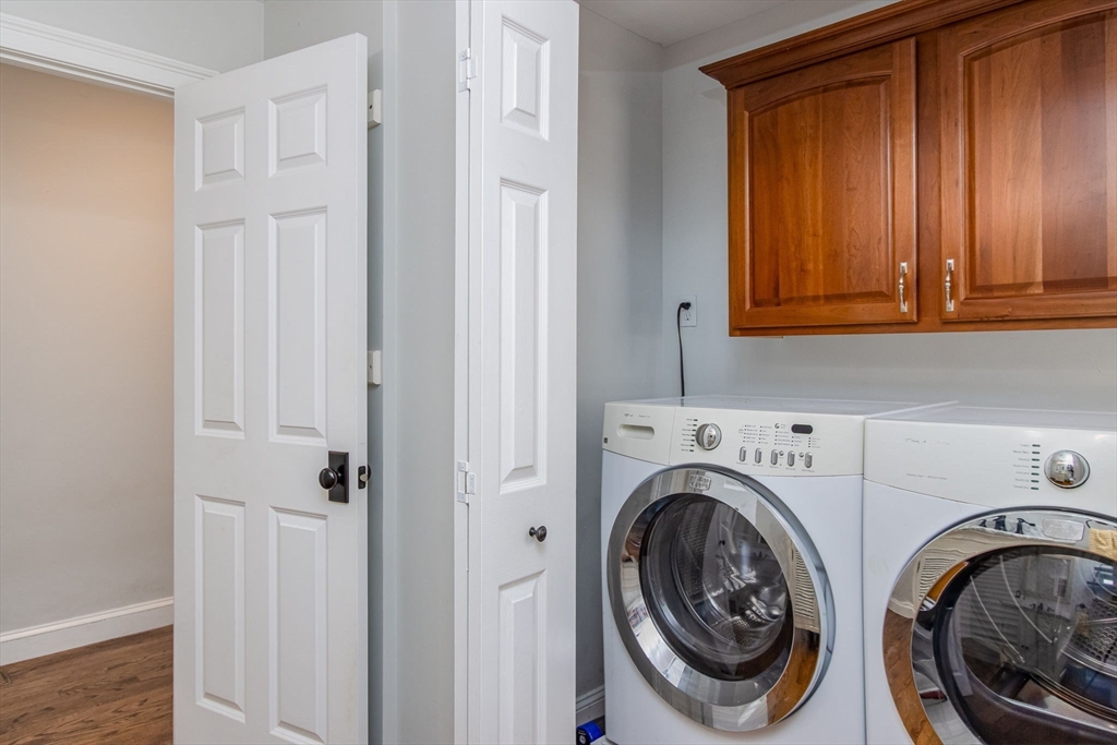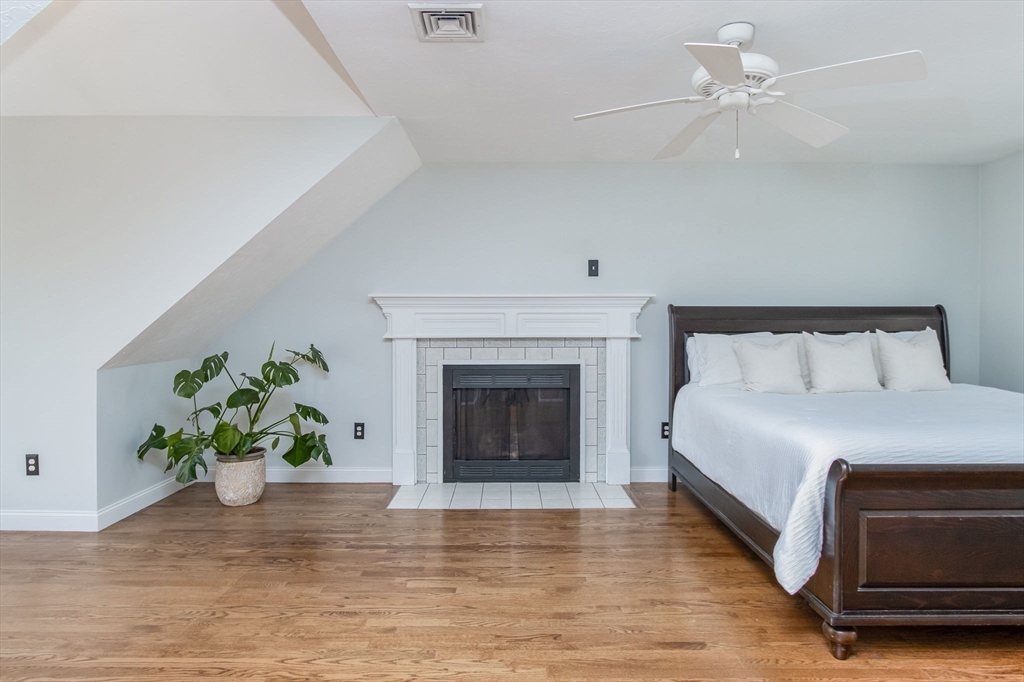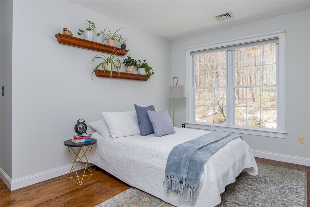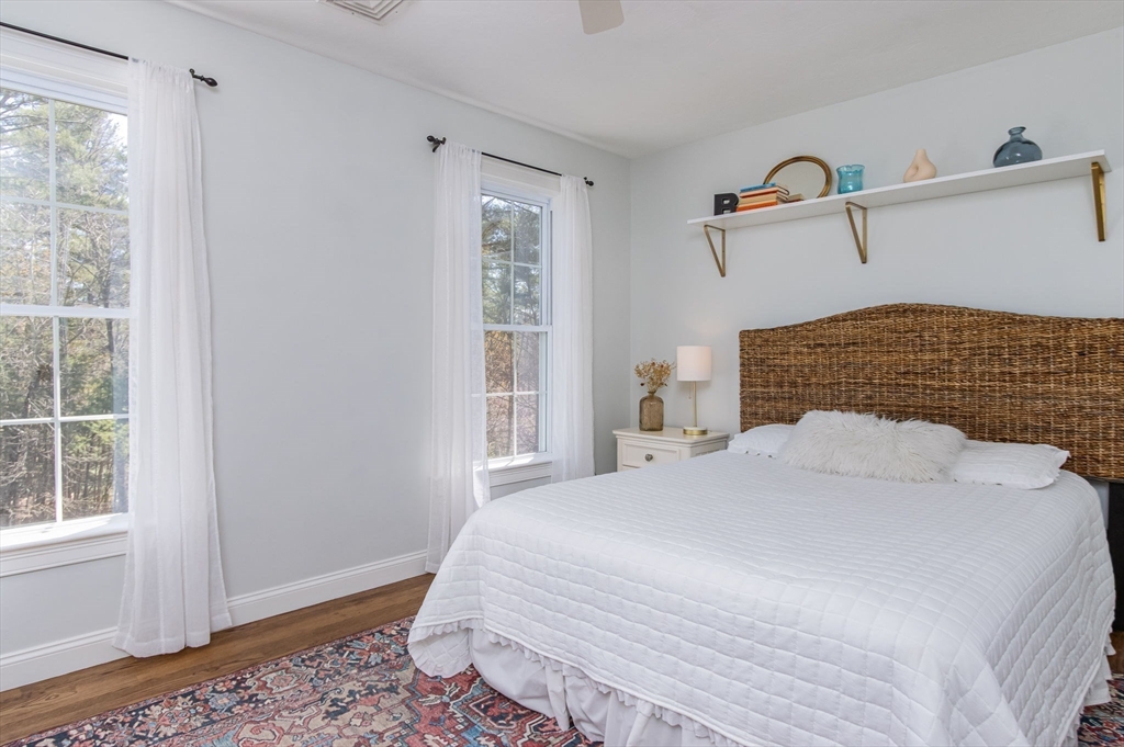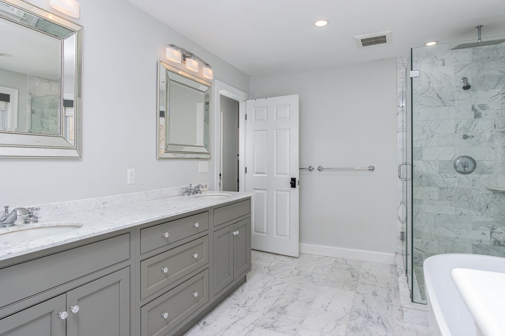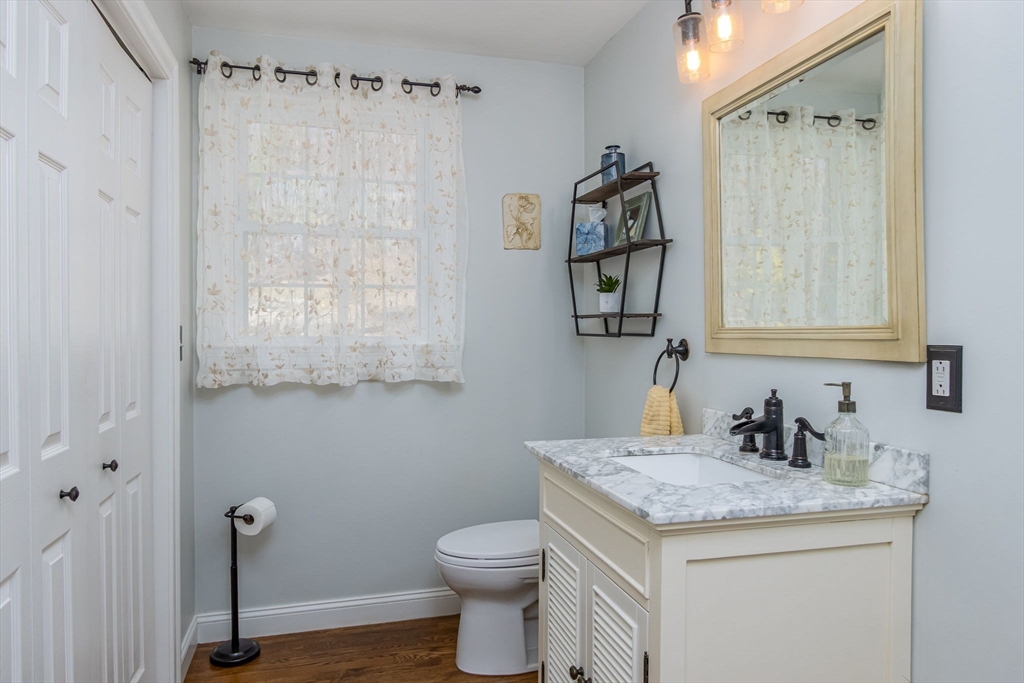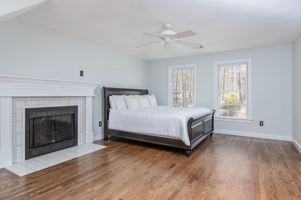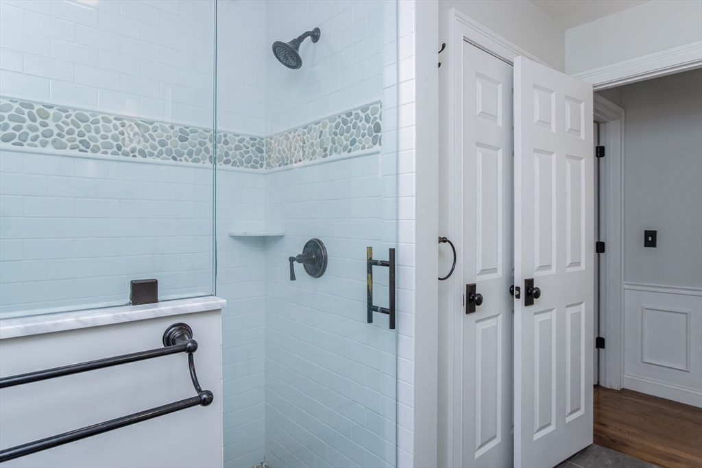 Gorgeous colonial home set back from a quiet country road directly abutting conservation land. Stunning updates featured throughout. Functional floor plan catering to both entertaining & everyday living. Hardwood flooring & beautiful trim work throughout the home. Remodeled kitchen w/inset cabinetry, built-in fridge, wall oven/micro & dining area. Open concept dining room w/ wainscoting & crown molding. Formal living room/office. Spacious front-to-back family room w/ inviting fireplace & marble surround. Updated half bath/laundry. Elaborate primary suite w/ walk-in closet & spa-like bath boasting tiled shower, soaking tub, & double sink vanity. Three spacious bedrooms share an updated bathroom w/ double sink vanity & tiled shower w/ built-in bench. Versatile space in bonus room w/ separate staircase also found on the 2nd floor. Walk-up attic for expansion potential & all your storage needs. Finished LL rec room. Well manicured landscaping, rear deck, & very private outdoor space.
