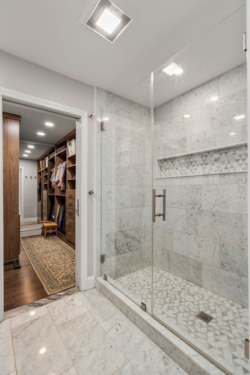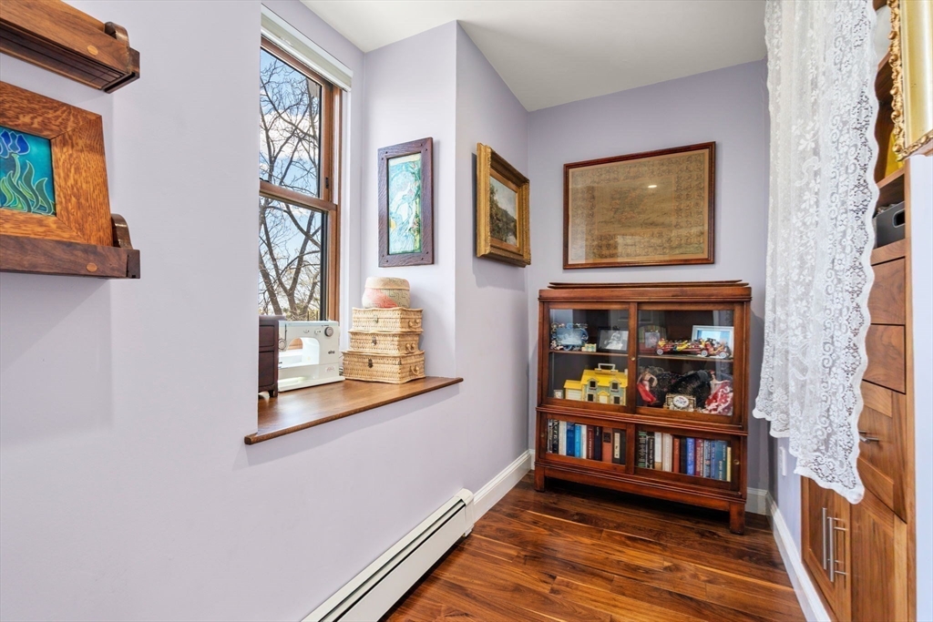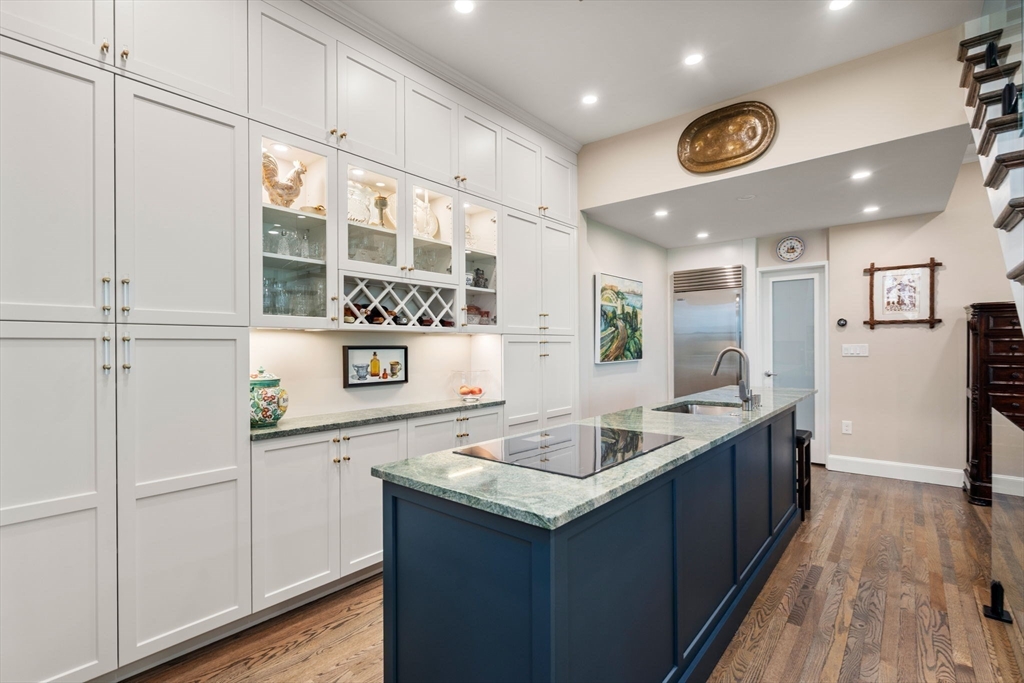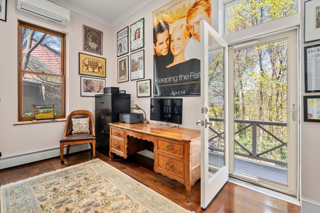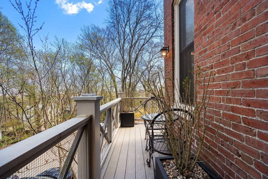 Nestled in a grand brick Victorian-era residence in coveted Corey Hill this exquisitely renovated three-bedroom, two and one-half bathroom townhouse offers a blend of architectural elegance and sophisticated modern living. The separate entrance and location in the building give it a unique tree-house feel and abundant privacy. Soaring 9+ foot ceilings, gleaming hardwood floors, well-proportioned rooms, and oversized Marvin Windows create a luminous backdrop. The main living level has an alluring open flow. A sleek 2025 kitchen with premium appliances, granite countertops, and island connects to inviting dining and relaxing areas. The spacious bedrooms include a luxurious primary bedroom and bathroom appointed with Carrara marble and radiant flooring. A large walk-in California Closet, plentiful custom storage, and a bonus room add significant appeal. Sweeping seasonal views of Boston and Cambridge, parking, and an exclusive-use porch complete this magnificent home