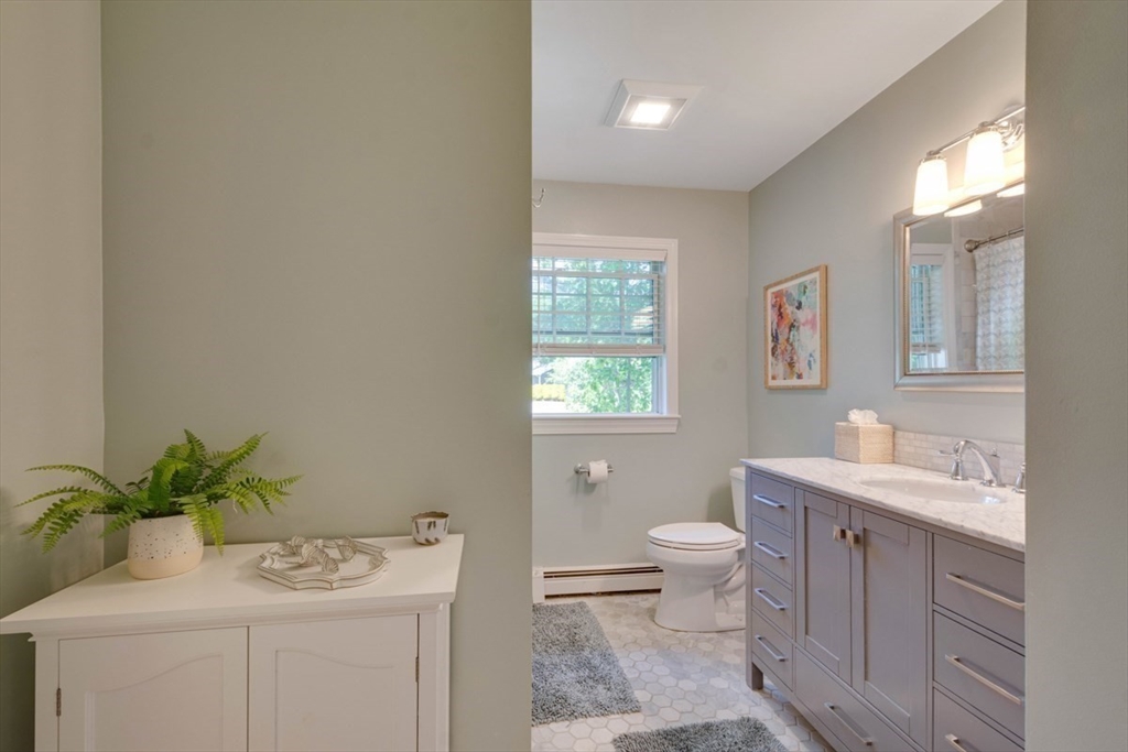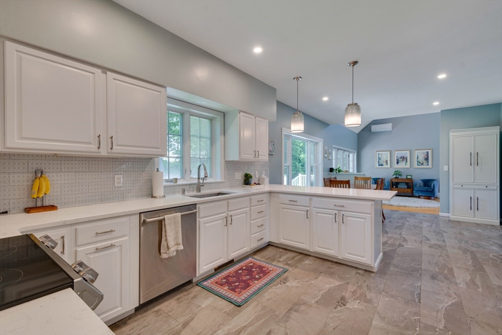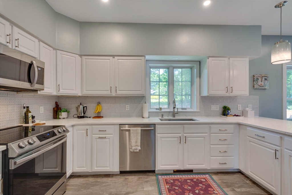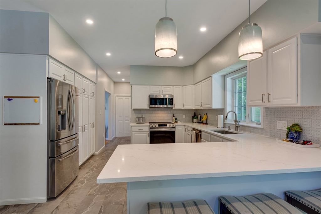 Four levels of living in desirable West Woburn! Welcome to 3 Paris Way, set on a quiet cul-de-sac in a friendly neighborhood with easy access to shopping, schools, and major highways. This 3,000+ sq ft home offers a flexible layout with formal living and dining (currently office), updated kitchen with breakfast nook and new picture window, and a cathedral-ceiling family room with abundant natural light. The second floor features a primary suite with updated bath and walk-in closet, plus two bedrooms, full bath, and office. Third floor offers a 4th bedroom and sitting area. Finished lower level with bonus room. Two-car garage and ample storage. Enjoy a well-landscaped yard with irrigation and oversized deck. Recent updates: kitchen, baths, deck, doors, garage doors/opener, appliances, and furnace.
