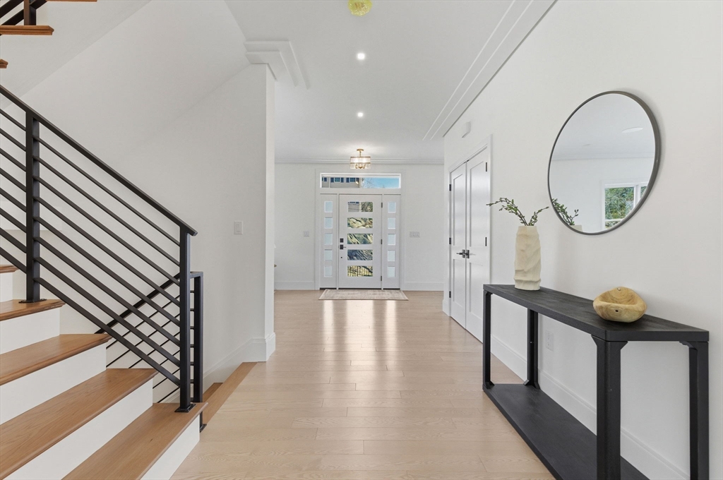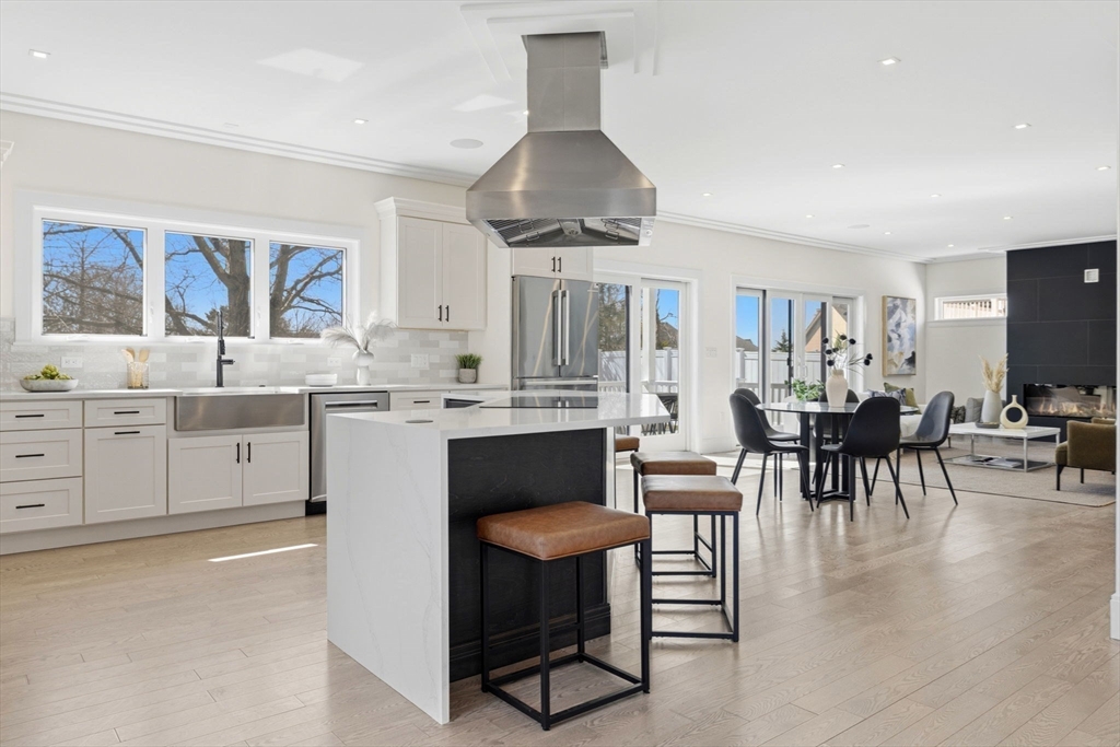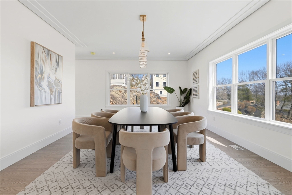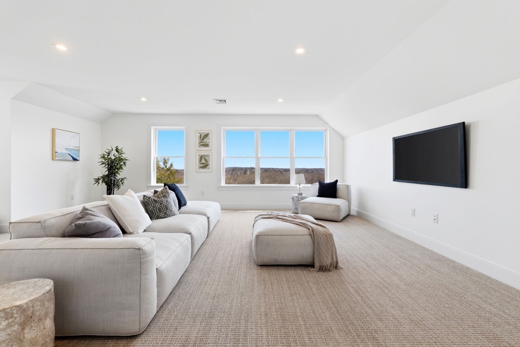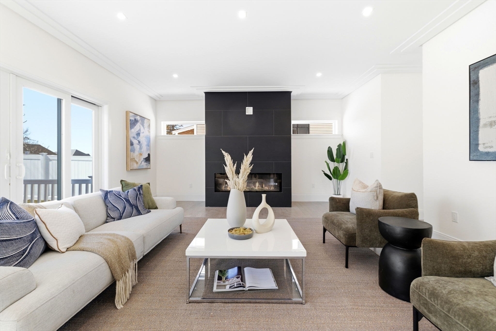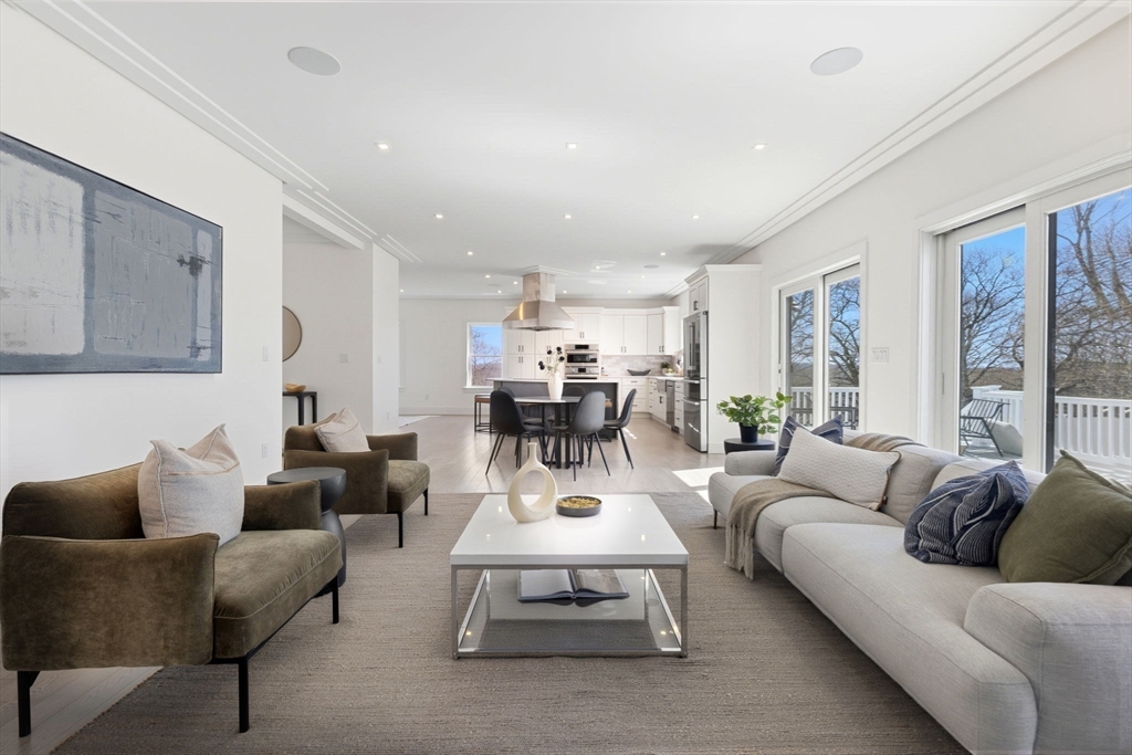 New construction in desirable town of Melrose! This home features 9-ft ceilings & an open floor plan designed for today’s buyers. The chef’s kitchen offers white cabinetry, quartz countertops, an horseshoe island, stainless steel appliances w/industrial hood, flowing into a bright family room w/grey floor to ceiling ct fireplace access to a covered composite deck—perfect for entertaining w/Boston skyline views. The dining room w/custom moldings & wet bar connects seamlessly to the kitchen, while a first-floor living room is ideal as a playroom or office. Upstairs includes 4 bedrooms, 3Full Baths & Laundry room. Luxurious primary suite w/double quartz vanities, tiled shower, & two walk-in closets. A 5th bedroom, full bath, office, & bonus space on the upper level ideal nanny or guest suite. Lower level features exercise room, mudroom, & 3-car garage. Minutes to downtown Melrose; Starbucks, Whole Foods, Fine Dining, Shopping, Golf, Public Transportation the Commuter Rail & All Major Rtes