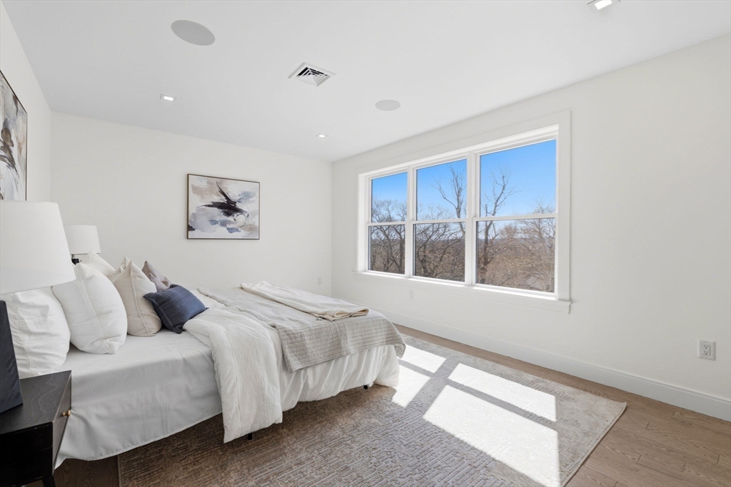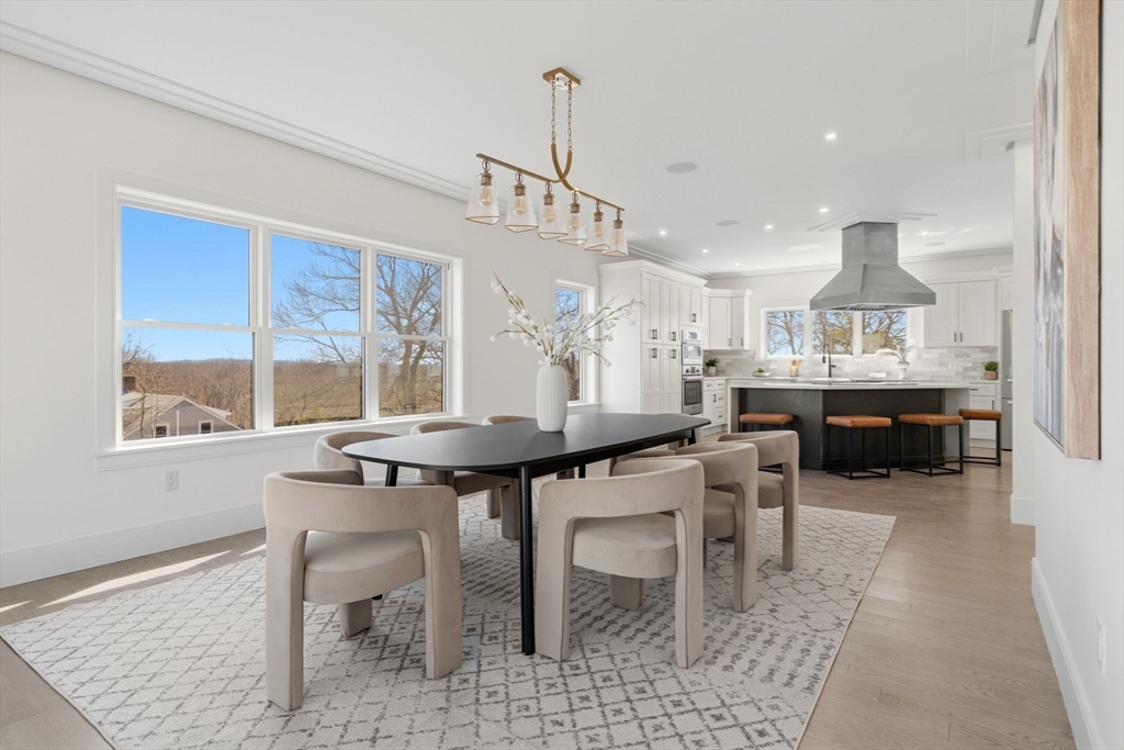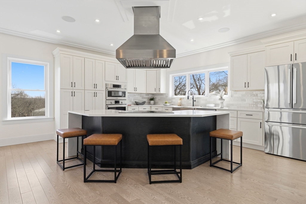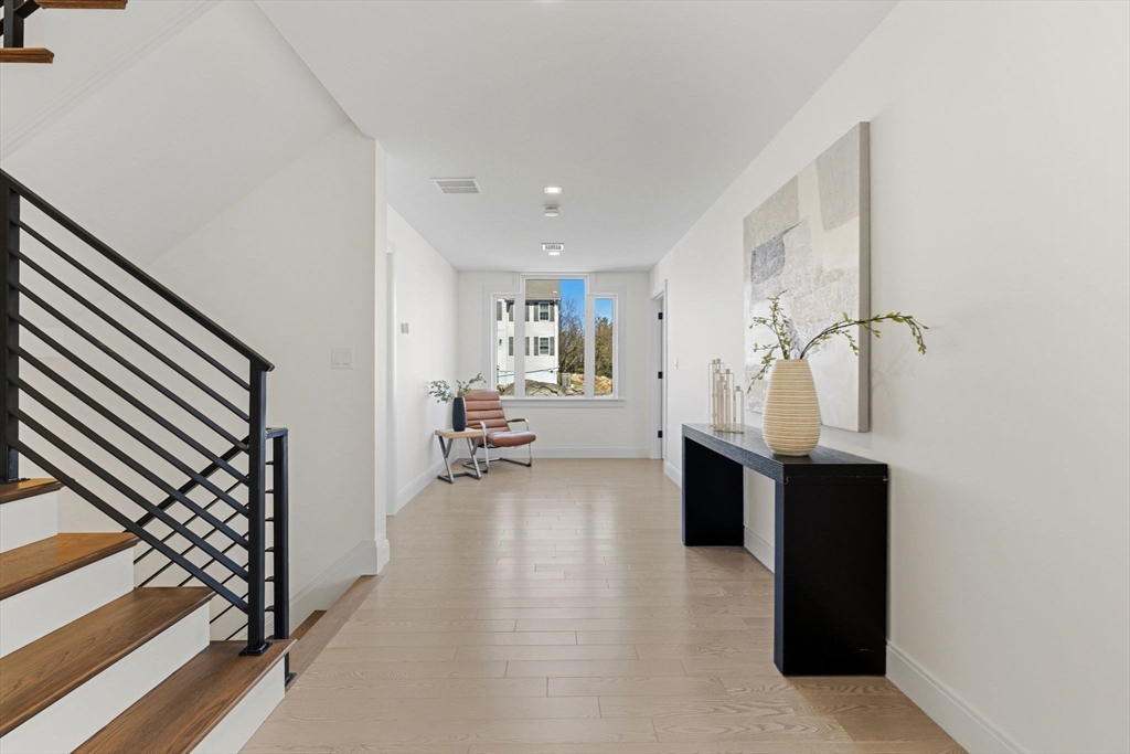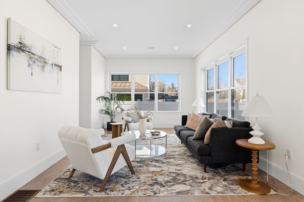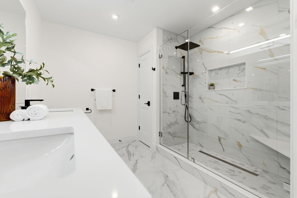 New construction in desirable town of Melrose! This home features 9-ft ceilings & an open floor plan designed for today’s buyers. The chef’s kitchen offers white cabinetry, quartz countertops, an horseshoe island, stainless steel appliances w/industrial hood, flowing into a bright family room w/grey floor to ceiling ct fireplace access to a covered composite deck—perfect for entertaining w/Boston skyline views. The dining room w/custom moldings & wet bar connects seamlessly to the kitchen, while a first-floor living room is ideal as a playroom or office. Upstairs includes 4 bedrooms, 3Full Baths & Laundry room. Luxurious primary suite w/double quartz vanities, tiled shower, & two walk-in closets. A 5th bedroom, full bath, office, & bonus space on the upper level ideal nanny or guest suite. Lower level features exercise room, mudroom, & 3-car garage. Minutes to downtown Melrose; Starbucks, Whole Foods, Fine Dining, Shopping, Golf, Public Transportation the Commuter Rail & All Major Rtes