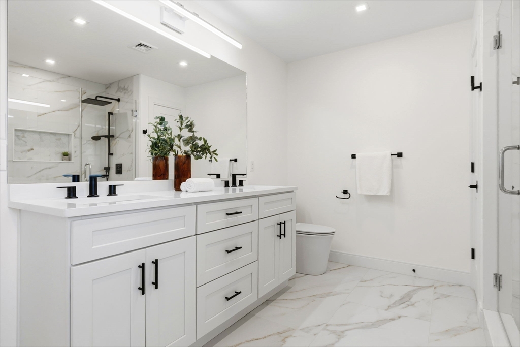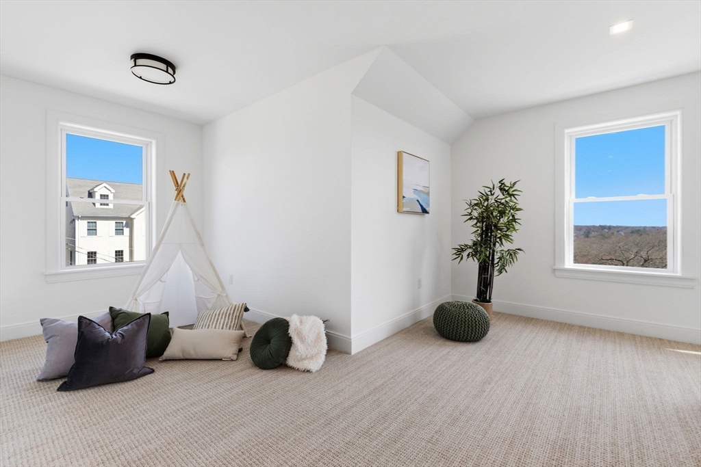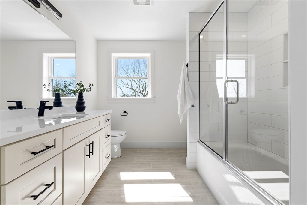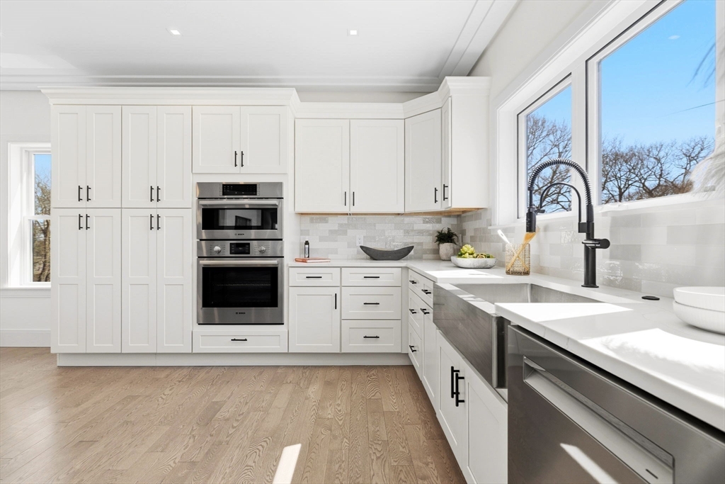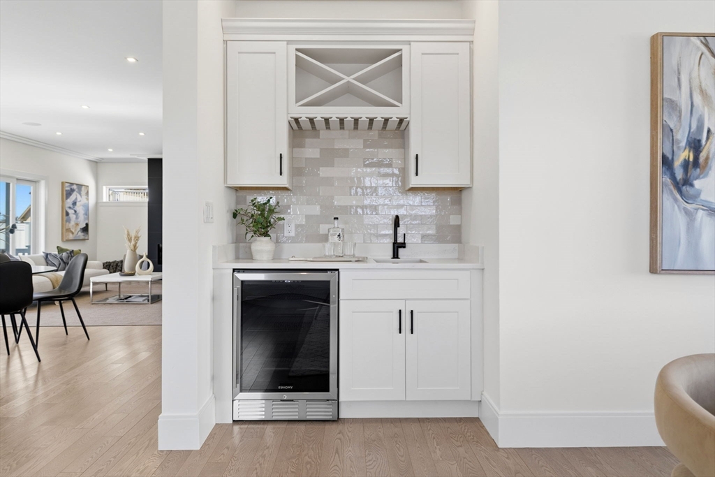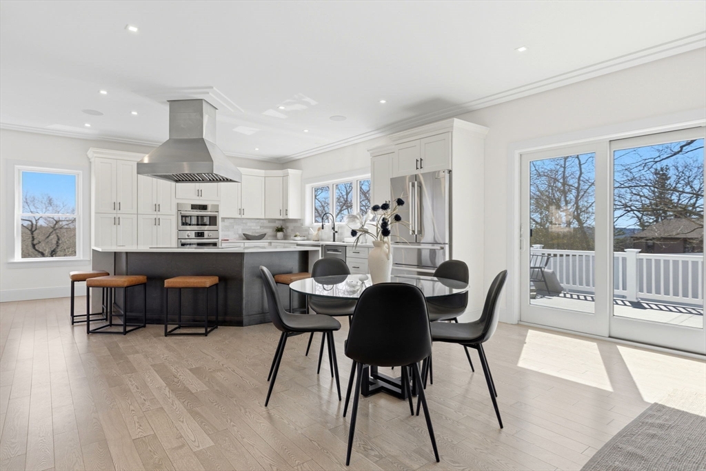 New construction in desirable town of Melrose! This home features 9-ft ceilings & an open floor plan designed for today’s buyers. The chef’s kitchen offers white cabinetry, quartz countertops, an horseshoe island, stainless steel appliances w/industrial hood, flowing into a bright family room w/grey floor to ceiling ct fireplace access to a covered composite deck—perfect for entertaining w/Boston skyline views. The dining room w/custom moldings & wet bar connects seamlessly to the kitchen, while a first-floor living room is ideal as a playroom or office. Upstairs includes 4 bedrooms, 3Full Baths & Laundry room. Luxurious primary suite w/double quartz vanities, tiled shower, & two walk-in closets. A 5th bedroom, full bath, office, & bonus space on the upper level ideal nanny or guest suite. Lower level features exercise room, mudroom, & 3-car garage. Minutes to downtown Melrose; Starbucks, Whole Foods, Fine Dining, Shopping, Golf, Public Transportation the Commuter Rail & All Major Rtes