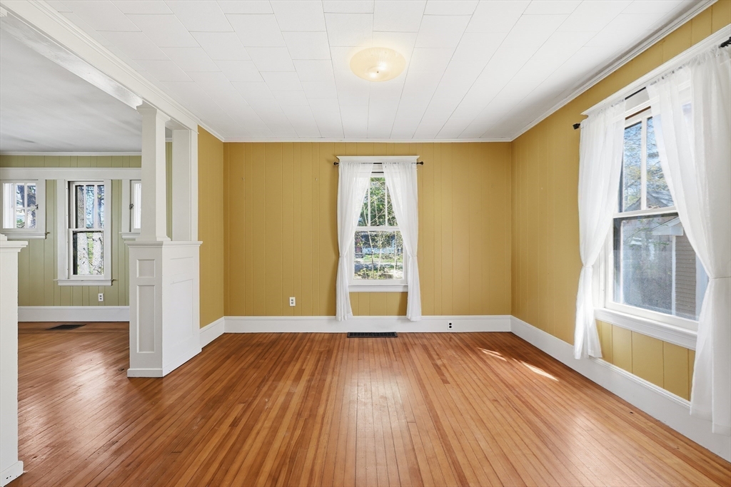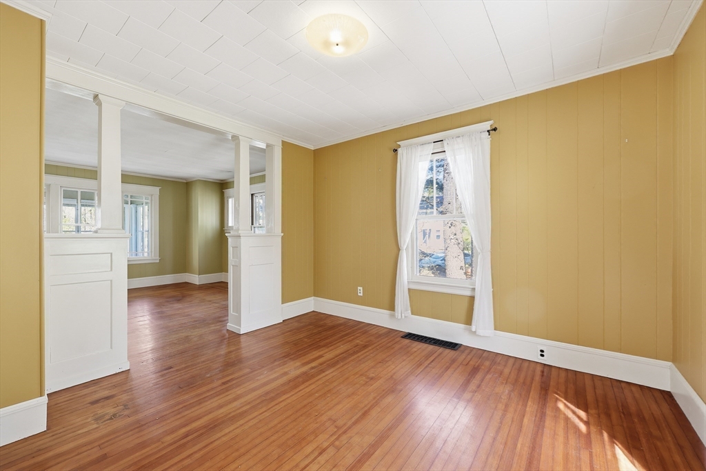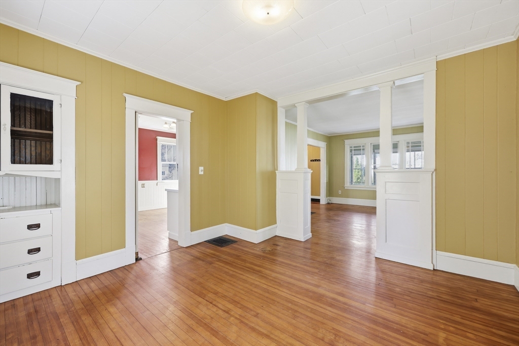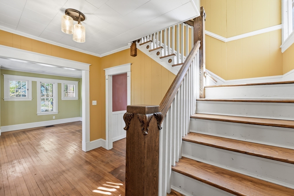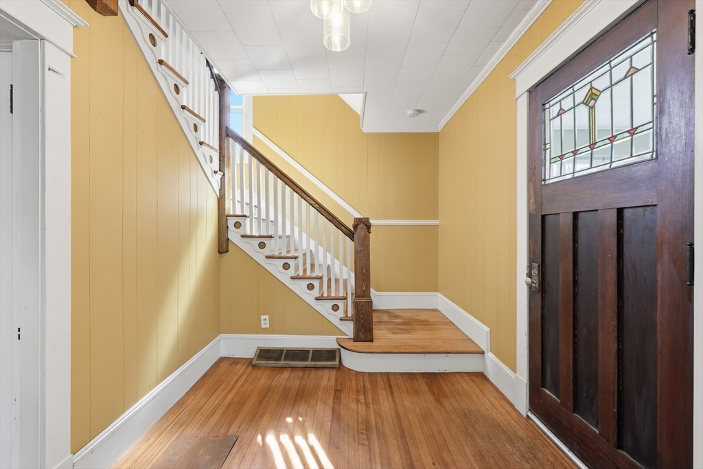 As sweet as can be! This American Foursquare exudes the charm of its era. Inviting you into the home is an alluring covered porch providing endless ways of enjoyment. A beautiful stained glass adorned front door greets you into a welcoming entryway featuring a classic turned staircase with artistic accents. Original hardware, 5 panel doors, and crown moulding decorate the home throughout. Gorgeous Fir hardwood floors lead you into a light-filled living room, sharing elegant built-ins with the cozy dining room. The spacious kitchen holds nice potential to shine with some updating. The second floor hosts three bedrooms, a comfortable bathroom, and an office/studio. The attic could be an excellent bonus space with the right finishing touches. A side porch allows for quick trips to the backyard, offering a delightful area for outdoor retreat, play, or entertaining. Located just outside the heart of Florence, you will find attractions and amenities galore. Come see for yourself!