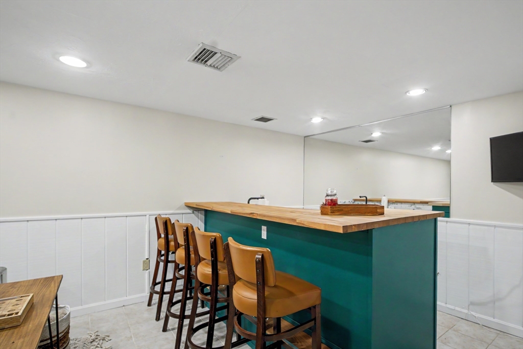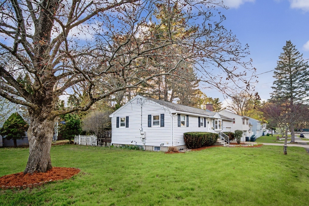 Multi-Generational living! Spacious and versatile one floor living ranch set on a large corner lot in a quiet, established Framingham neighborhood with exceptional commuter convenience. The one way street is quiet, yet near the Mass Pike, T stations, Route 9 shopping, dining, and entertainment. The main level offers a well-maintained, classic layout with 3 bedrooms, full bath, living room with a fireplace, dining room, kitchen, and a flexible office space, featuring hardwood floors and great natural light. The living room has a fireplace and bay window, and the kitchen is well equipped and spacious. The finished lower level is a standout, completely remodeled and offering a private entrance, 2 additional bedrooms, full bath, living area, and wet bar with strong in-law or extended living potential. There is a gas fireplace on this level. Central air, gas heat, abundant storage, a whole house generator plus two large storage sheds and a large yard complete this unique offering.