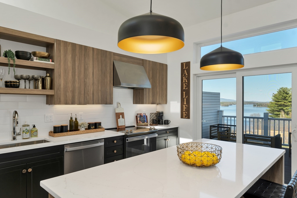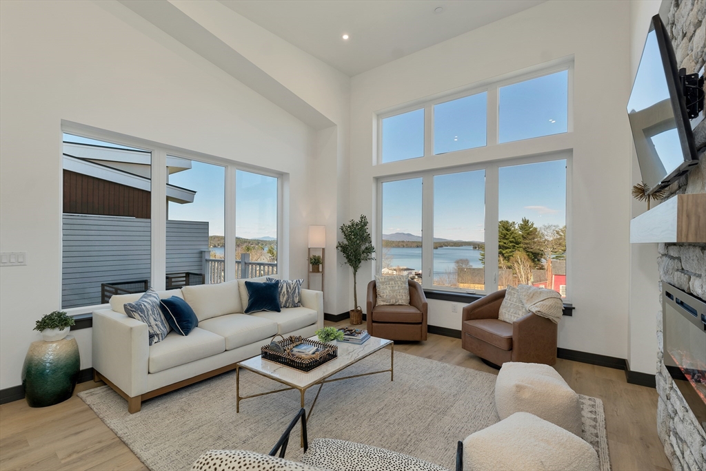 Welcome to Lookout Lake Winnipesaukee, an exclusive community of 48 modern luxury townhomes in Laconia offering panoramic lake, island, and mountain views. Enjoy maintenance-free living with premium amenities including a clubhouse, outdoor pool, fitness center, fire pit, grilling areas, and social spaces. Ideally located near Weirs Beach, Meredith, and year-round Lakes Region recreation. This thoughtfully designed “upside-down” townhome maximizes natural light and views. The first level features a spacious owner’s suite with ensuite bath and walk-in closet, a second bedroom, full bath, laundry, and ample storage. The upper level showcases open-concept living with a modern kitchen, center island, dining area, and expansive living room leading to a private deck—ideal for entertaining or enjoying lake. A convenient powder room and direct access to the attached garage and entry complete the layout. Images of like-kind and some upgrades may be depicted. #LakeWinnipesaukee #Lakelife