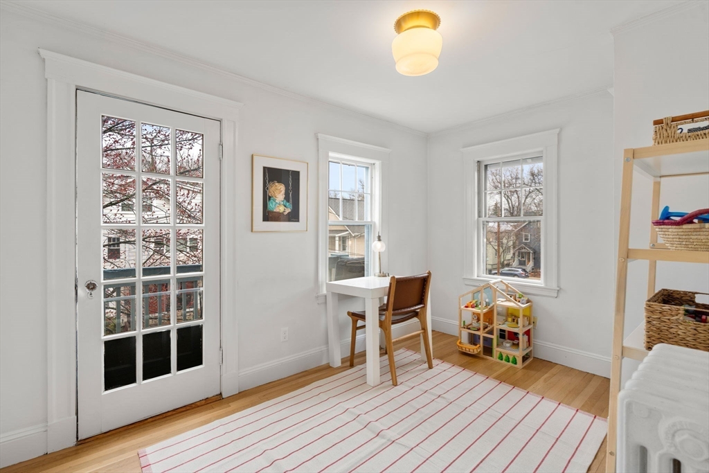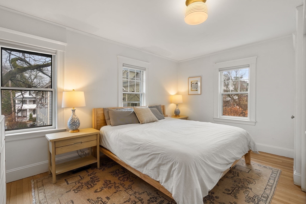 Premier Cambridge location at Huron Village and Fresh Pond, where timeless detail meets everyday ease. This upper-level residence has a full walk-up attic with great potential for expansion. The home is rich in character, with a graceful flow from a tucked-away home office to a fireplaced living room and a beautifully proportioned dining room featuring a built-in china cabinet, intricate paneling, and classic plate rail. A charming butler’s pantry leads to a thoughtfully designed kitchen with gas cooking, island, and seamless connection for entertaining. Two well-sized bedrooms offer generous closets, complemented by warm oak floors throughout and in-unit laundry. Enjoy front and back porches and the quiet of a cul-de-sac setting at Hawthorne Park, just moments to Huron Village shops, Fresh Pond, and the 72 bus to Harvard Square—an ideal balance of charm, light, and location. An inviting and timeless space, where thoughtful detail and natural light define the experience.