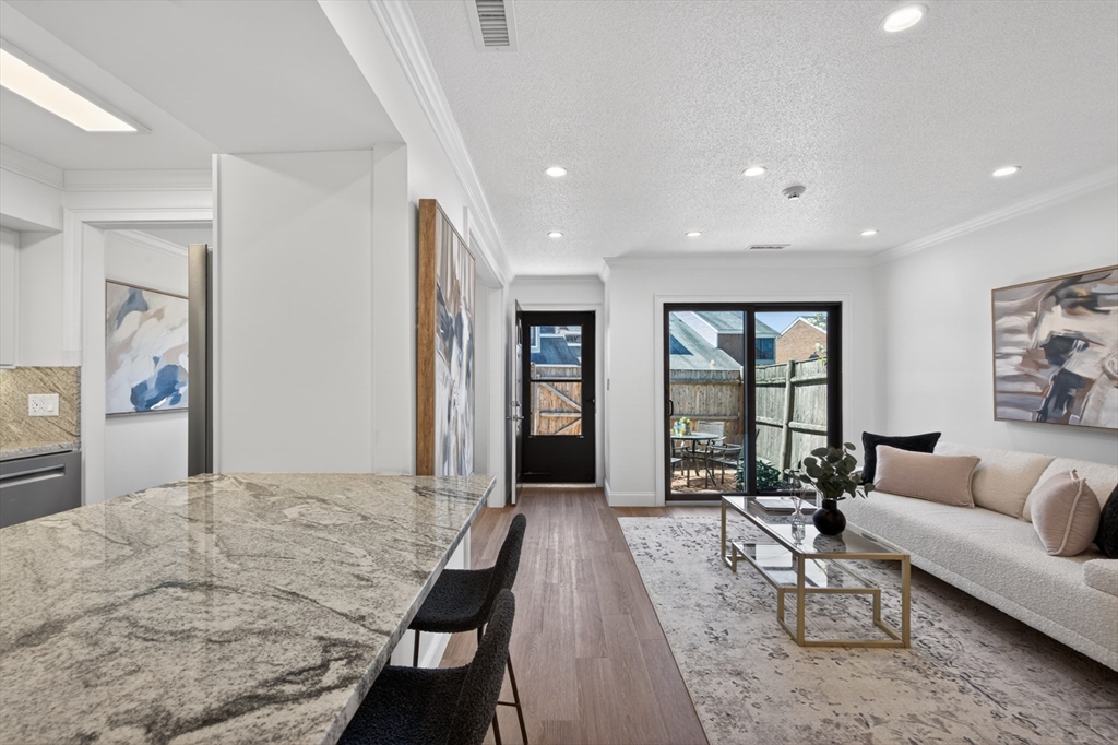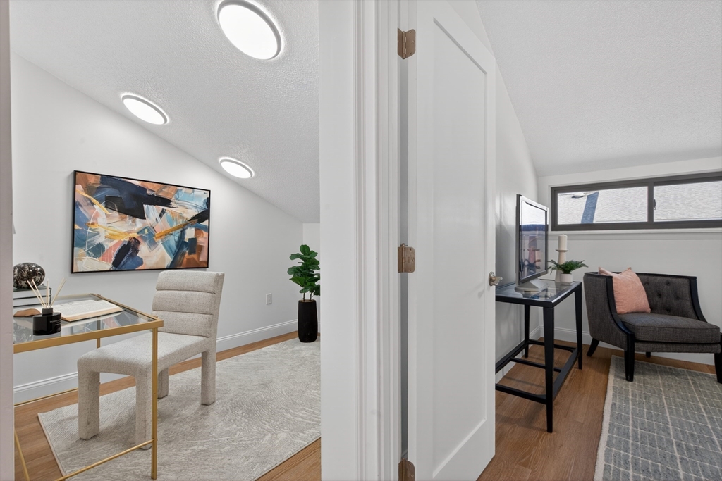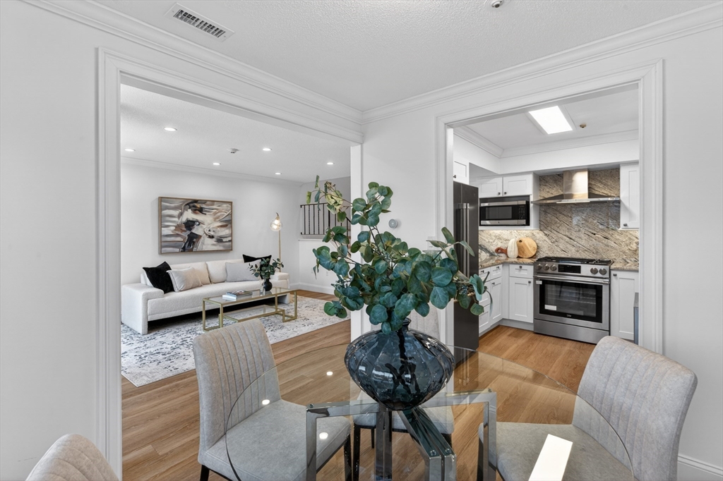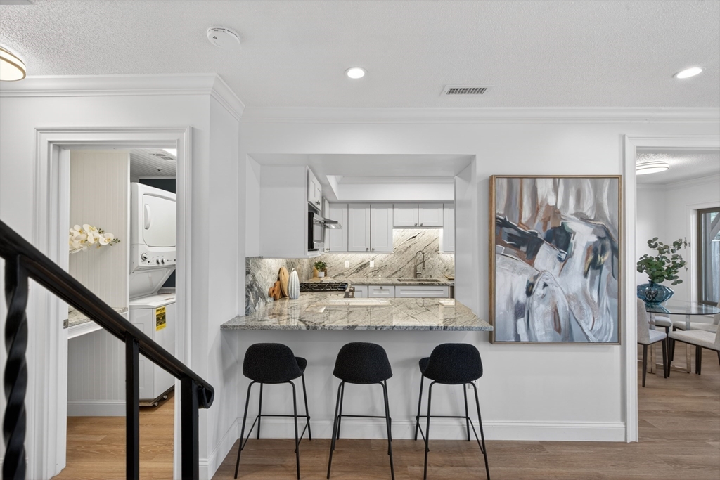 Welcome home to this beautifully updated contemporary three-bedroom corner unit in the desirable Greenbrook Condo Association. Brand new kitchen features granite counters & backsplash, white shaker cabinetry, a pass-through with barstool seating overlooking the living area, and all new stainless appliances including refrigerator, stove, microwave, dishwasher, washer & dryer. Updates include renovated baths, commercial-grade wide vinyl plank flooring, newer top-quality windows & patio sliders, 200amp electric panel, EV charging station, recessed & LED lighting. Unit has gas-forced hot air heat & central AC. The second floor holds three bedrooms, full bath & office for remote work. The primary suite offers a slider to a courtyard-facing balcony & generous walk-in closet. Rare attached two-car garage, a standout in the complex! Near Cobbs Corner/Route 95/24 shopping & commute. HOA covers GAS HEAT, pool, tennis, landscaping, snow, trash & exterior maintenance. Move-in ready, just unpack.