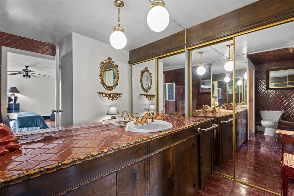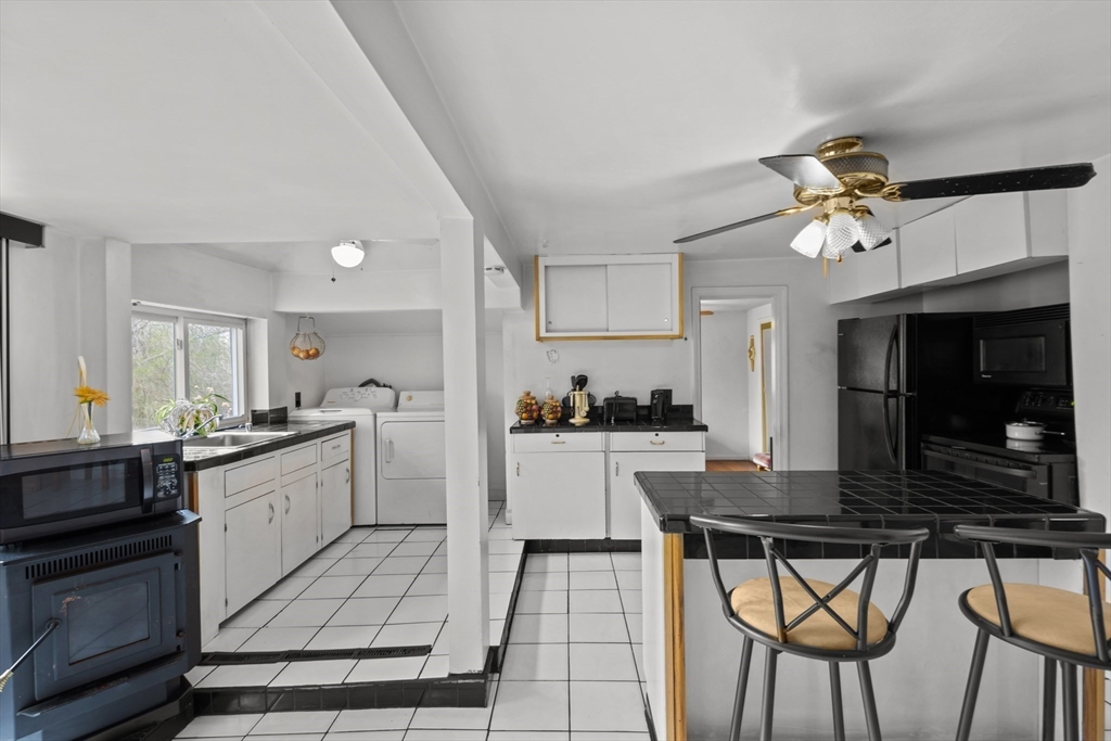 This sprawling split level home situated on a quiet dead end street offers an incredible opportunity to create a unique and comfortable living space. The interior features large windows and glass doors allowing sunlight to permeate every space, from the huge formal living room to the private master bedroom suite. The raised dining room overlooks the kitchen and backyard. Two more bedrooms, a full bath, and a quiet den with views to the front yard complete the main level. The basement offers a large rec room with built in bar along with office space and a walkout to a large patio. An updated heating system comes with this property along with 4 fireplaces (wood and pellet stoves included), two built in air conditioners and a central vacuum system. Outside, you'll find several decks and porches that wrap around the exterior, creating many options to enjoy the quiet area. This property is being sold as-is, all inspections (Title V, well) and verifications are the buyer's responsibility.