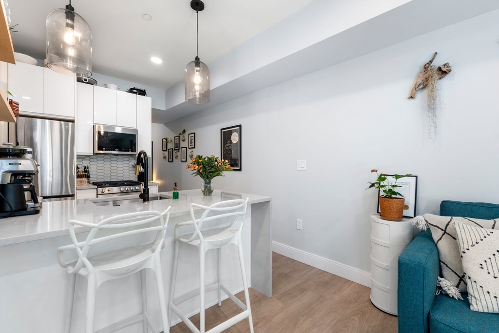 Urban luxury in the heart of Eagle Hill East Boston. This sun-drenched 1-bedroom features oversized windows, recessed lighting, and a smart, modern layout. In-unit laundry adds everyday ease. Step out to a vibrant neighborhood with grocery stores, restaurants, and shops at your door — plus quick access to downtown Boston.The standout: a shared rooftop deck with sweeping city skyline views, ample seating, and grilling space — ideal for entertaining or unwinding at sunset.Move-in ready and optionally available fully furnished. Tenant requirements: strong credit and verifiable income. Don't miss this turnkey opportunity to live in one of East Boston's most connected and dynamic neighborhoods. Schedule your showing today.