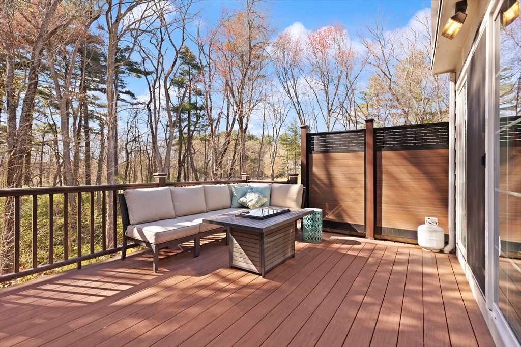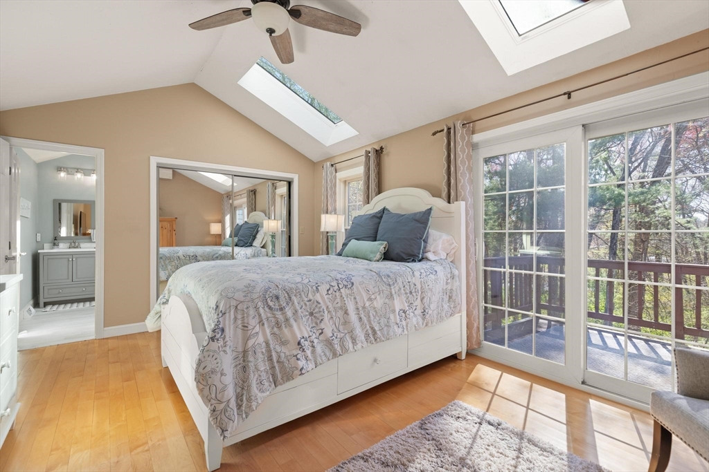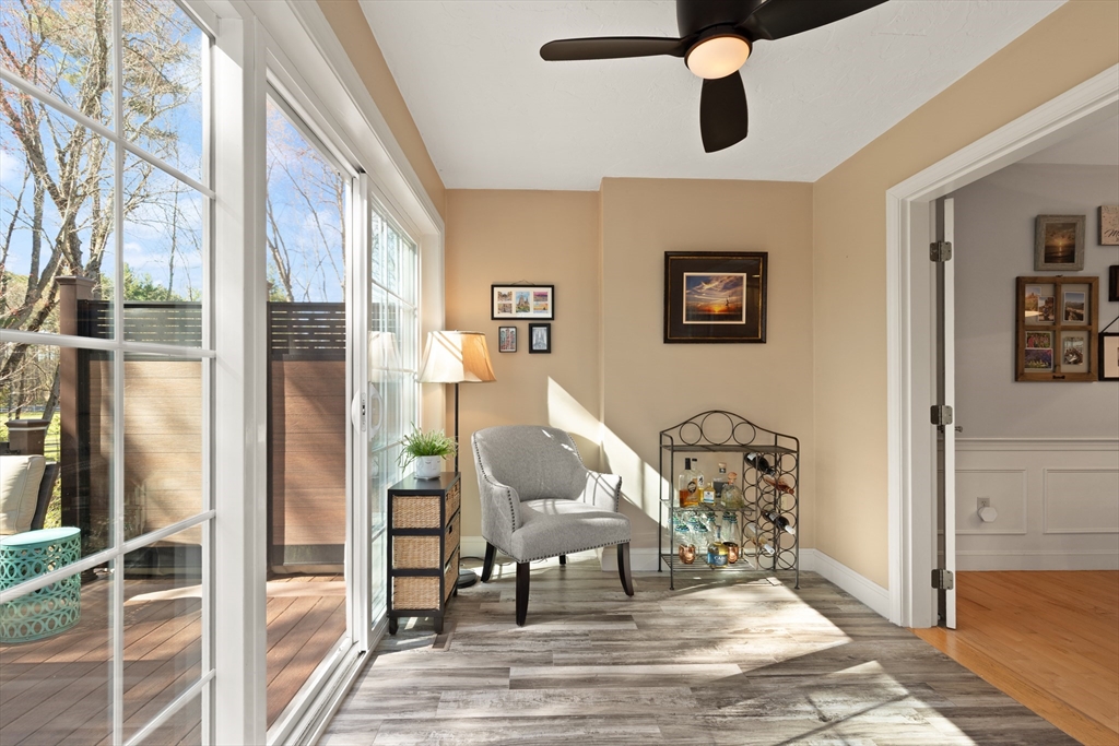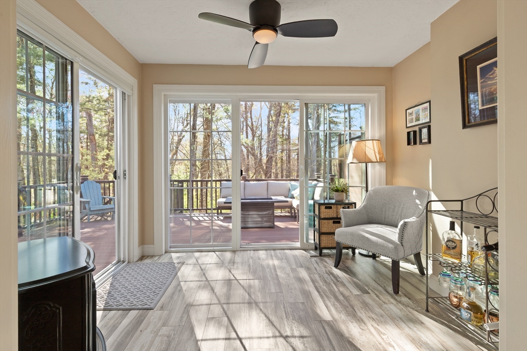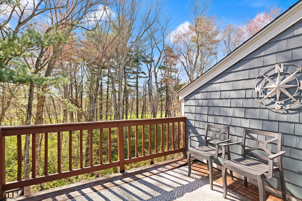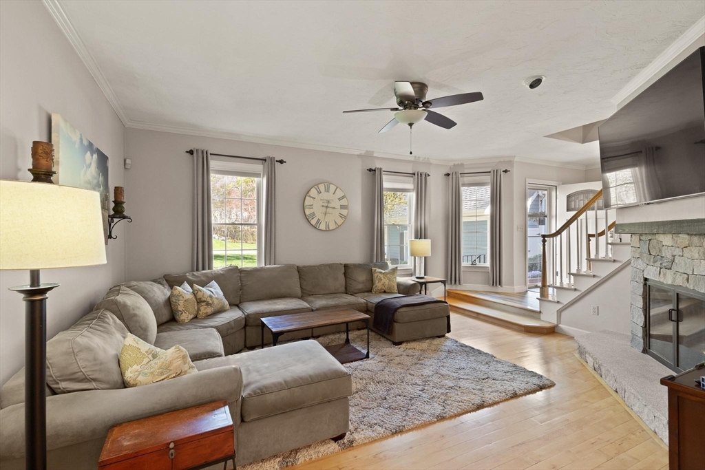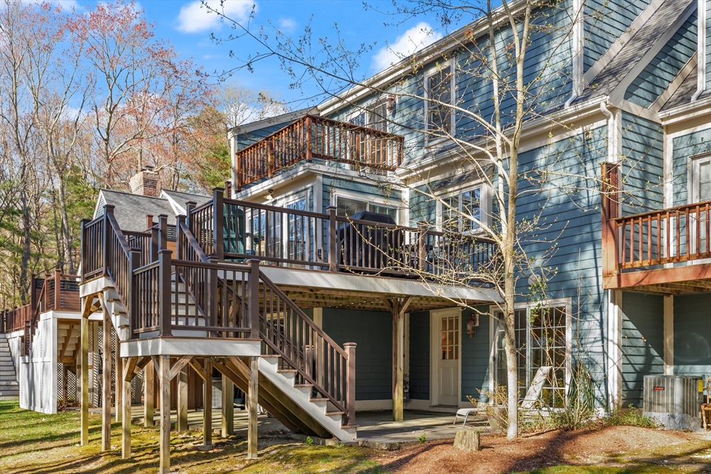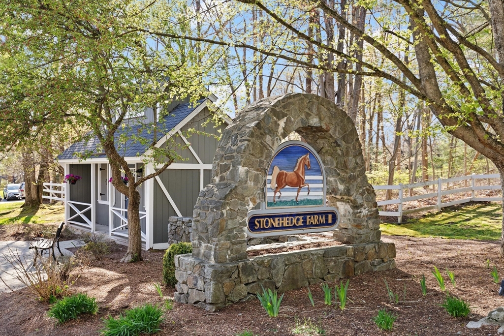 Rarely available 'Stonehedge Farms II' condo that feels like a single family. Sunken living room with fireplace, crown molding, and maple flooring that goes into dining rm - open to the kitchen - as well as up the stairs. Tile flooring, granite countertops, stainless steel appliances, and a large island grace the kitchen. Through French doors from dining room you access a lovely Sun Room with two sets of double sliders to the deck overlooking the paddocks. Full bathroom with very large tiled shower. Upstairs is the bright main bedroom featuring cathedral ceiling, two skylights, mini-split and sliders to a private deck. Ensuite full bathroom w/ skylight, a beautifully tiled shower/tub combination, and two vanities. Second bedrm offers the same maple hardwood flooring as the main BR. 2nd full bath with laundry completes this level. Finished walk-out basement offers 3rd BR w/ door to back as well as double sliders, along w/ bonus room, desk area, and plenty of storage.