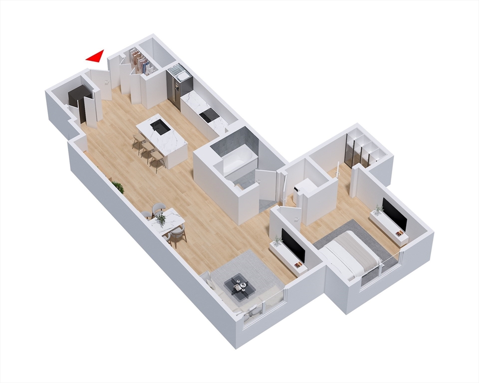 Welcome to The Roslin! This brand-new boutique collection of 18 residences is just outside vibrant Roslindale Village, where modern luxury meets effortless city living. This 1-bedroom home is tailored for today’s buyer, with a sleek, airy layout, luxury vinyl plank flooring, oversized windows, and a polished contemporary vibe throughout. The kitchen is beautifully finished with quartzite countertops, custom modern cabinetry, and a GE stainless steel appliance package with a 5-burner gas range. The spa-like bath offers designer tile and a floating vanity, while the LG WashTower adds everyday convenience. Enjoy an elevator building, a common roof deck with sweeping views, private storage, bike storage, and garage parking available for $35,000. Moments from Forest Hills, the Arnold Arboretum’s scenic paths, and Roslindale Village favorites like the Farmers Market, Delfino, and Sophia’s Grotto, this is stylish urban living with nature and neighborhood energy at your door.