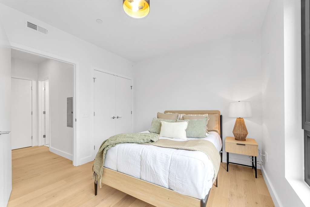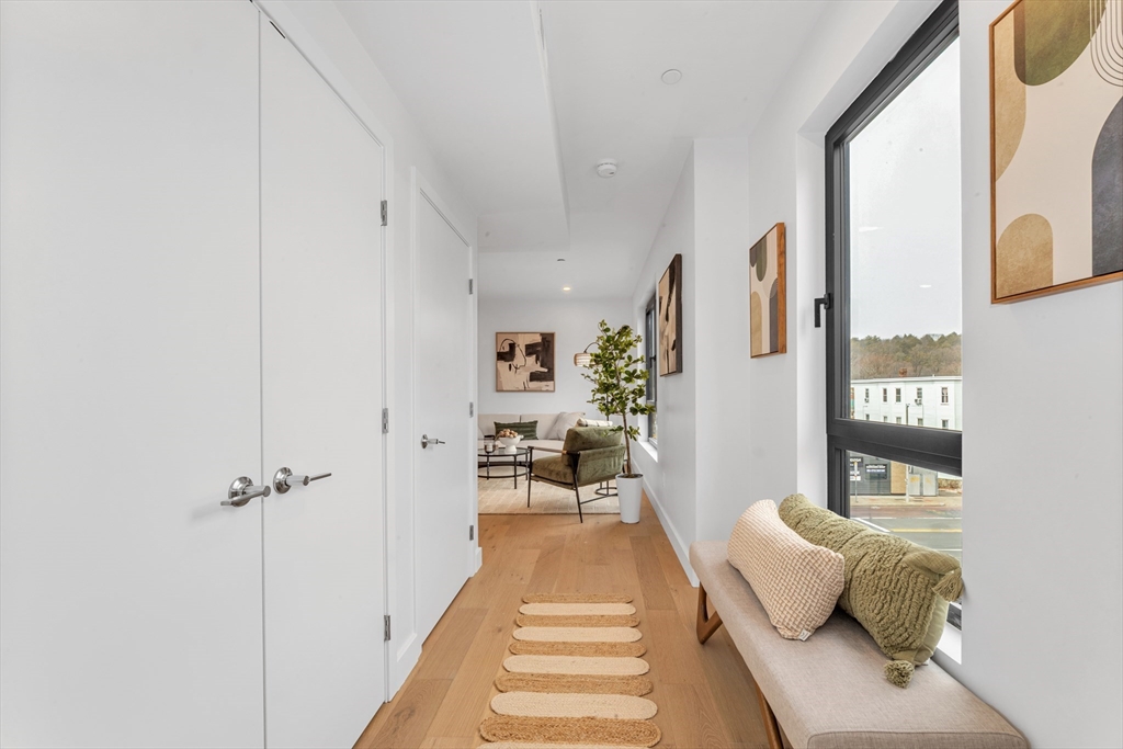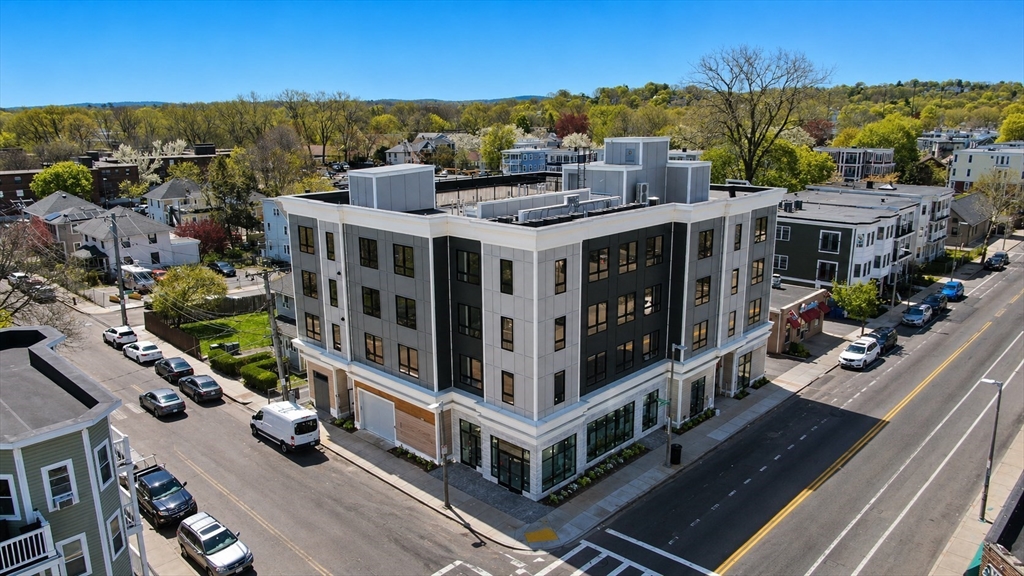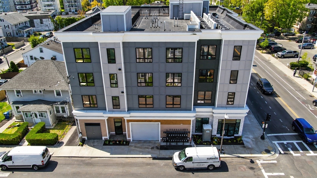 Welcome to The Roslin, a brand-new 18-residence boutique elevator building just outside vibrant Roslindale Village, offering modern luxury with exceptional access to both the city and nature. This beautifully designed 2-bedroom, 2-bath home features a bright, open layout with oversized windows, luxury vinyl plank flooring, and a clean, contemporary feel throughout. The sleek kitchen is finished with quartzite solid countertops, custom modern cabinetry, and a GE stainless steel appliance package with a 5-burner gas range. Both baths showcase spa-inspired tile, floating vanities, and designer-selected fixtures and finishes, while in-unit laundry with the LG WashTower adds everyday ease. Residents enjoy a common roof deck with great views, private storage, bike storage, and garage parking available for $35,000. Close to Forest Hills, the Arnold Arboretum, Roslindale Village, the Farmers Market, Delfino, and Sophia’s Grotto.
