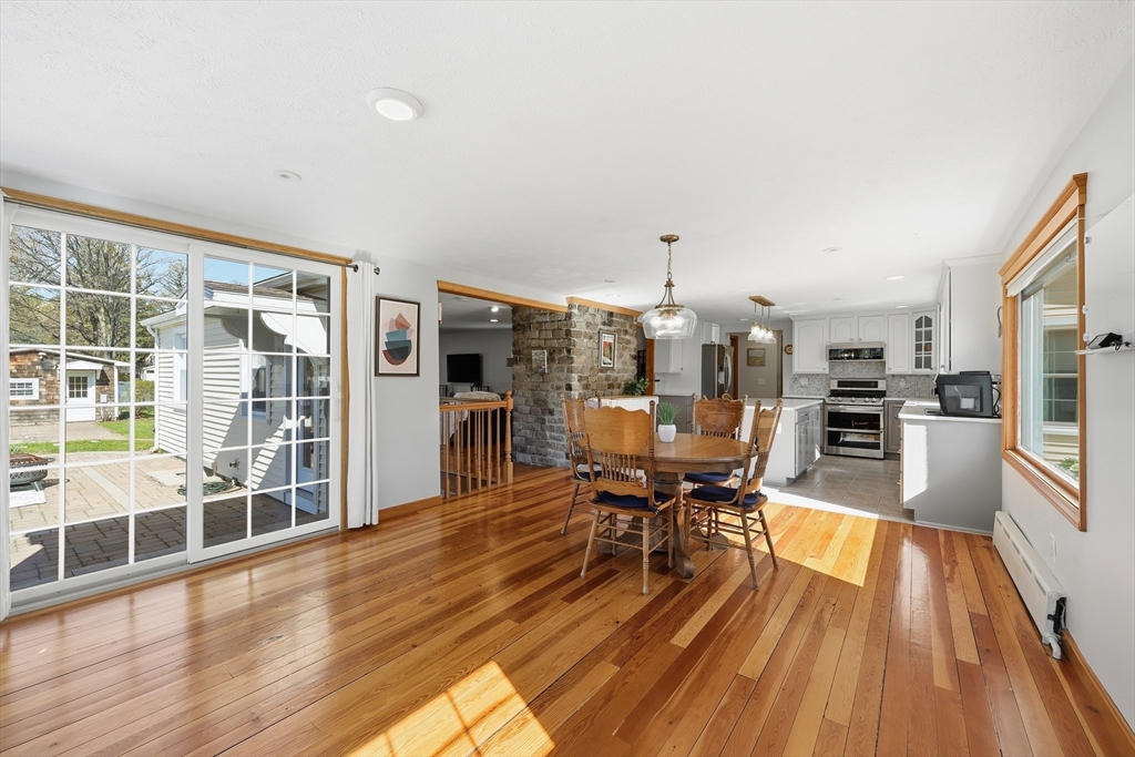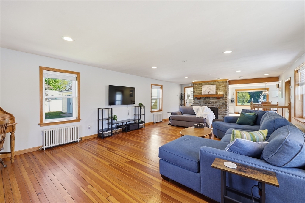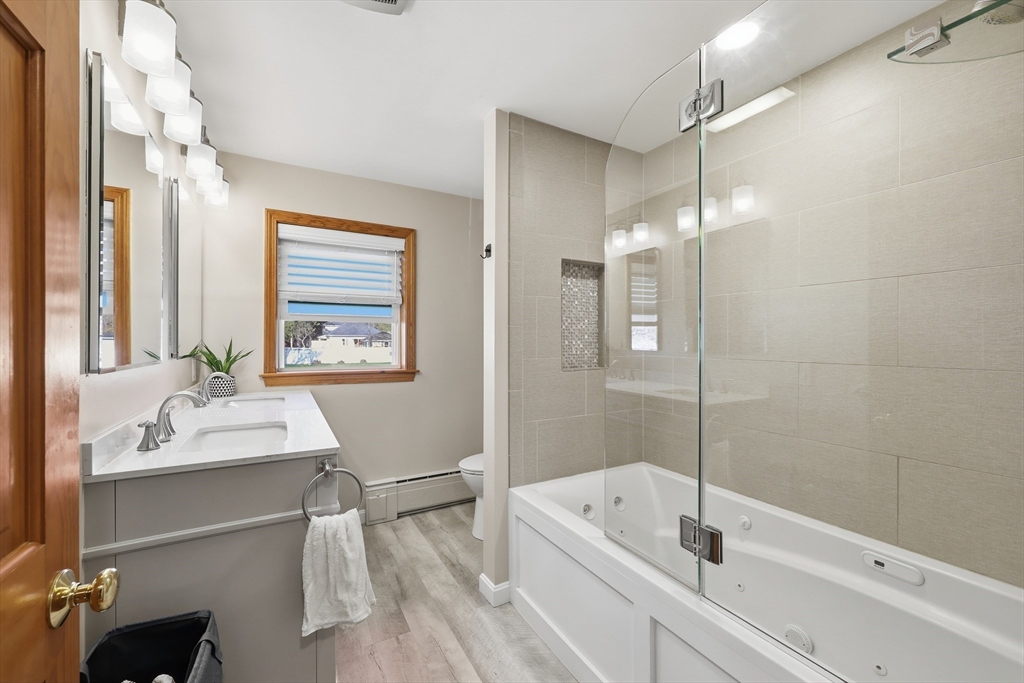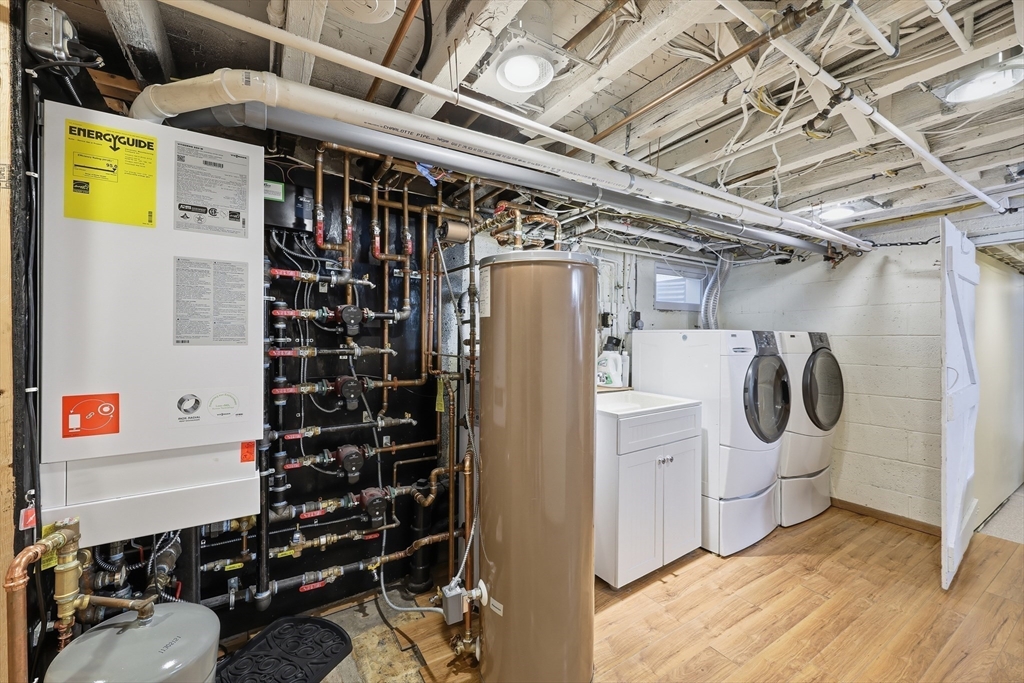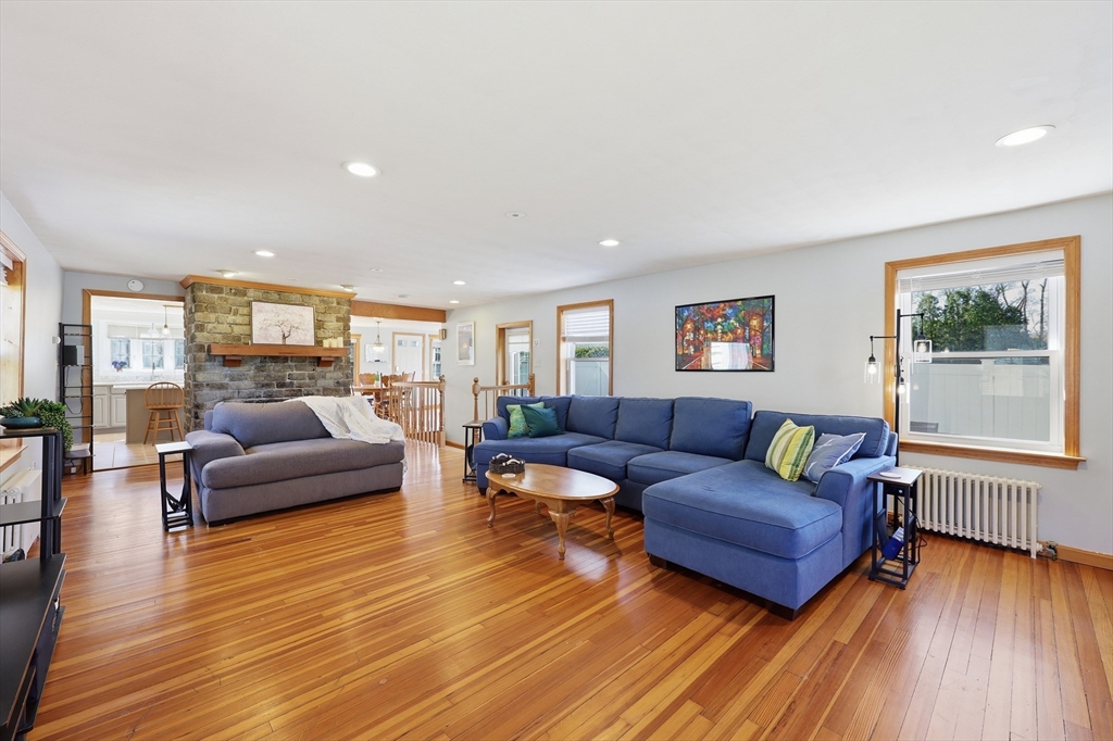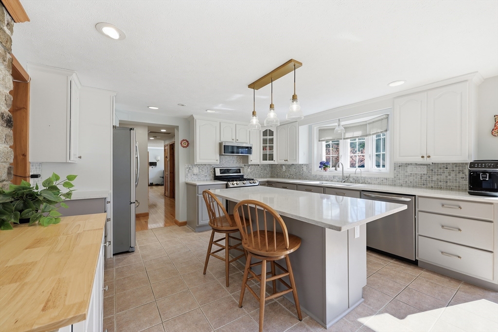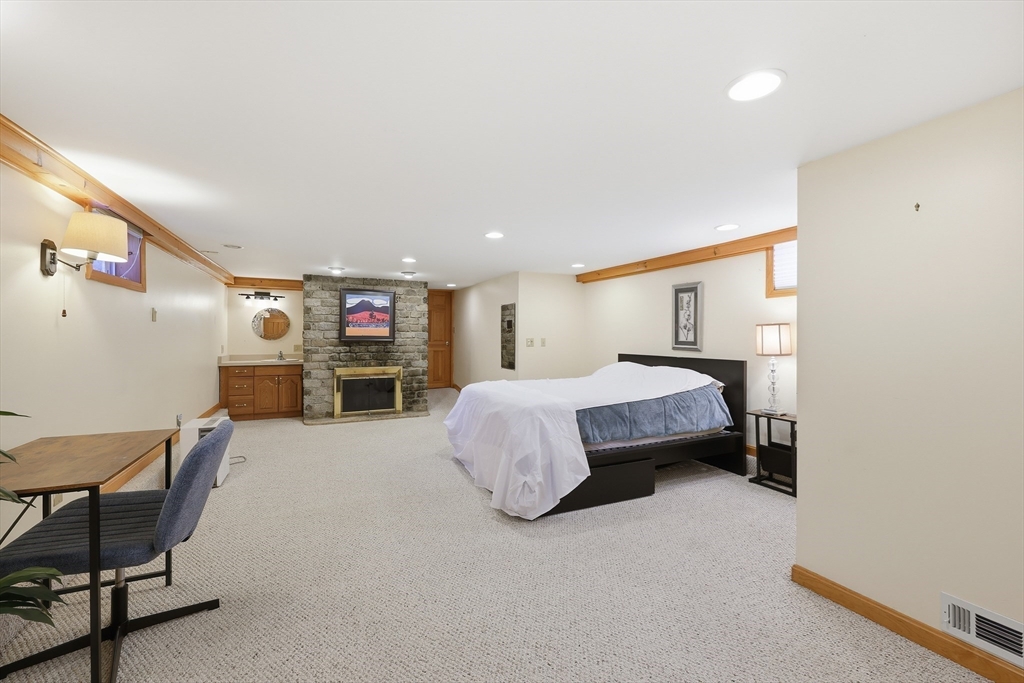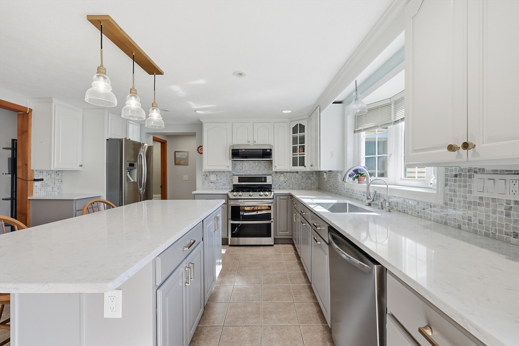This polished & updated home will surprise and delight with an Olympic-sized fenced yard, very spacious main floor, and excellent lower living level. 2 bedrooms upstairs and 3 bdrms on lower level--one bdrm has a huge pretty stone gas fireplace. Upper primary bedroom with walk-ins & full bath. Two living rooms, one w/ gas fireplace another w/ picture window. On-trend kitchen w/ quartz countertops/island/breakfast bar, ceramic flr, tile backsplash, stainless appliances & spacious sun-dappled dining area w sliders to pavered patio. 2 basement bedrooms have full-size windows (another lower space is a walk-out also w/ gas fireplace) for sleeping spaces or work-from-home spaces or a gym or game room or crafting area. 2-car attached garage, 3 outbuildings, 2 patios for outdoor relaxing and a flat backyard that's private & dreamy. Viessmann wall-mounted heat & hot water w/ natural gas is top-of-the-line energy efficiency. Stylish, one-of-a-kind and in fantastic condition!