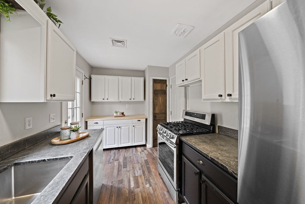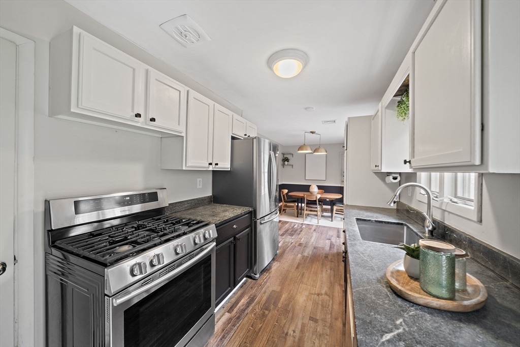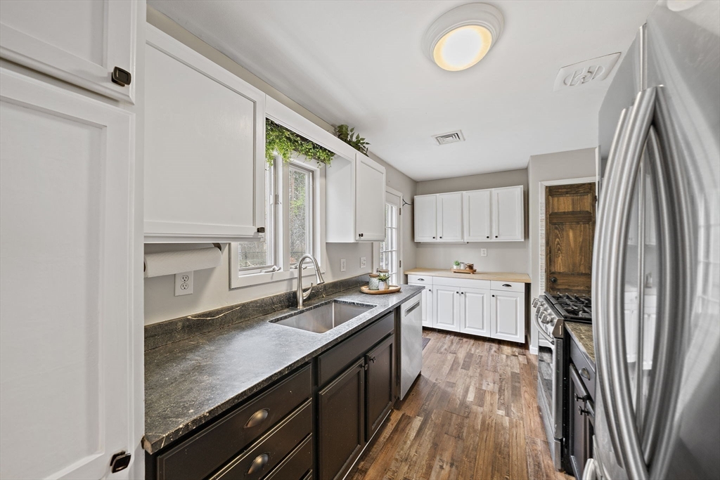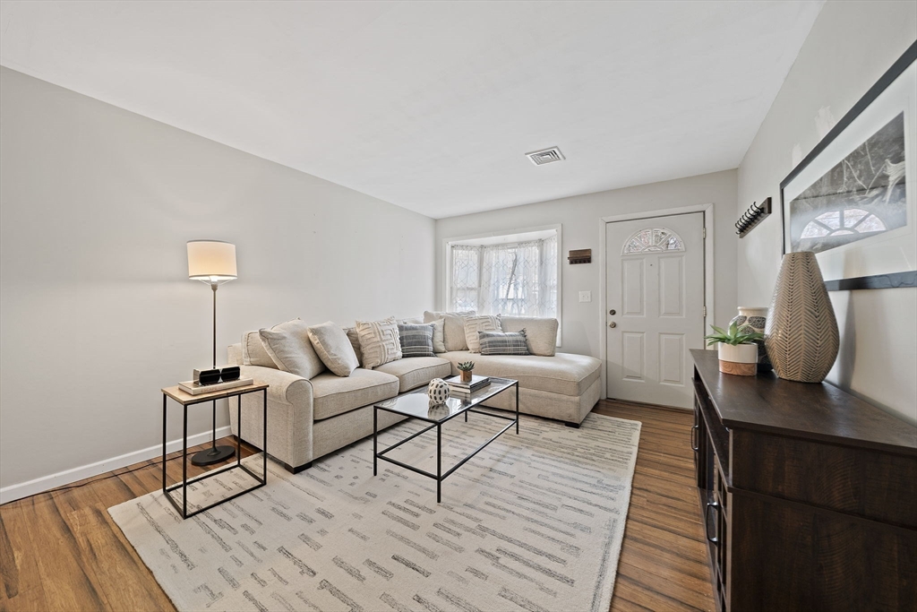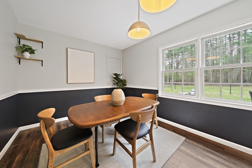 This well-maintained Hanover ranch is located on a corner lot at the end of the neighborhood. The 3/4-acre lot abuts conservation land and walking trails, has a fenced in back yard area with fire pit, extensive separate garden area, shed and plenty of open space. The spacious living room flows into the dining room which overlooks the back yard. Galley style kitchen area, gas stove, with additional cabinets recently added. Off the kitchen is the pantry, stacked laundry and utility area. Large primary bedroom with ample closet space sits off the living room, new drop-down stairs for attic storage. Hallway leads to the bathroom with new sink vanity, toilet and wall cabinet. Two sizeable bedrooms plus a bonus room to utilize for your needs. All interior doors have been replaced with solid wood doors. Vinyl windows, central air, forced hot air gas heat, tankless water heater and new water filtration system. Schedule your private showings and hope to see you at the open houses this weekend!