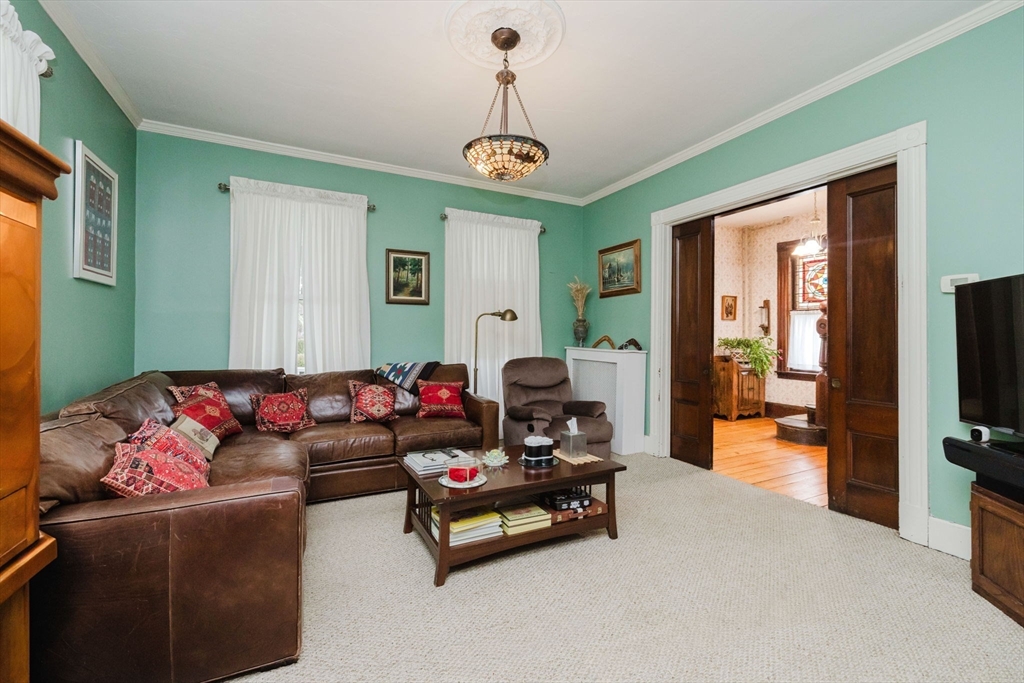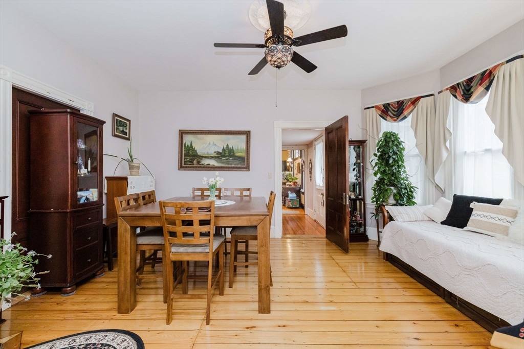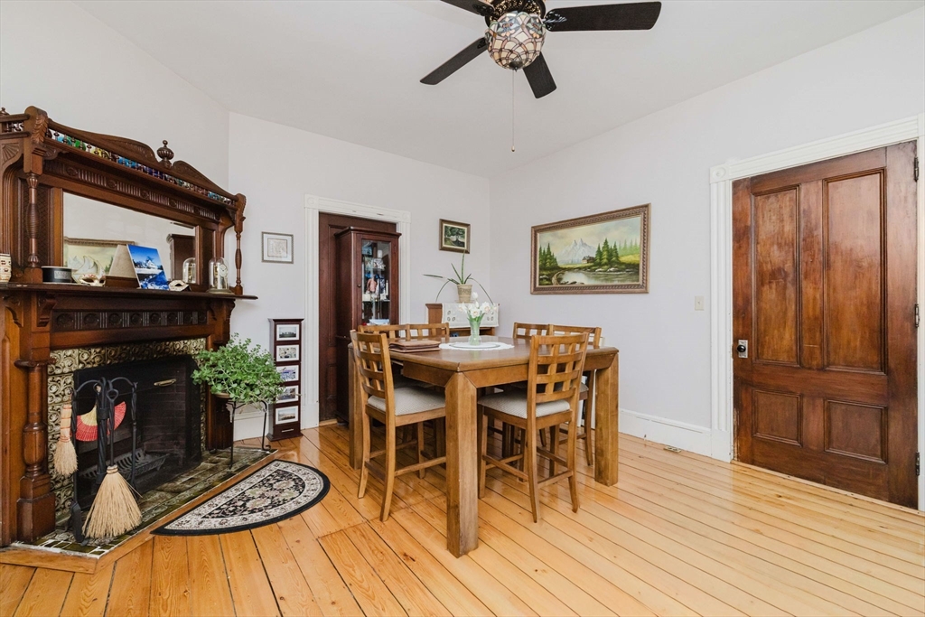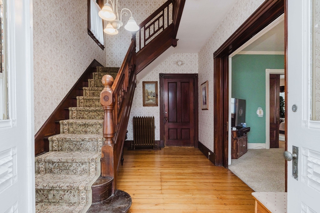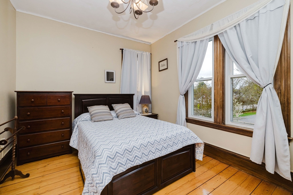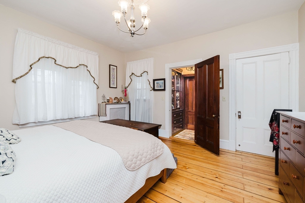 An exceptional home built in 1880. This home shows the craftsmanship of master craftsmen long since gone, 2 sets of solid wood pocket doors, crown molding and beautiful wide pine floors throughout, formal dining and living room, setting room with fireplace and a full bath with walk-in shower and radiant heat. Kitchen features solid wood cabinets, gas range, dish washer, granite counter tops, large windows, center-island, walk in pantry with built in cabinets and pocket door to dining room and a gas fired fireplace. On the second 2nd floor you have three spacious bright bedrooms, pine floors, a large sun lit primary bedroom. Walk up attic has two nice sized bonus rooms and plenty of storage. Full basement has another finished room and more storage space. This is a beautiful home that has to be seen to appreciate. Almost forgot, 2 sets of stairs, owned Solar Panels, Newer Roof, Insulation, Electric,and Thermo Windows