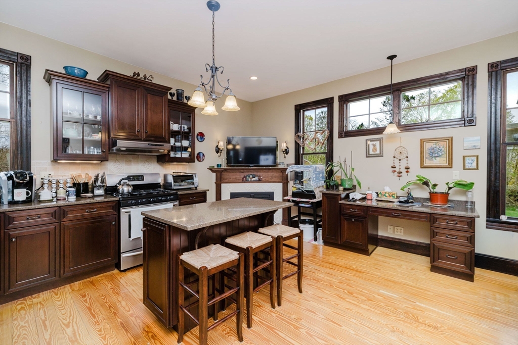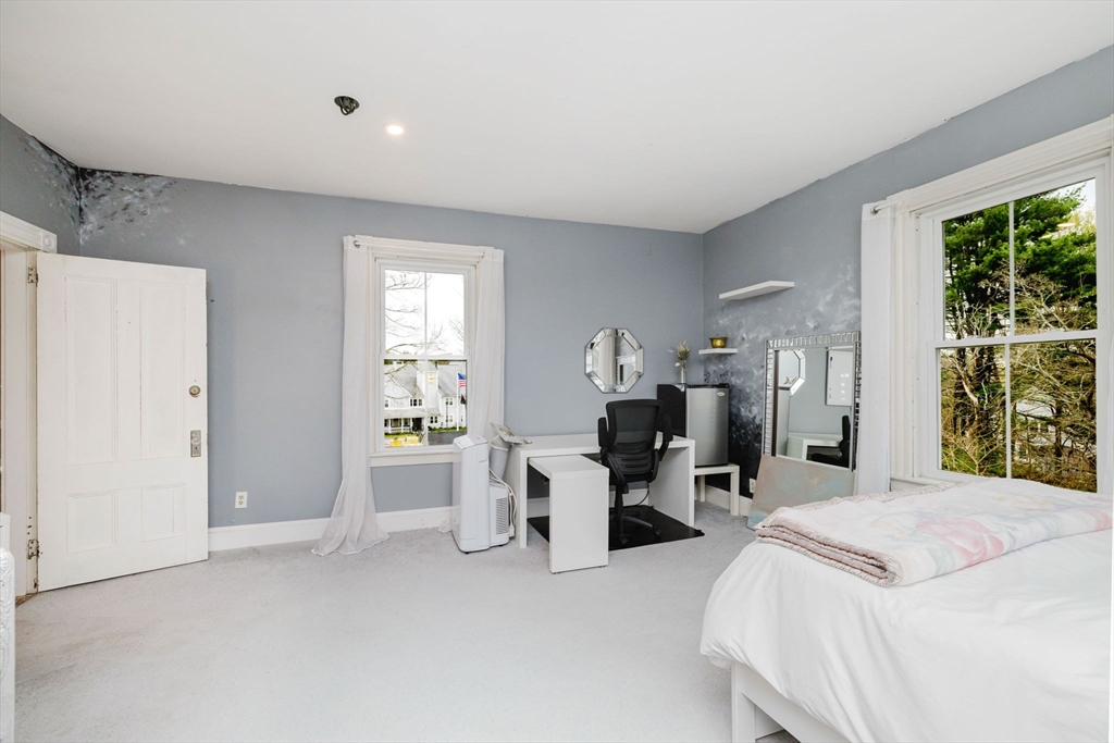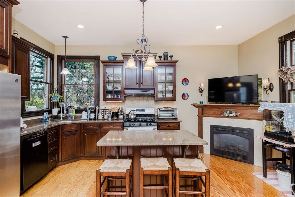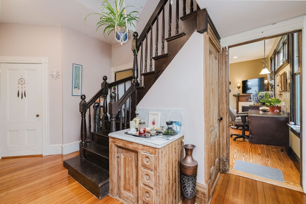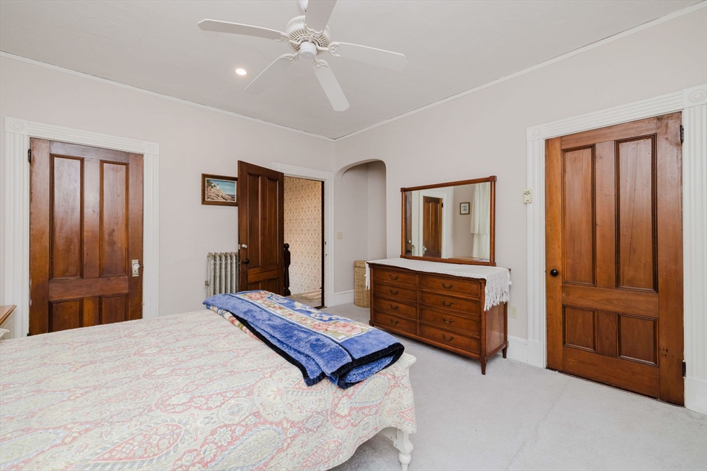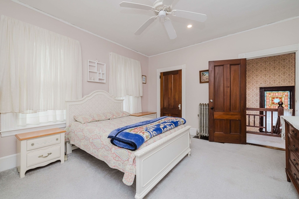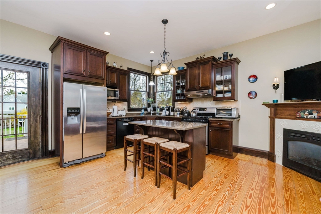 An exceptional home built in 1880. This home shows the craftsmanship of master craftsmen long since gone, 2 sets of solid wood pocket doors, crown molding and beautiful wide pine floors throughout, formal dining and living room, setting room with fireplace and a full bath with walk-in shower and radiant heat. Kitchen features solid wood cabinets, gas range, dish washer, granite counter tops, large windows, center-island, walk in pantry with built in cabinets and pocket door to dining room and a gas fired fireplace. On the second 2nd floor you have three spacious bright bedrooms, pine floors, a large sun lit primary bedroom. Walk up attic has two nice sized bonus rooms and plenty of storage. Full basement has another finished room and more storage space. This is a beautiful home that has to be seen to appreciate. Almost forgot, 2 sets of stairs, owned Solar Panels, Newer Roof, Insulation, Electric,and Thermo Windows