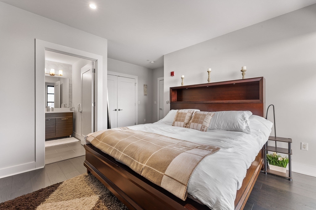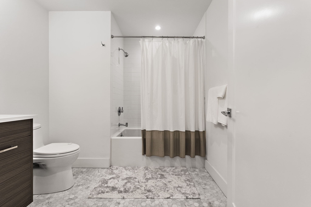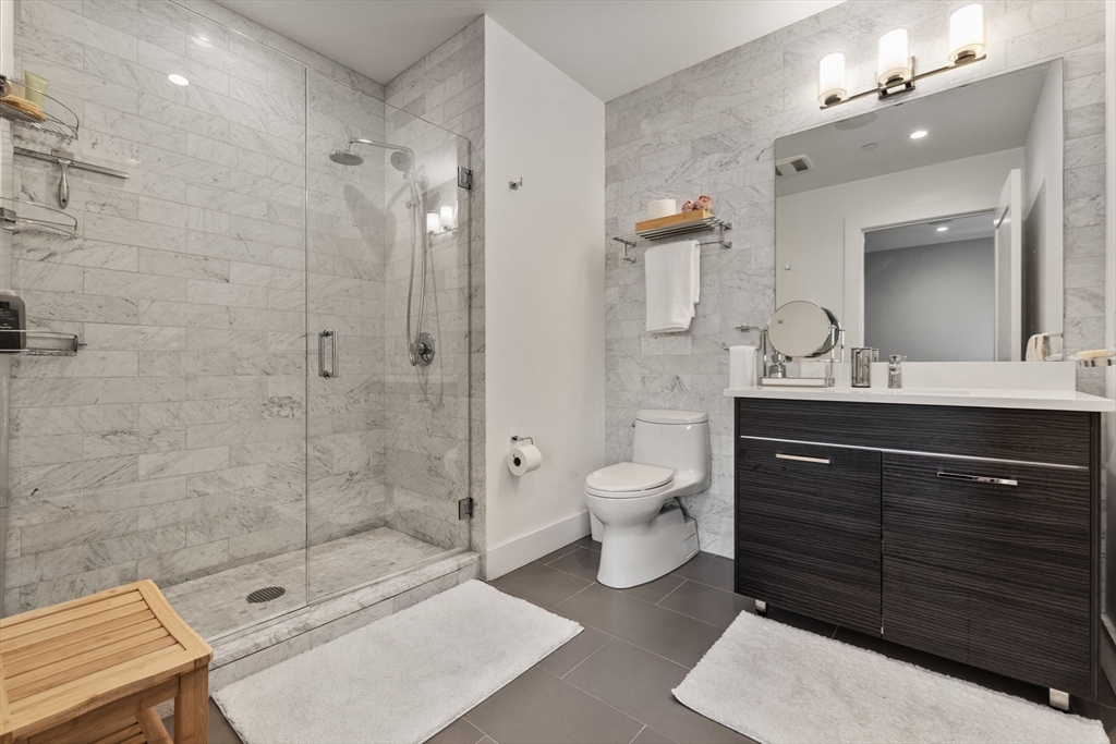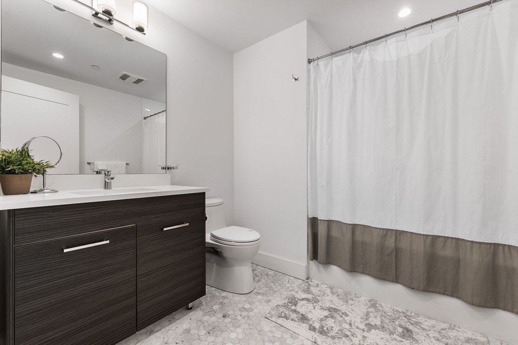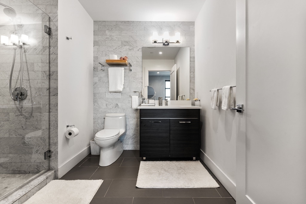 Steps from the Broadway T and South Boston’s best restaurants and cafés, this sun-drenched duplex blends dramatic design with full-service living. Double-height ceilings and expansive south-facing windows anchor the main level, where an open living area flows seamlessly into a Wolf/Sub-Zero kitchen. Positioned off the entry for added privacy, the den serves as an ideal office or bonus room and is complemented by a half bath and in-unit laundry.The upper level offers a serene primary suite with custom storage, a guest bedroom, and a second full bath. A major highlight is the 440+ sq. ft. private roof deck featuring panoramic city views, an unmatched extension of your living space.Residents enjoy luxury building amenities including full concierge services, valet, a fitness center, and two garage parking spaces. This is elevated South Boston living with immediate access to the Seaport and downtown.The Seller is offering a credit at closing equal to twelve (12) months of the HOA fee.