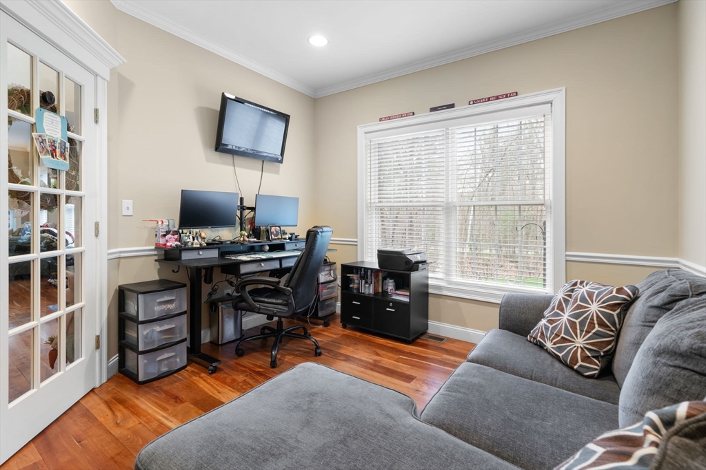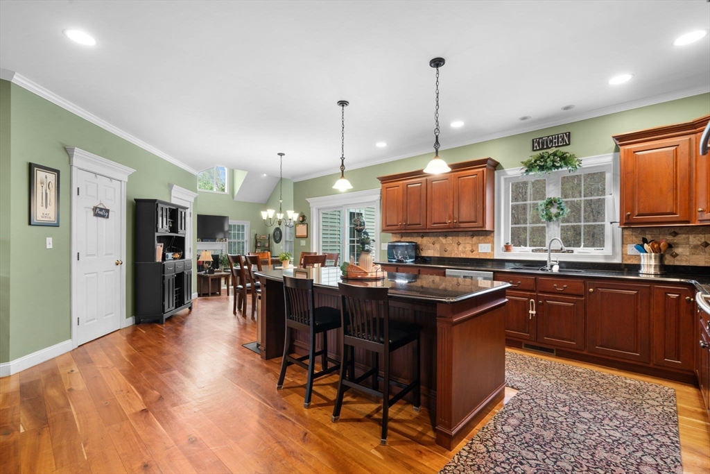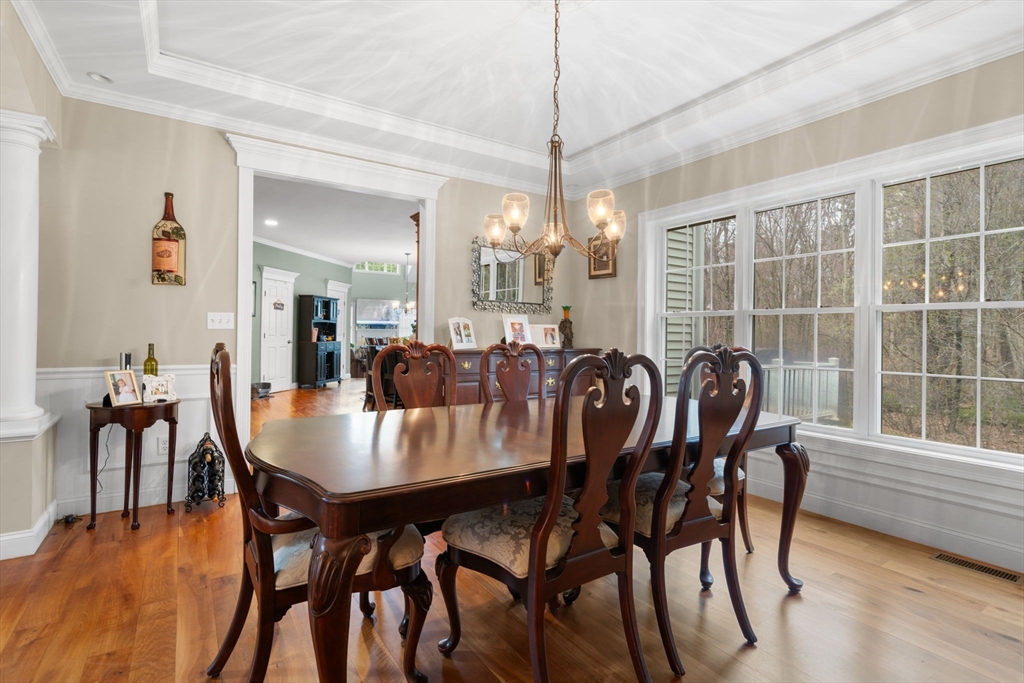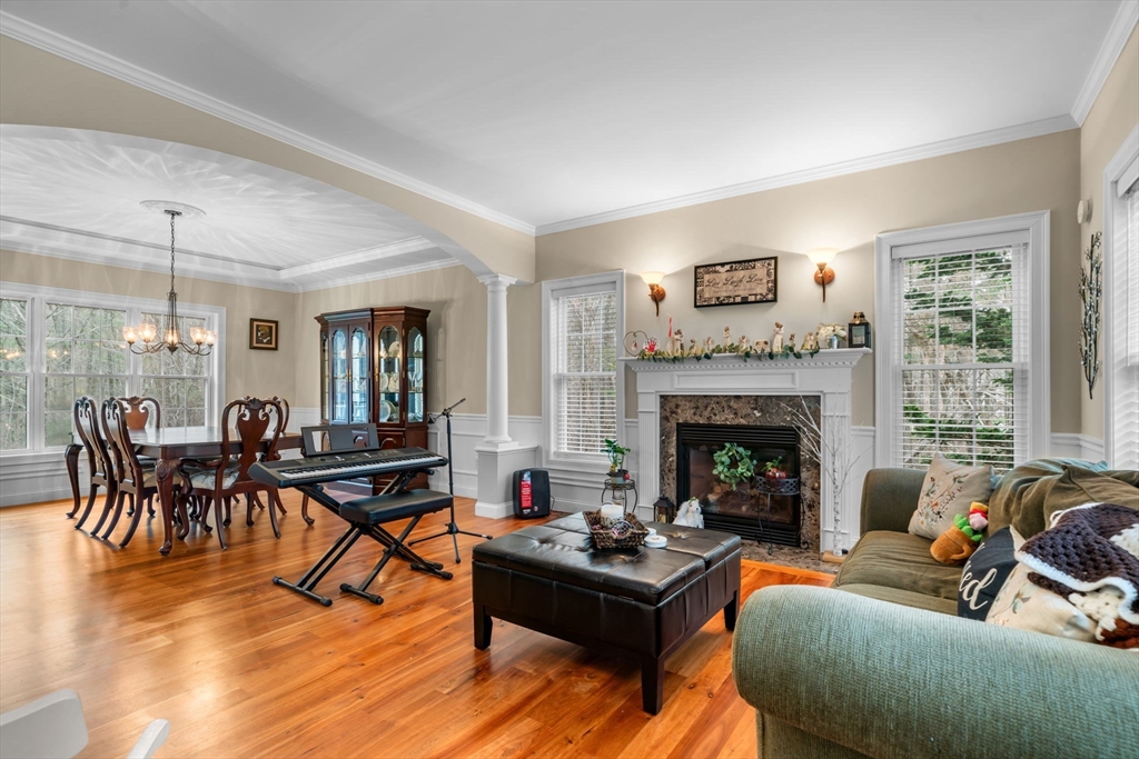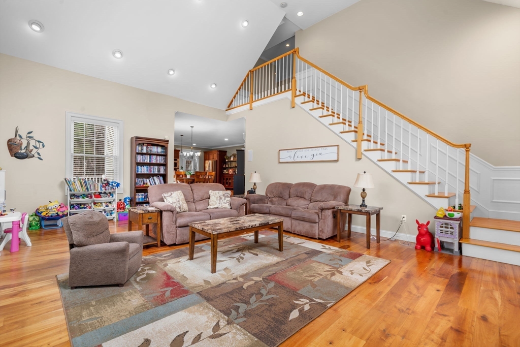 Experience refined living at 6 Patrick Way, a single-family four bedroom two and a half bath residence. This attractive property provides an exceptional foundation for a sophisticated lifestyle. The kitchen is a culinary enthusiast's dream, featuring stone counters, a central island, a custom range hood, and the convenience of a double oven, all designed for both functionality and aesthetic appeal. In the living room, high and vaulted ceilings create an expansive atmosphere, complemented by a gas fireplace and rich hardwood flooring that add an element of classic elegance. The main bathroom offers a spacious layout with a large double vanity, a walk-in shower, and multiple shower heads, along with a large walk in closet, creating a serene and spa-like experience. The spacious walkout basement already rough plumbed for adding a bathroom creates endless possibilities for expanding your living space for extended living space or an extended family. First Showings at Open house 05/02/2026