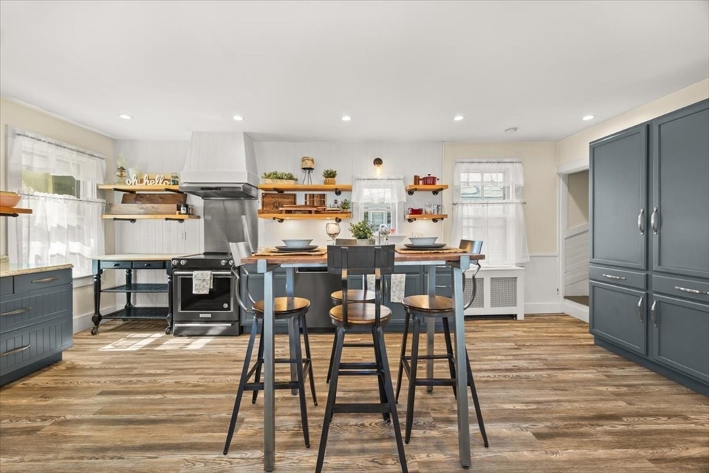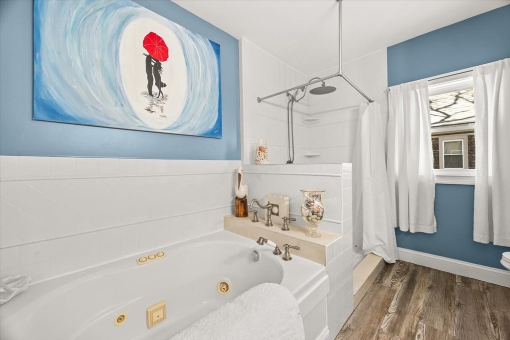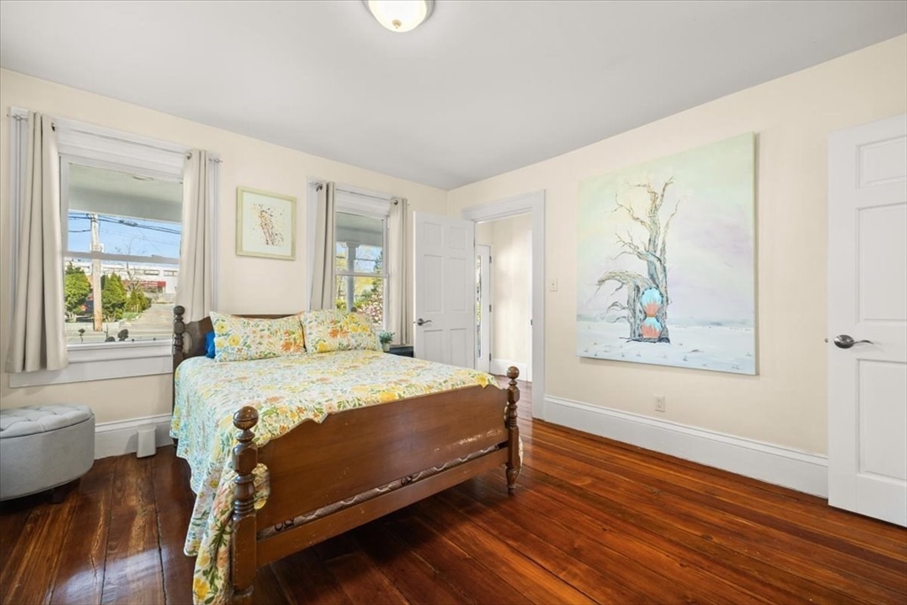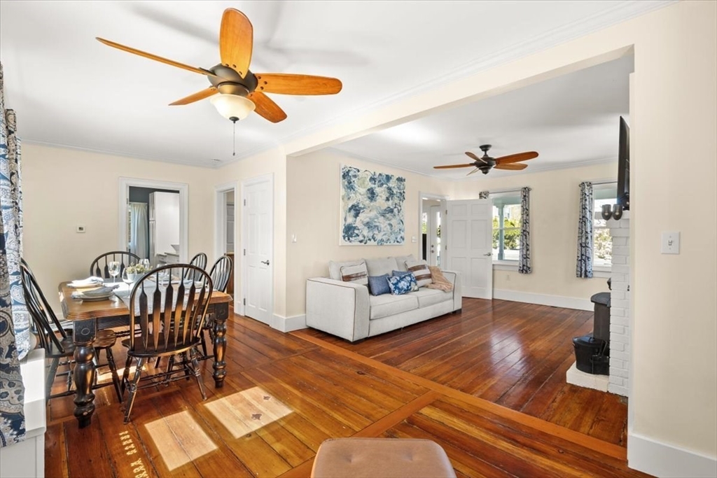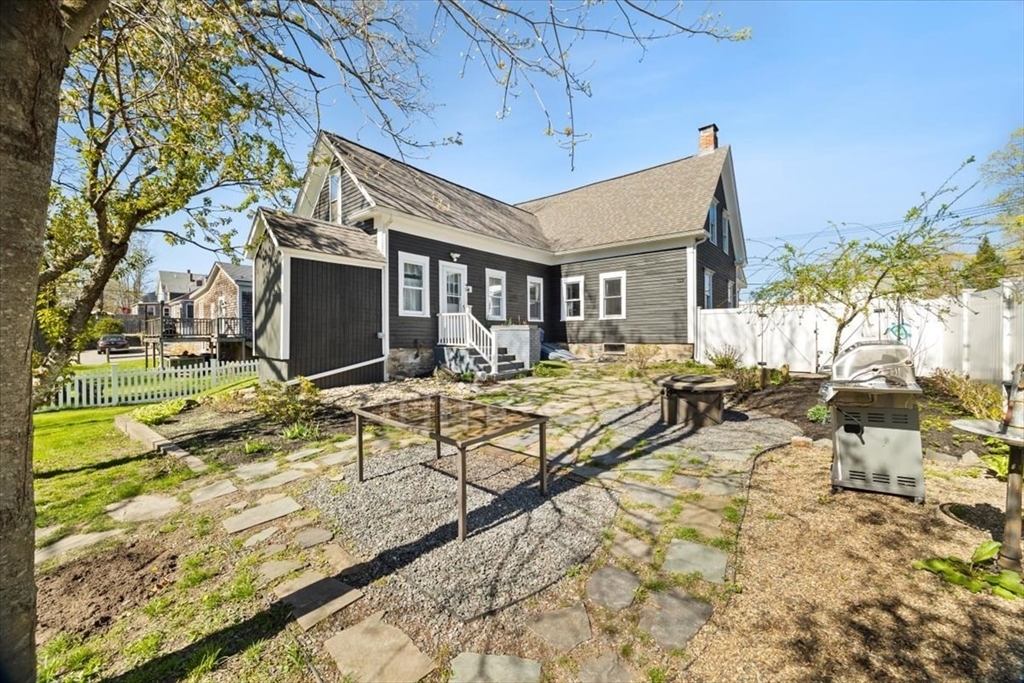 PERFECTLY CHARMING CAPE blending classic character with thoughtful updates and everyday comfort! This 4-bed, 2-bath home is drenched in natural light and warm details, with beautifully refinished wide-plank hardwood floors that set the tone the moment you walk in. The updated kitchen features black ss appliances, pantry storage, and a cozy dine-in area. A separate dining room offers space for gatherings, while solid doors and crown molding add a touch of craftsmanship. The first-floor bed and full bath are ideal for guests or a one-level living option. The living room is anchored by a wood-burning stove adding both charm and comfort. Upstairs, find 3 more beds, a full bath with the convenience of second-floor laundry. The basement includes a workshop space, perfect for hobbies or extra storage. Outside, enjoy a welcoming farmer’s porch and fenced backyard oasis—your own private retreat in the city. Updates: 4 yo roof, windows, hot water and oil tanks. Prime location can't be beat!!