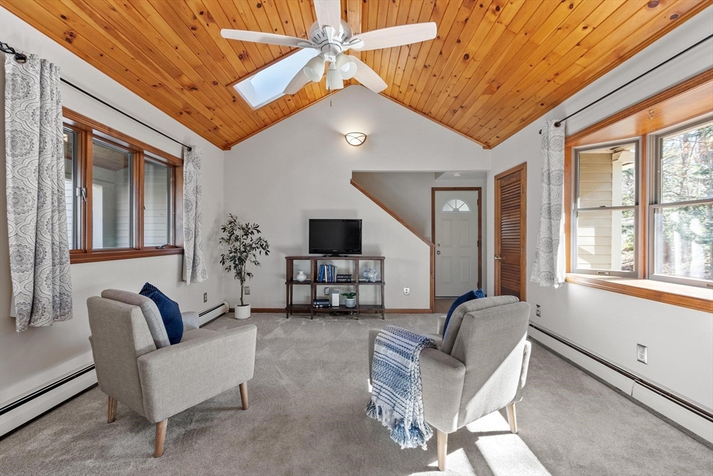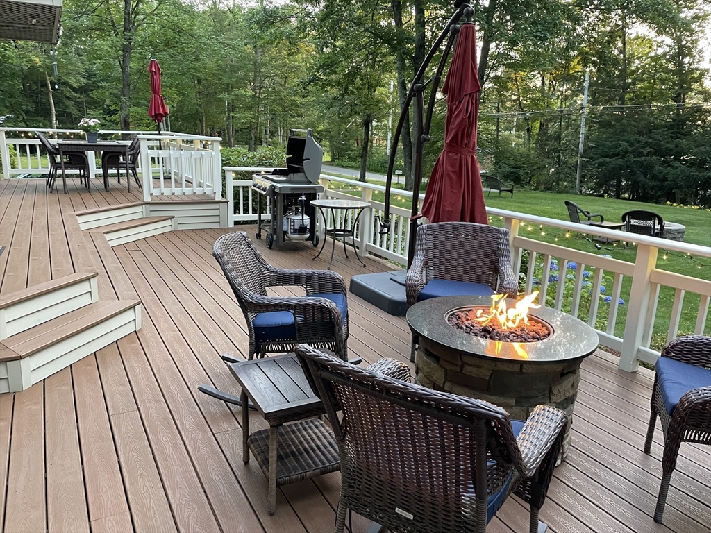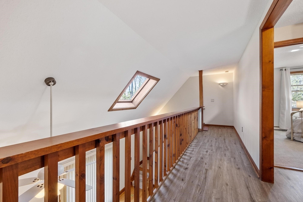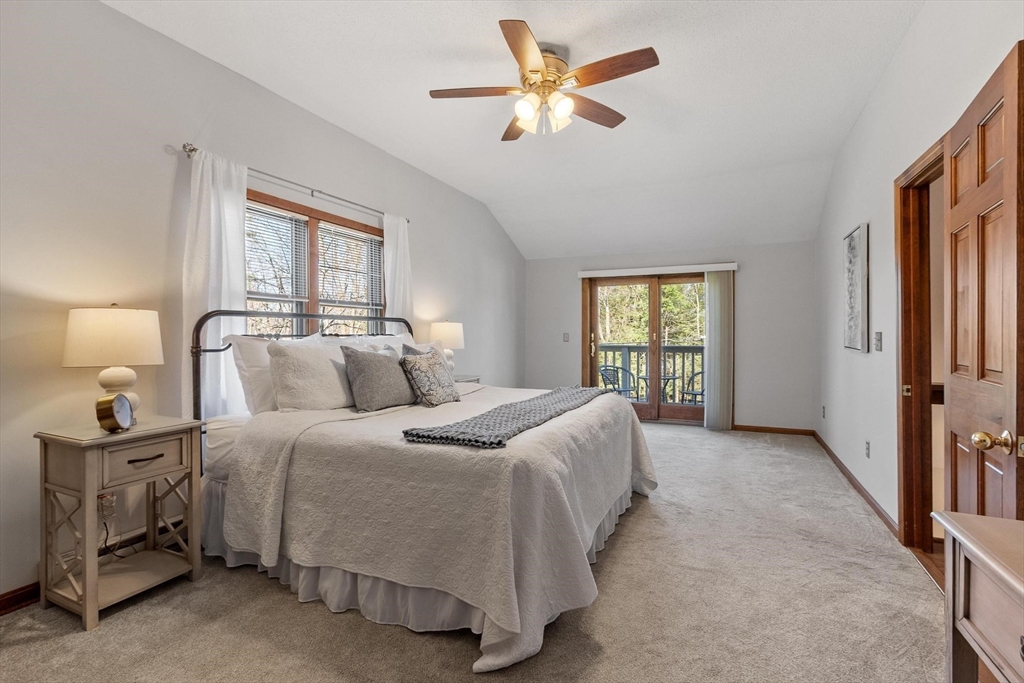 Contemporary cape in Ashburnham's Far Hills Association at Sunset Lake. Lake access to Ripple Beach via wooded trail across the street plus member access to 3 association beaches. 38 Noel Drive is a meticulously maintained home with an open concept first floor featuring cathedral ceiling, skylights, hardwood floors, granite counters & stainless appliances. First floor bedroom and full bath support single level living. Large finished room above the garage works as flex space. You may end up spending most of your time on the 2-tiered composite deck. Covered porch and primary bedroom balcony add to outdoor living spaces. Irrigation system and generator connection. New roof (2026) and new driveway (2025). Association fee covers municipal water. Sunset Lake is 300 acres — 4 seasons of boating, kayaking, swimming, fishing, ice fishing, and snowmobiling. Heated 2-car garage fits a full-size pickup with room outside for a boat or RV. Ashburnham-Westminster Regional School District.