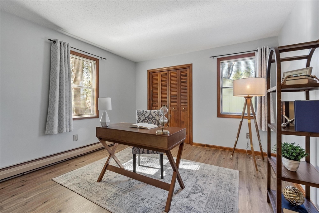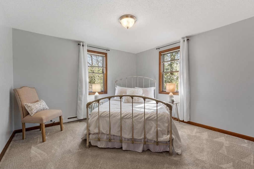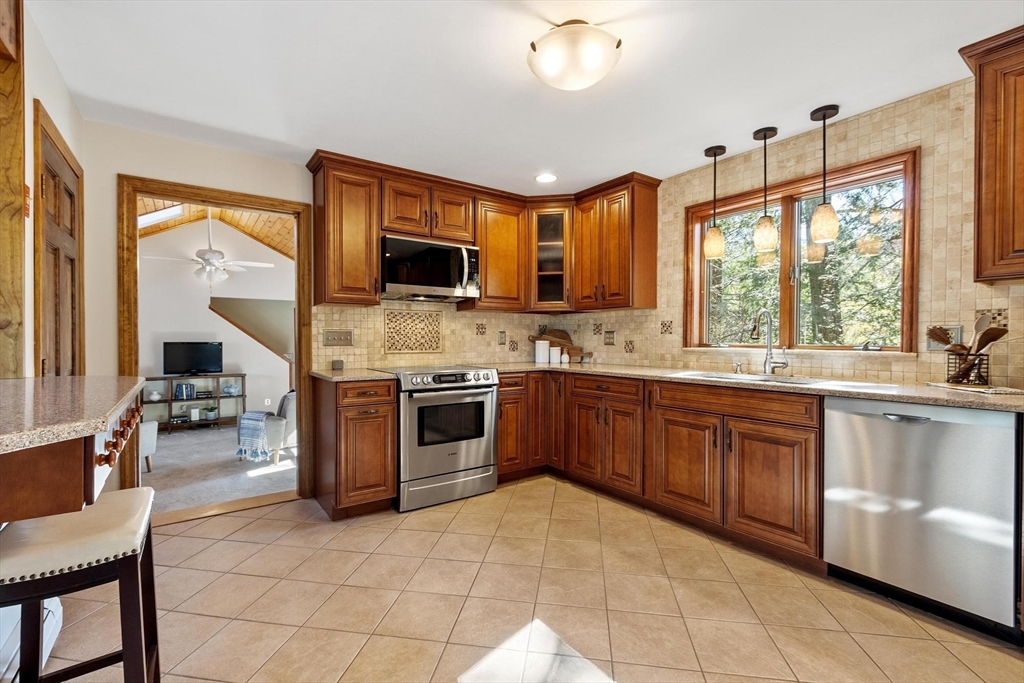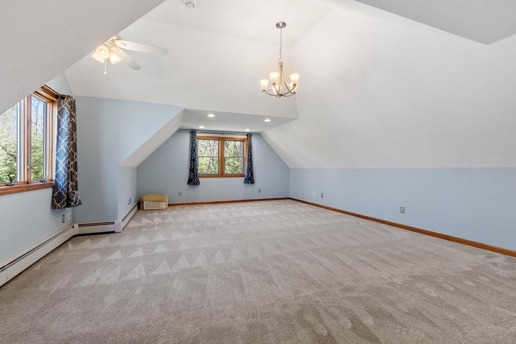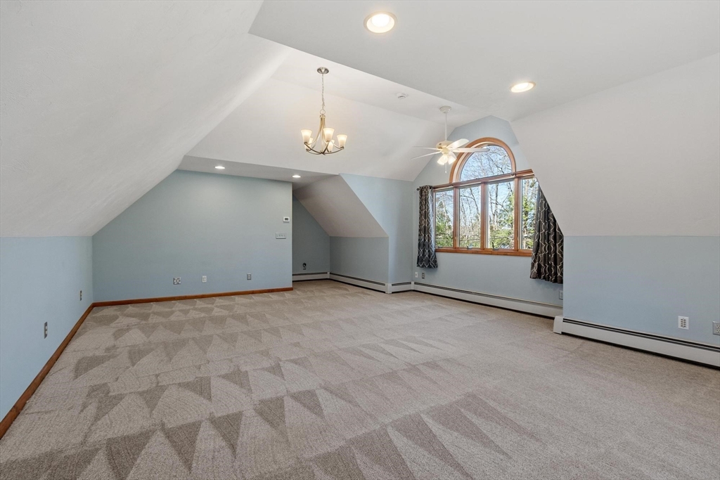 Contemporary cape in Ashburnham's Far Hills Association at Sunset Lake. Lake access to Ripple Beach via wooded trail across the street plus member access to 3 association beaches. 38 Noel Drive is a meticulously maintained home with an open concept first floor featuring cathedral ceiling, skylights, hardwood floors, granite counters & stainless appliances. First floor bedroom and full bath support single level living. Large finished room above the garage works as flex space. You may end up spending most of your time on the 2-tiered composite deck. Covered porch and primary bedroom balcony add to outdoor living spaces. Irrigation system and generator connection. New roof (2026) and new driveway (2025). Association fee covers municipal water. Sunset Lake is 300 acres — 4 seasons of boating, kayaking, swimming, fishing, ice fishing, and snowmobiling. Heated 2-car garage fits a full-size pickup with room outside for a boat or RV. Ashburnham-Westminster Regional School District.