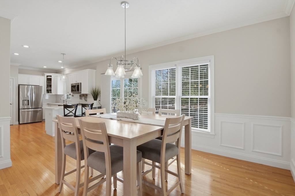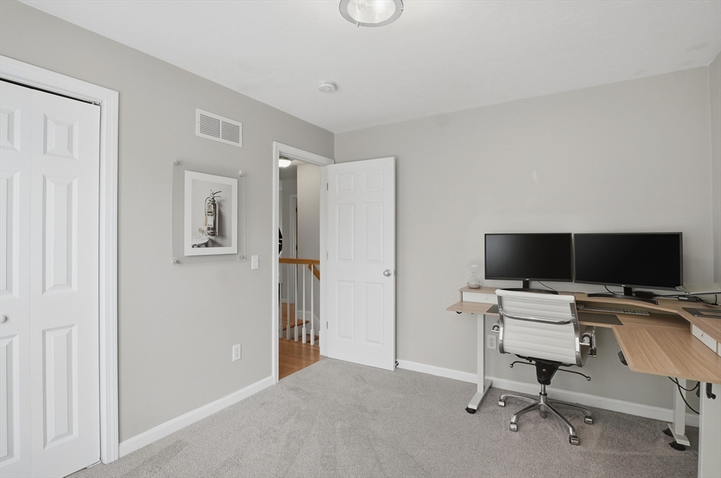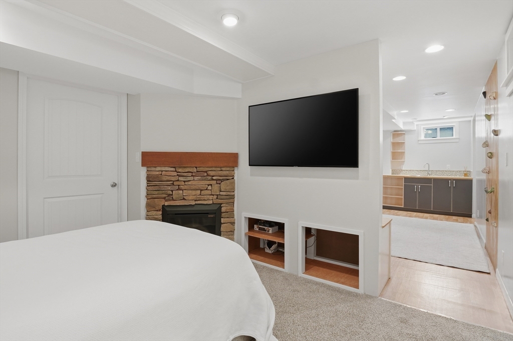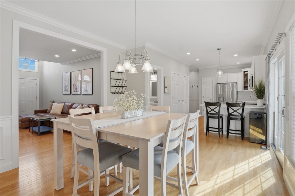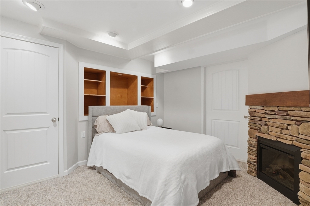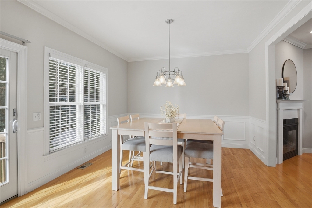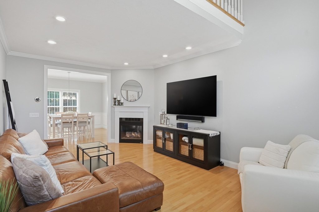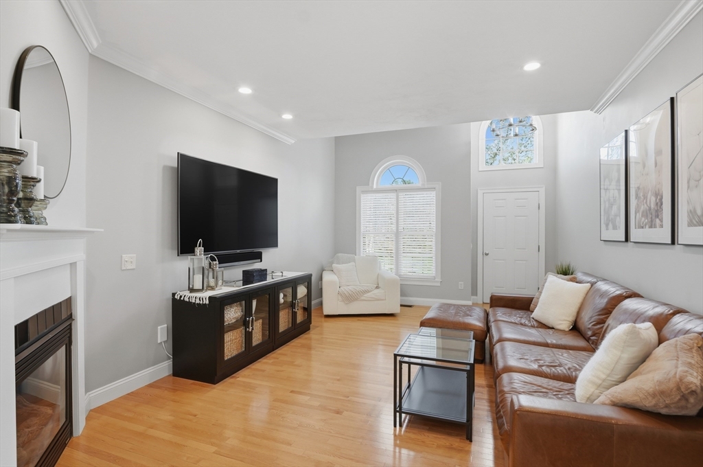 Welcome to this 3-bedroom end-unit townhome in the desirable Samreen Villa community. This open and airy floor plan is perfect for entertaining, featuring gleaming hardwood floors throughout the first floor and a bright family room with a gas fireplace, large windows & high ceilings. The spacious kitchen is updated with beautiful finishes offering plenty of room for cooking and gathering, while the dining area opens to a private rear deck. A versatile loft provides an ideal space for a home office or lounge. Hardwood stairs lead to 3 generously sized bedrooms with ample closet space, along with convenient second-floor laundry and updated baths. The primary en-suite is spacious with a tray ceiling, walk in closet with a closet system and a private bath with beautiful finishes and a double vanity. The finished lower level boasts a versatile space complete with a 2nd gas fireplace, wet bar & storage area. The 2 car garage offers direct access to the home. This home is move in ready.
