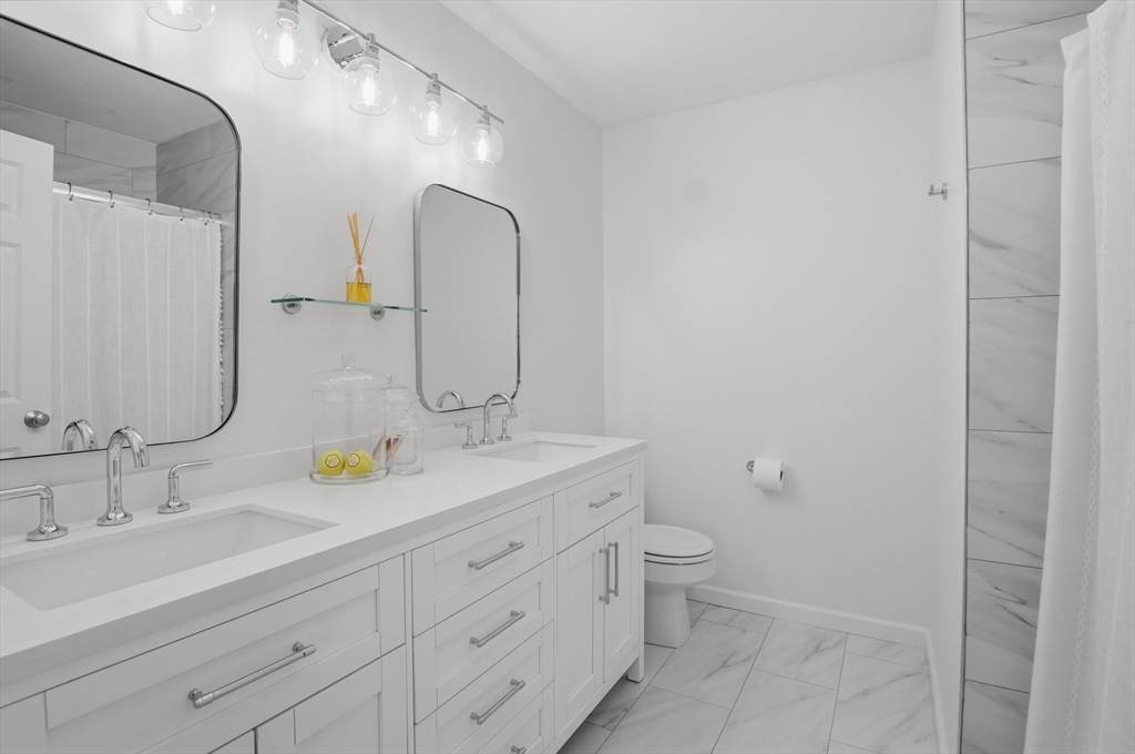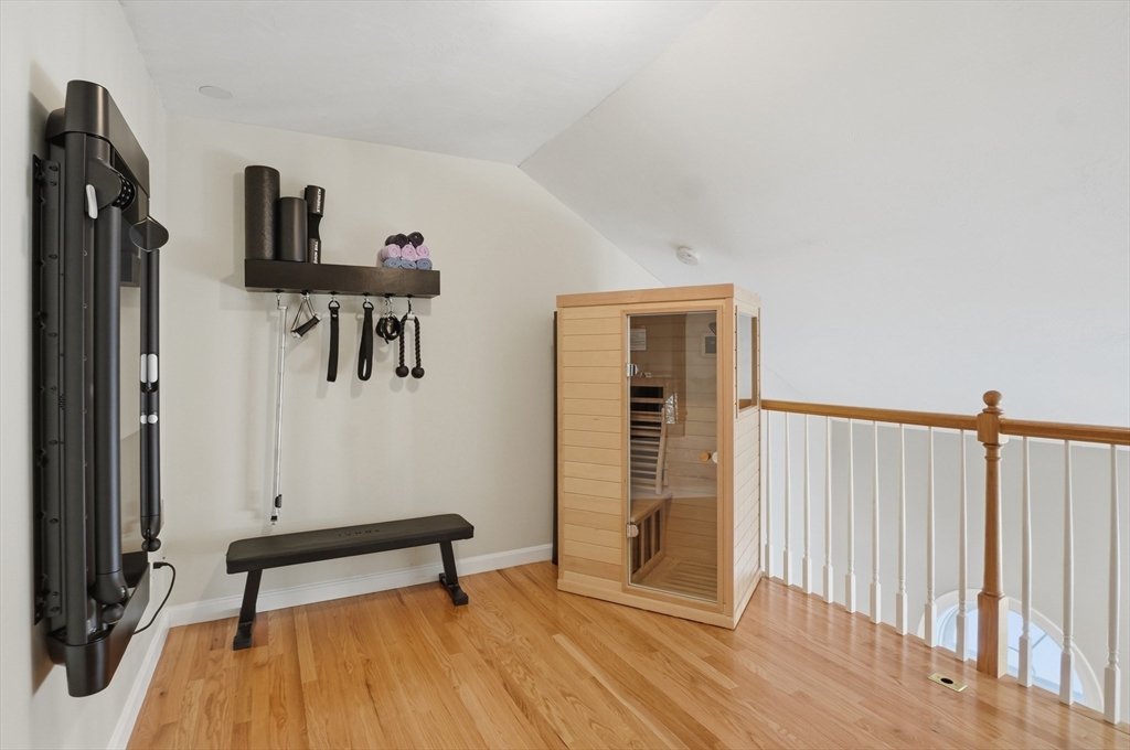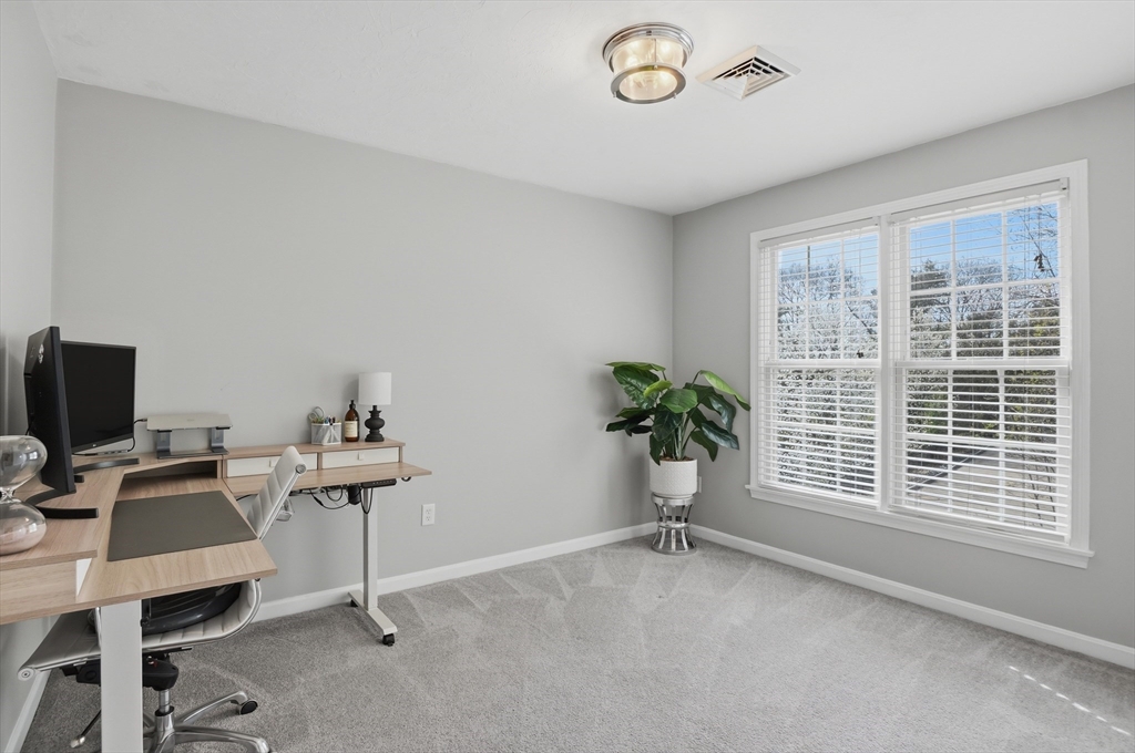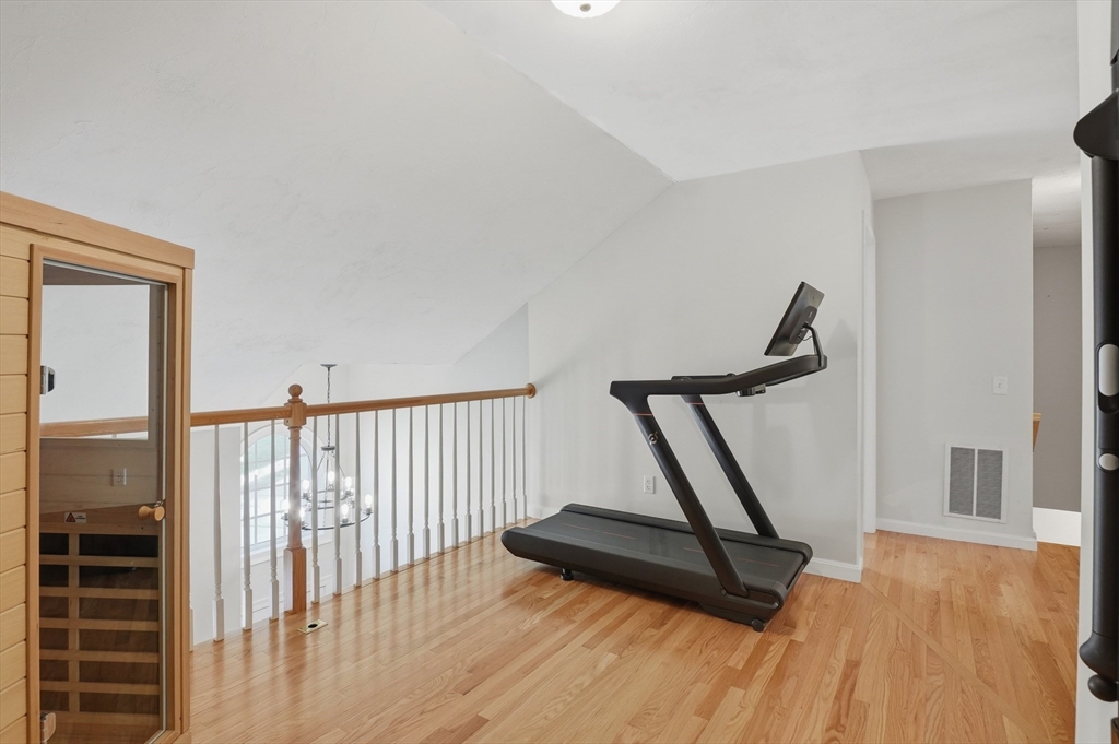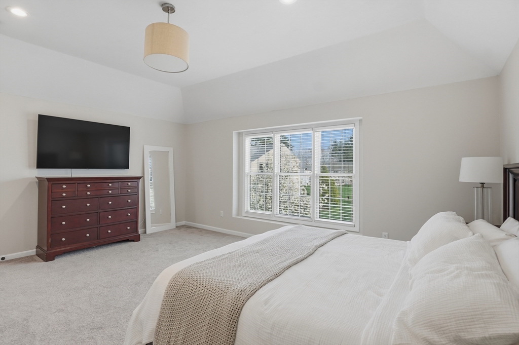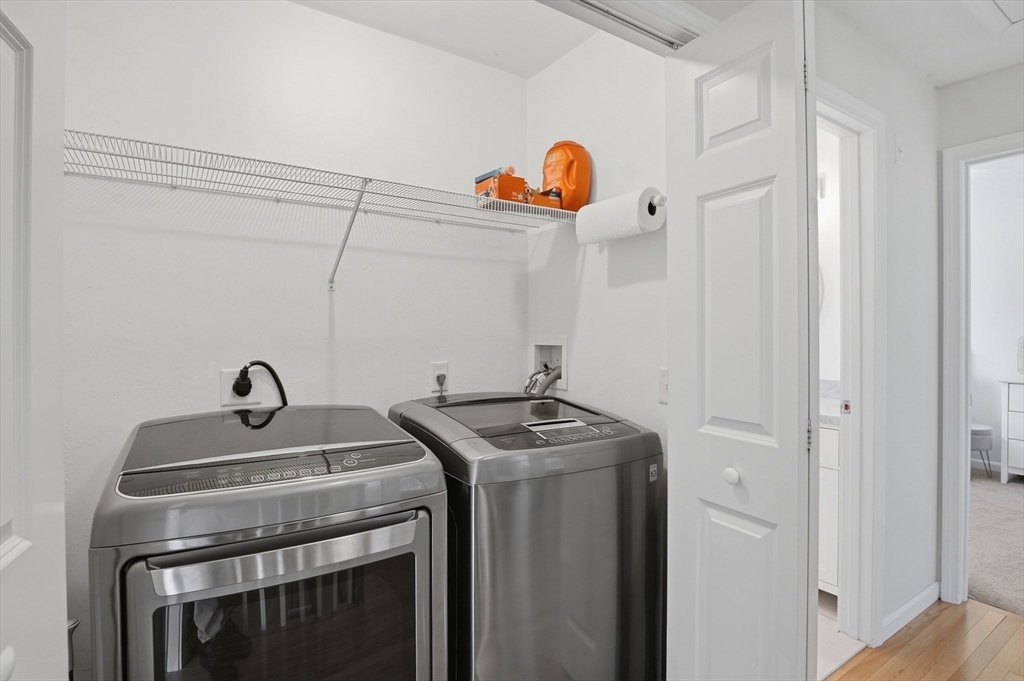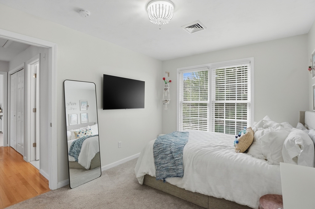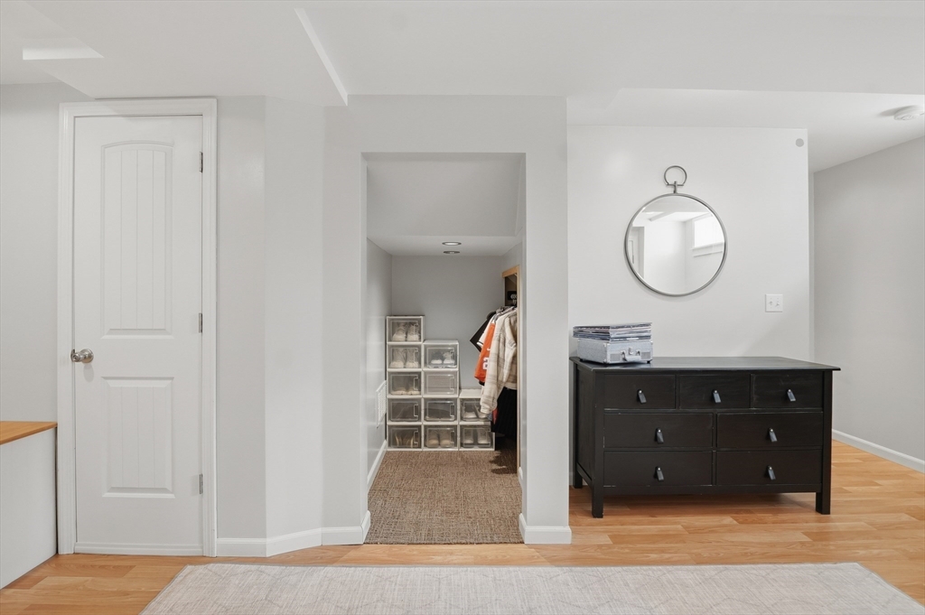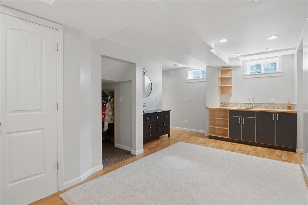 Welcome to this 3-bedroom end-unit townhome in the desirable Samreen Villa community. This open and airy floor plan is perfect for entertaining, featuring gleaming hardwood floors throughout the first floor and a bright family room with a gas fireplace, large windows & high ceilings. The spacious kitchen is updated with beautiful finishes offering plenty of room for cooking and gathering, while the dining area opens to a private rear deck. A versatile loft provides an ideal space for a home office or lounge. Hardwood stairs lead to 3 generously sized bedrooms with ample closet space, along with convenient second-floor laundry and updated baths. The primary en-suite is spacious with a tray ceiling, walk in closet with a closet system and a private bath with beautiful finishes and a double vanity. The finished lower level boasts a versatile space complete with a 2nd gas fireplace, wet bar & storage area. The 2 car garage offers direct access to the home. This home is move in ready.