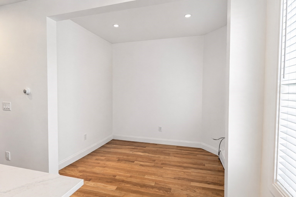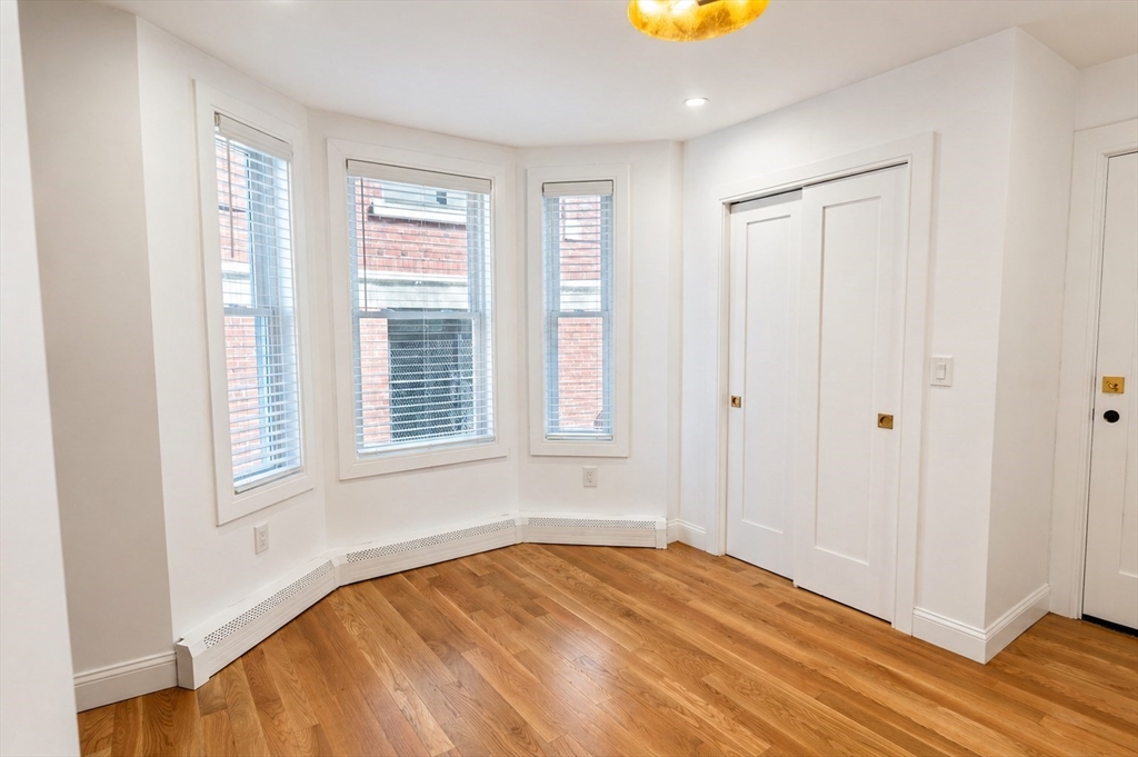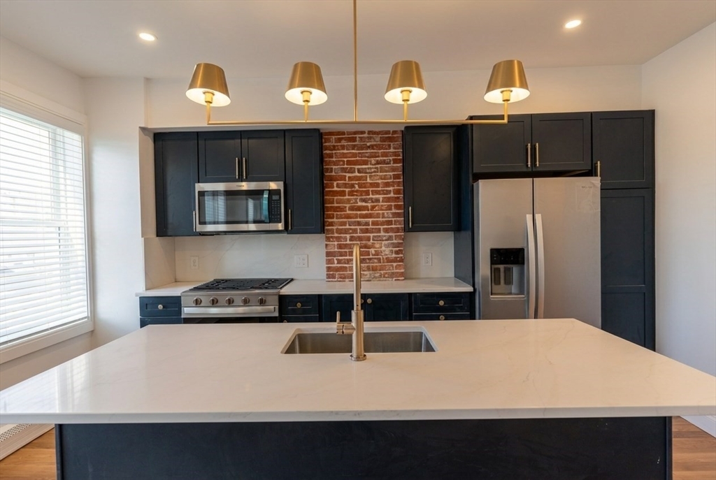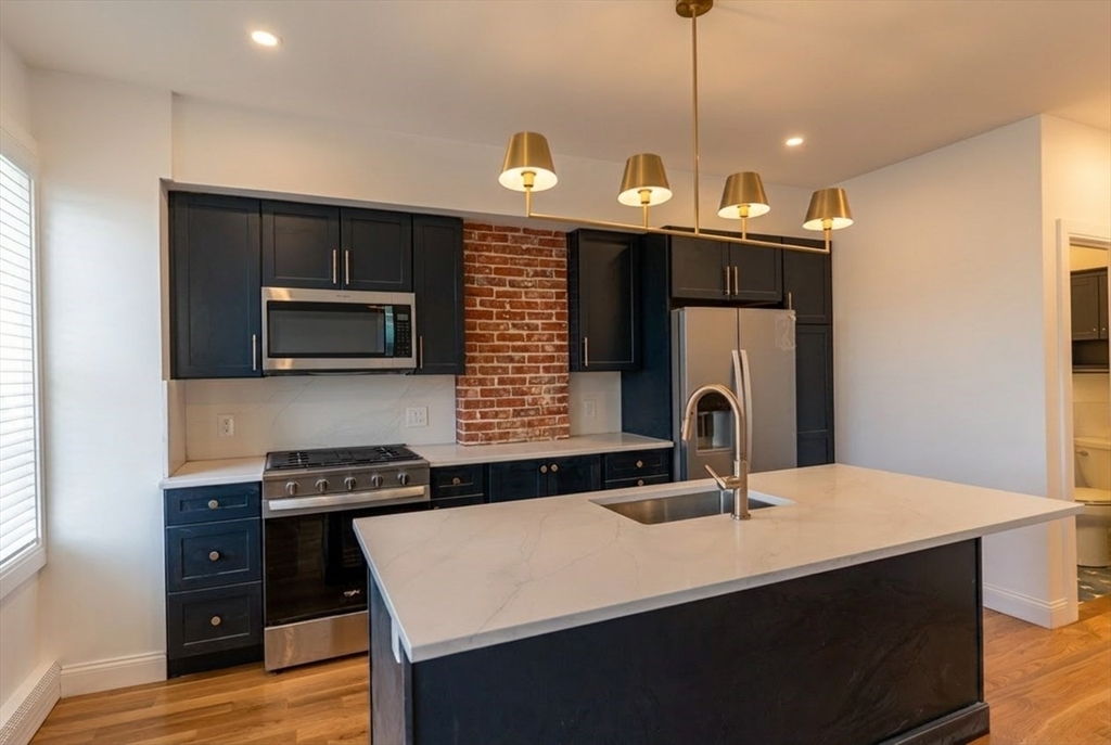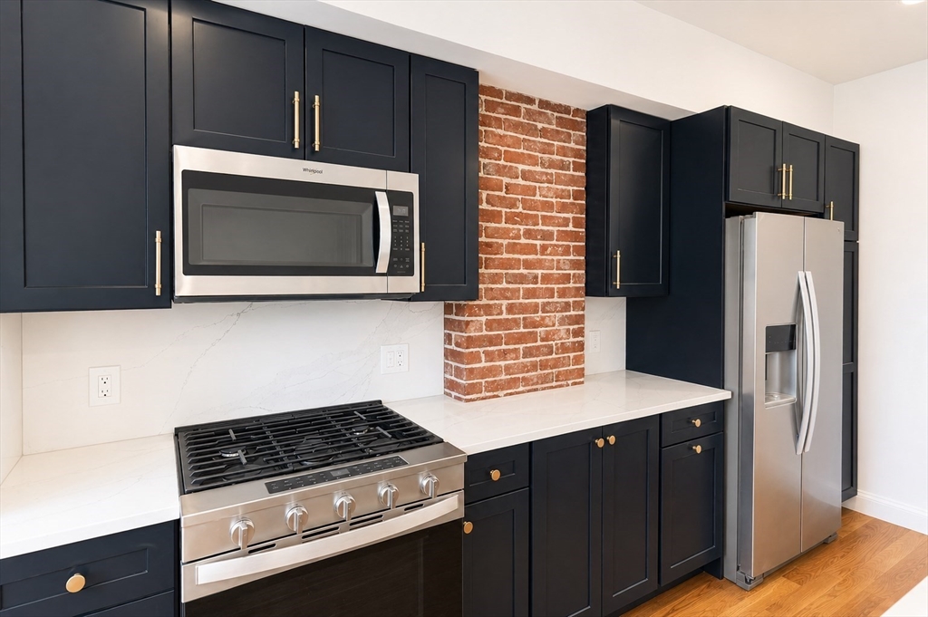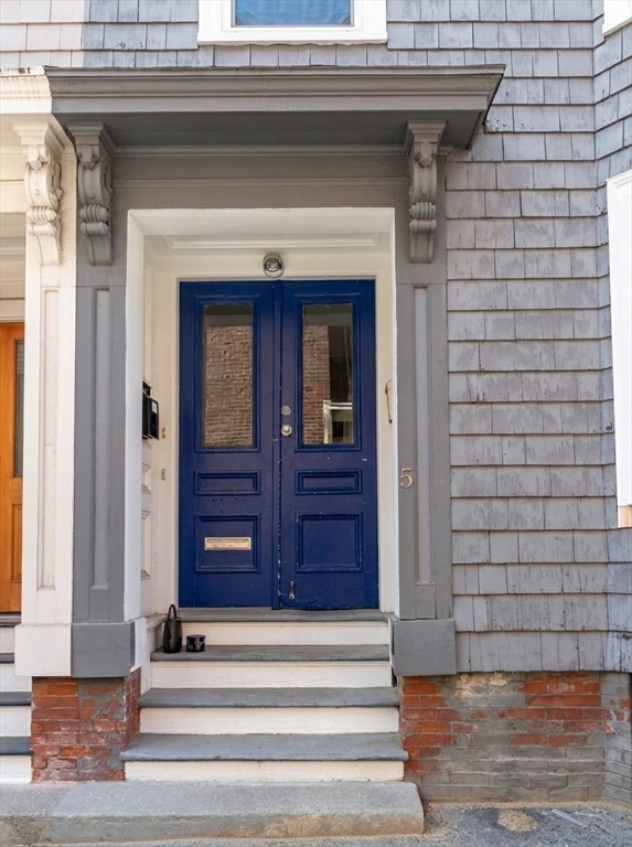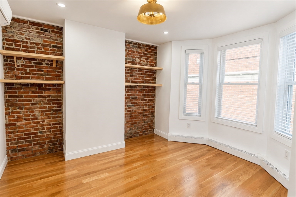 Tucked along one of Charlestown’s private ways, 5 Holden Row unfolds behind a striking blue entry door.This renovated home brings a warmth that feels distinctly Charlestown: exposed brick, hardwood floors, and an efficient layout that makes the residence live larger than its square footage. The main living space has oversized windows drawing that bring in so much natural light. The exposed brick walls layer in character, while the renovated kitchen makes a bold statement with sleek dark cabinetry. The space is anchored by a generous island and matched with designer lighting that adds just the right amount of polish. Floating shelves frame the bedroom and give it a custom feel. Plus, this property has in-unit laundry and central air! Available 5/15 or 6/1