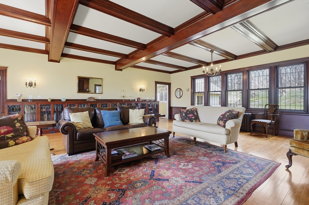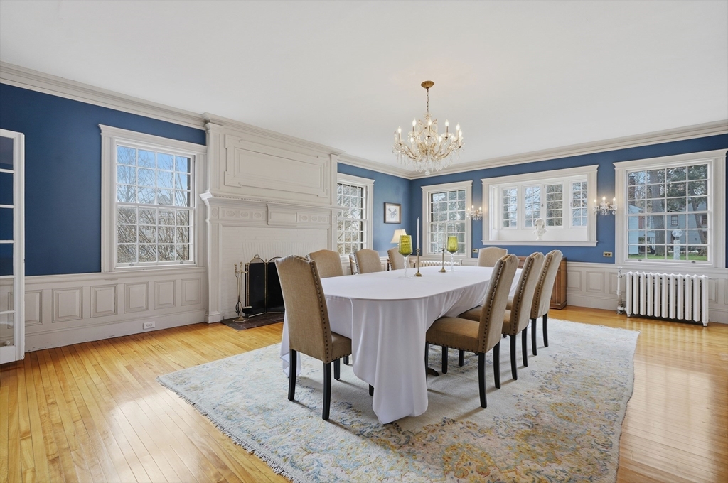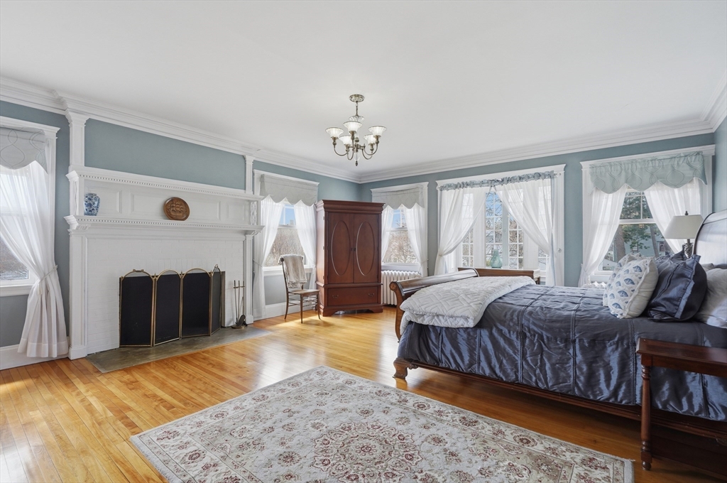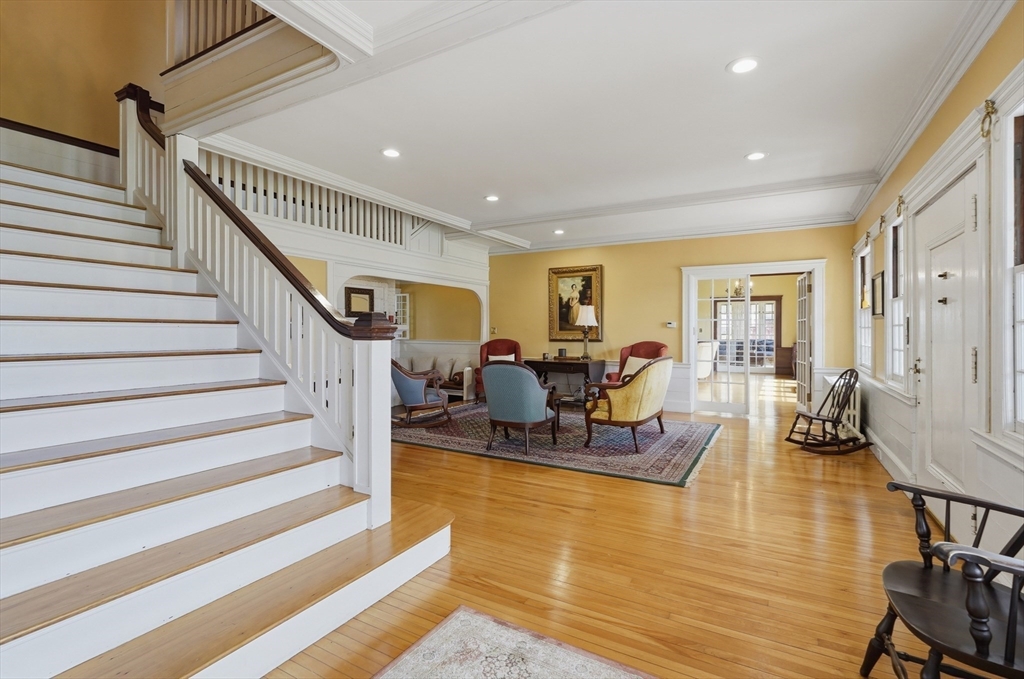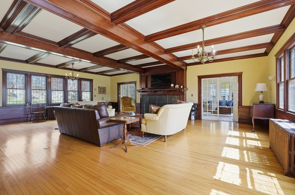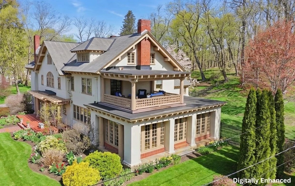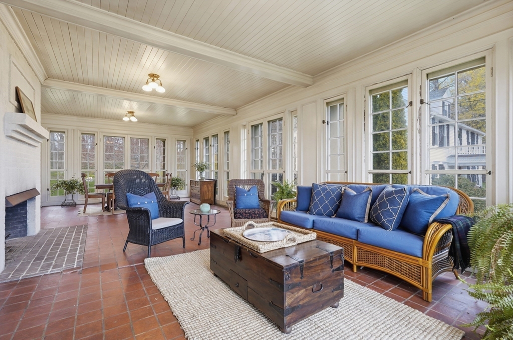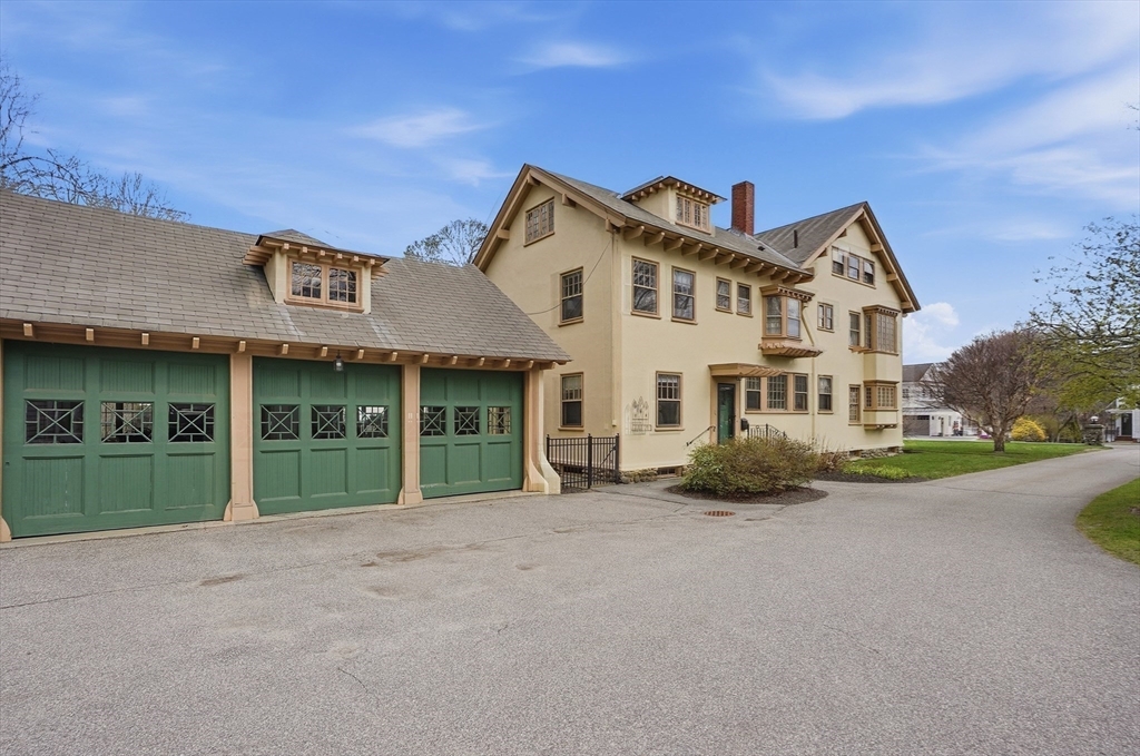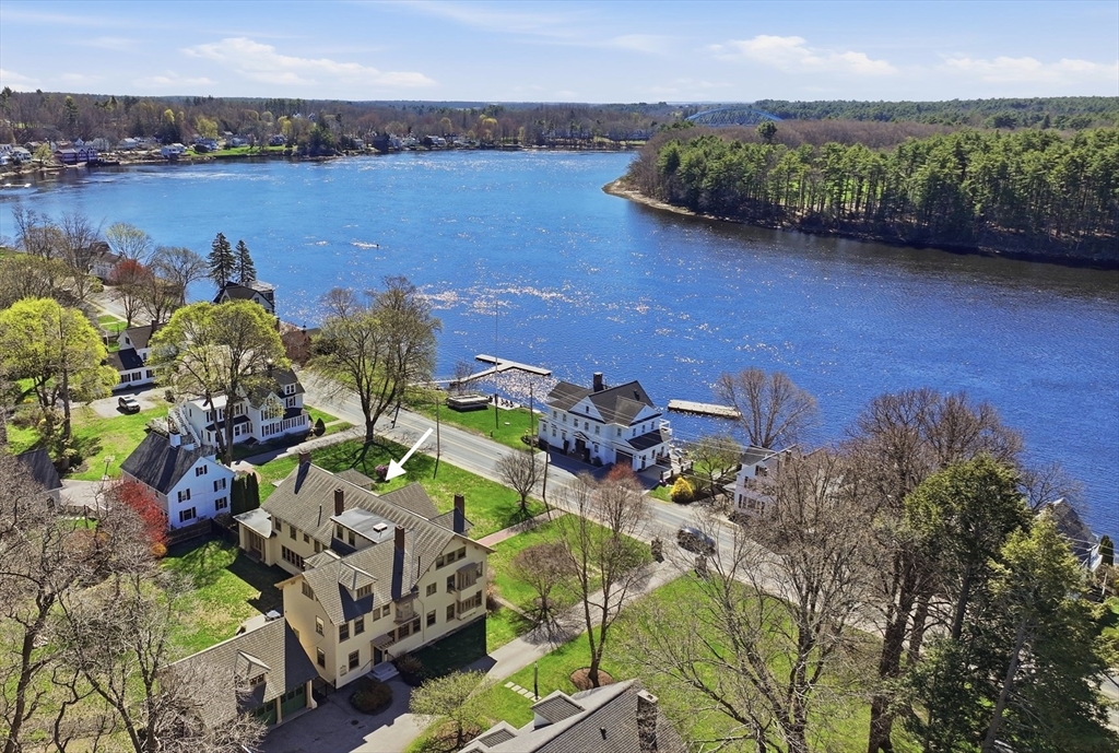 Step inside and feel history at every turn. In 1912, William Biddle, the industrialist who made Amesbury the Carriage Capital of the World and whose firm crafted bodies for Rolls-Royce, built this mansion as his crowning achievement. Mahogany box beams soar above leaded glass bookcases and windows, fireplaces crackle with warmth, a dumbwaiter runs, and servant bells recall an era of remarkable craftsmanship. Entertain beneath a crystal chandelier, then spill into the heated sunroom, wrapped in windows and its own fireplace. Merrimack River views follow you room to room and from the rooftop deck toward the Marina at Amesbury Point just upriver. A chef's kitchen with a 10' island and double oven anchors modern life, while the butler's pantry remains as Mr. Biddle intended. 3-car garage, private backyard, one hour to Boston. Ideal for primary or multi-generational living and au pair suites. This is not just a home, it is a piece of American history, waiting for its next great chapter.