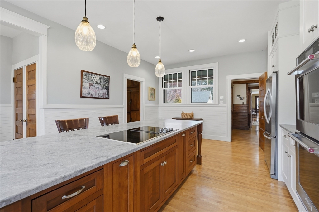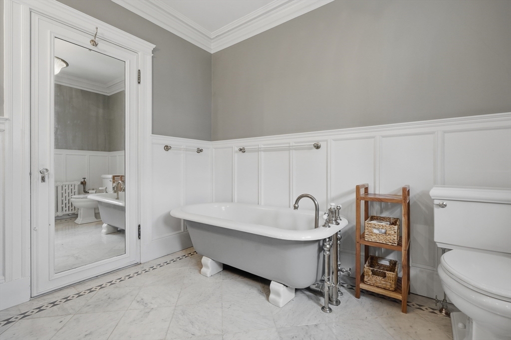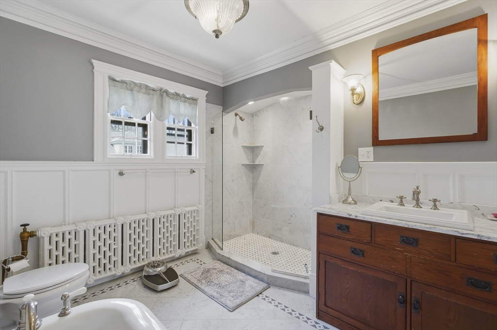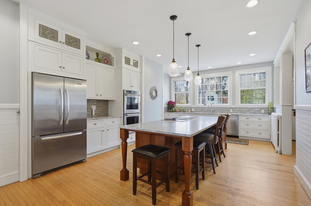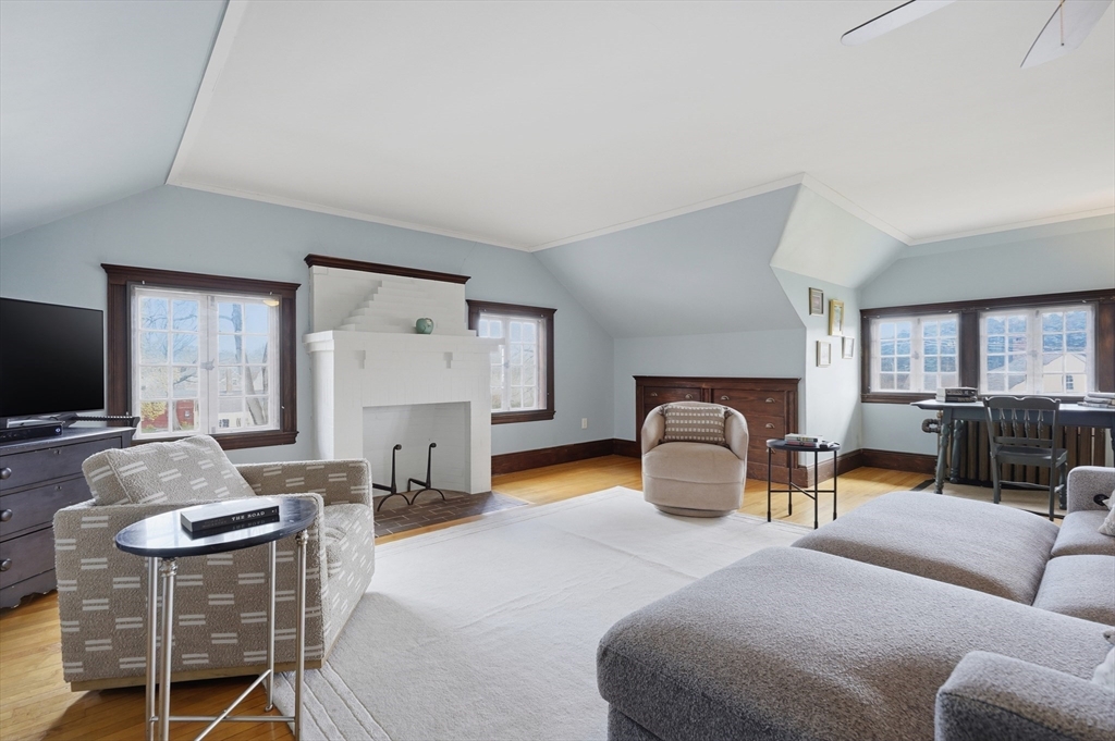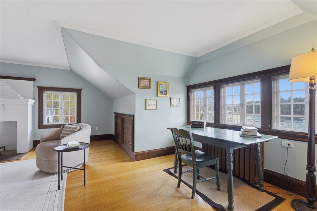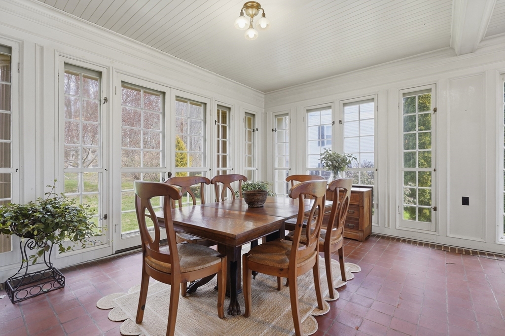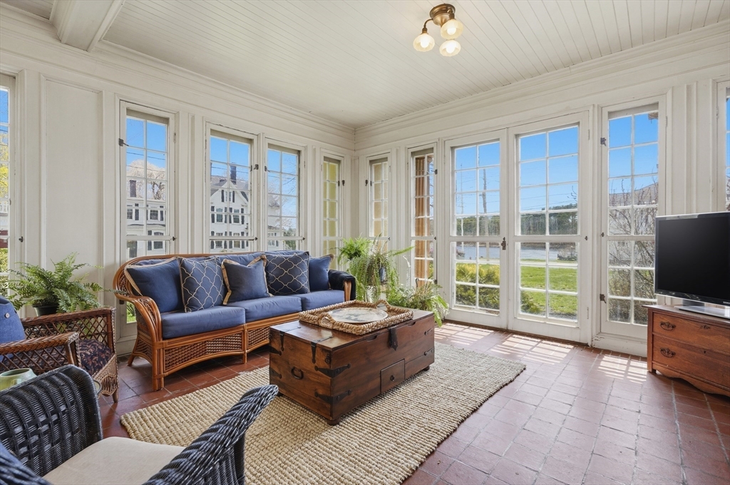 Step inside and feel history at every turn. In 1912, William Biddle, the industrialist who made Amesbury the Carriage Capital of the World and whose firm crafted bodies for Rolls-Royce, built this mansion as his crowning achievement. Mahogany box beams soar above leaded glass bookcases and windows, fireplaces crackle with warmth, a dumbwaiter runs, and servant bells recall an era of remarkable craftsmanship. Entertain beneath a crystal chandelier, then spill into the heated sunroom, wrapped in windows and its own fireplace. Merrimack River views follow you room to room and from the rooftop deck toward the Marina at Amesbury Point just upriver. A chef's kitchen with a 10' island and double oven anchors modern life, while the butler's pantry remains as Mr. Biddle intended. 3-car garage, private backyard, one hour to Boston. Ideal for primary or multi-generational living and au pair suites. This is not just a home, it is a piece of American history, waiting for its next great chapter.