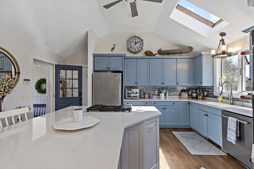 This beautifully maintained home is NOT a drive-by! Enjoy lake living with deeded rights to Long Pond and water views. Ideally located minutes to Lake Wequaquet and Craigville Beach. The main home features an open floor plan with welcoming sunlit rooms, a spacious kitchen with upgraded appliances and quartz countertops, 3 bedrooms, and 2 updated full baths. The finished walk-out lower level offers a separate entrance and additional living space with office, kitchen, living area, and laundry--ideal for guests or extended living. The generous deck overlooks the water, and the fenced, AstroTurf front yard and private putting green offer plenty of space for outdoor entertainment. A detached year round 580 sq.ft ADU with water views provides flexible space for an office, studio, or workshop. This home is perfect for year-round use, a weekend retreat, or potential long/ short term rental opportunities or for families looking for a multi generational property. Conveniently located close to sh