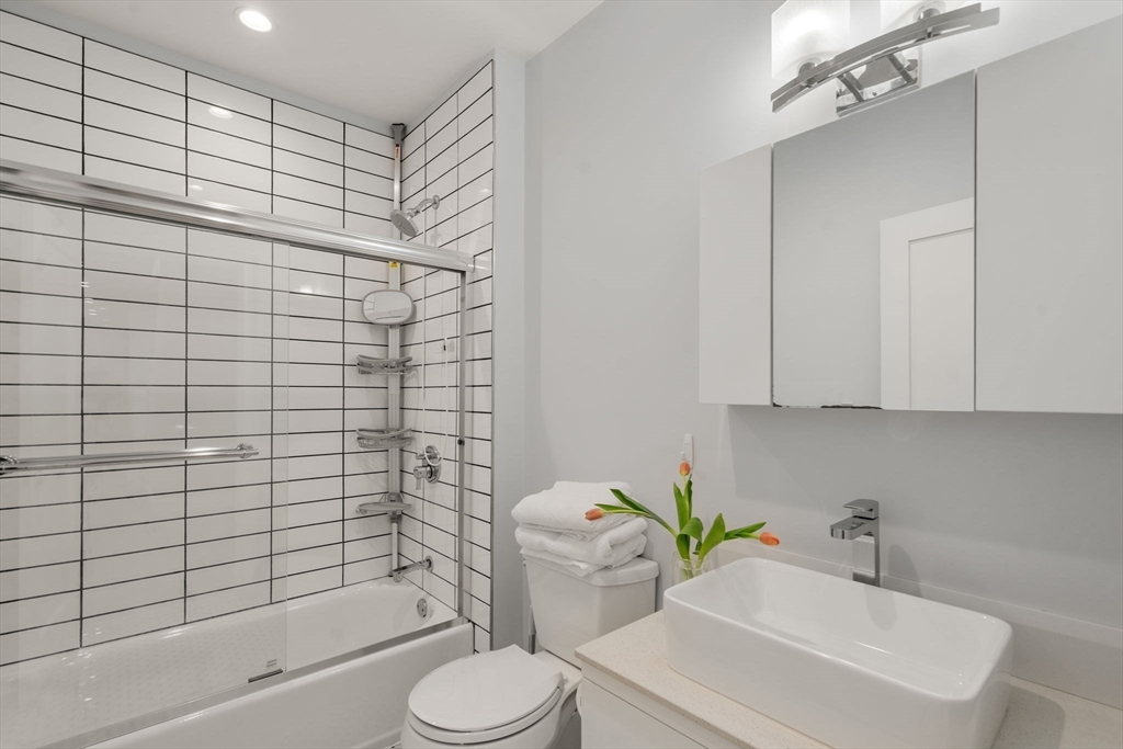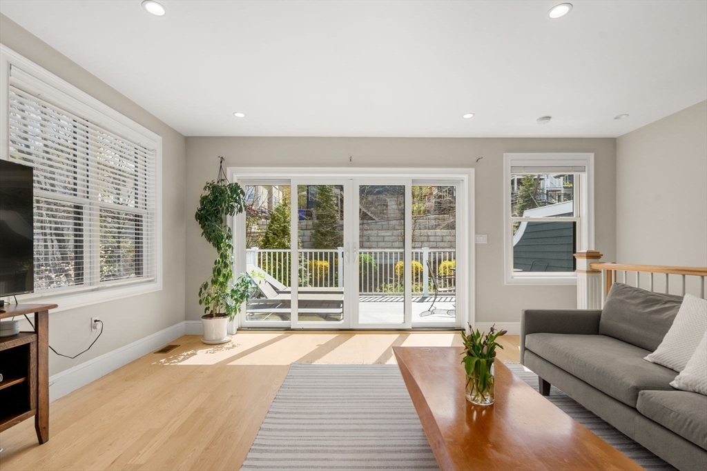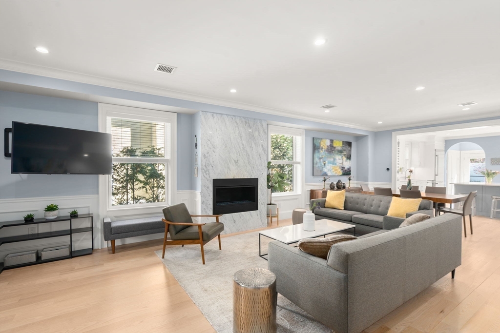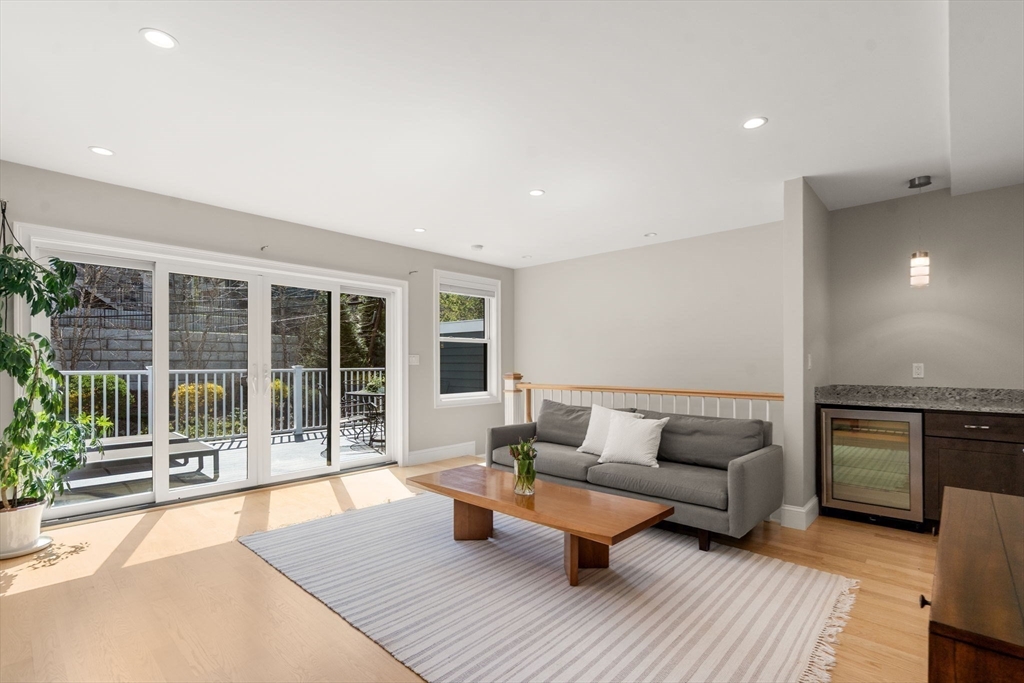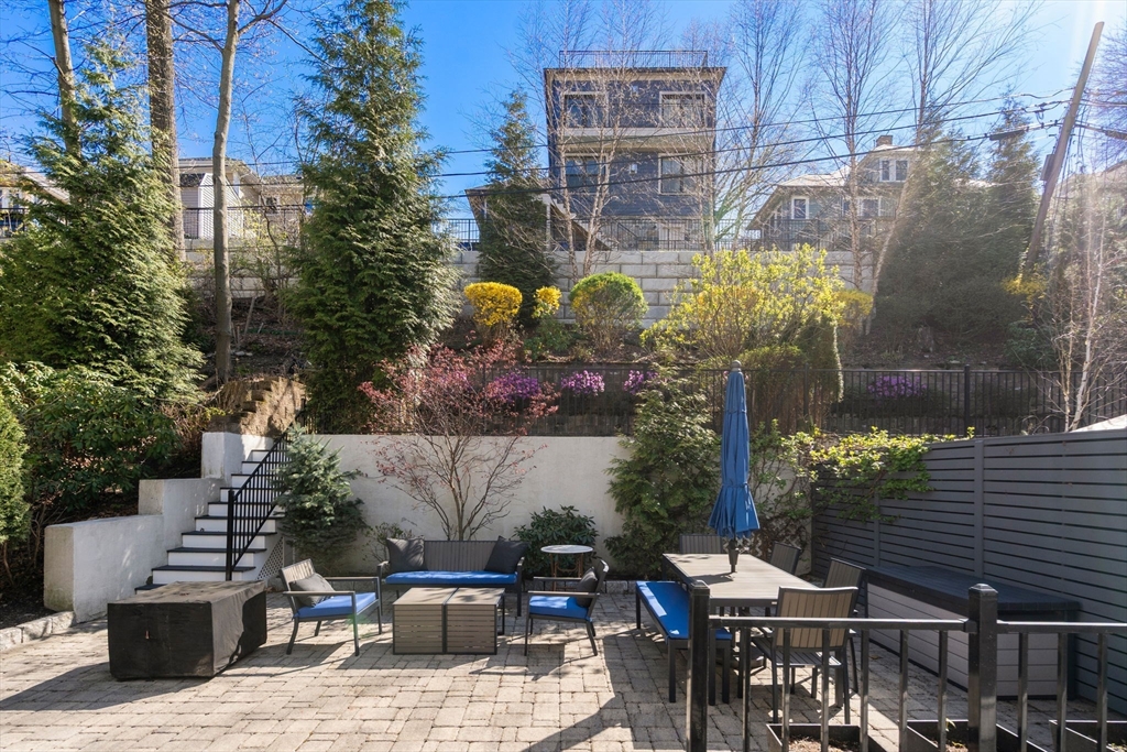 Spectacular single-family alternative. This side-by-side Contemporary Luxury townhouse, newly constructed in 2017, features all the luxury you would expect. Sprawling living room and dining. The eat-in kitchen has custom cabinetry, Thermador appliances, and marble countertops. The kitchen has direct access to the large private/exclusive backyard, which spans two levels. There is a large patio and garden. There are 5 bedrooms and 4.5 baths. Large Primary has cathedral ceilings and an ensuite, featuring a double shower, double vanity, soaking tub, and radiant floor heating. Adjoining the primary is a large family/sitting room with sliders to the patio overlooking the back garden. There is a finished lower level with a large family room and a large bedroom, both with glass sliders for direct outdoor access. There is a convenient kitchenette as well. Playground directly across. Minutes to school, shopping, restaurants, and T. Convenient to Longwood Medical and Boston. 92 Walk Score.
