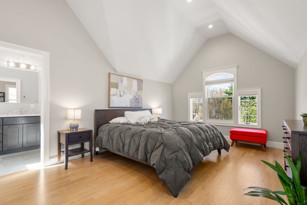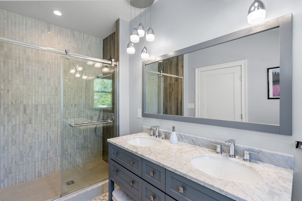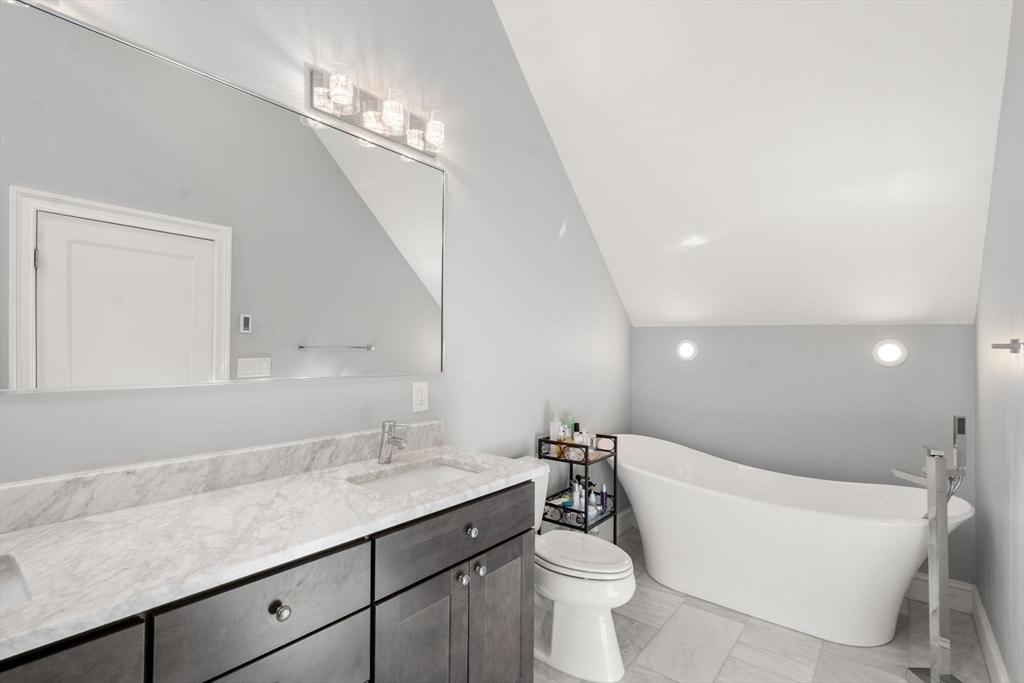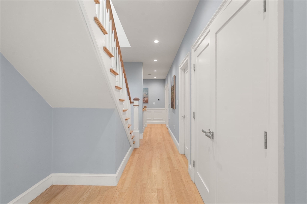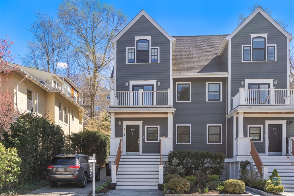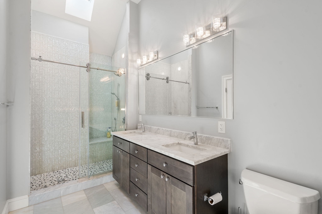 Spectacular single-family alternative. This side-by-side Contemporary Luxury townhouse, newly constructed in 2017, features all the luxury you would expect. Sprawling living room and dining. The eat-in kitchen has custom cabinetry, Thermador appliances, and marble countertops. The kitchen has direct access to the large private/exclusive backyard, which spans two levels. There is a large patio and garden. There are 5 bedrooms and 4.5 baths. Large Primary has cathedral ceilings and an ensuite, featuring a double shower, double vanity, soaking tub, and radiant floor heating. Adjoining the primary is a large family/sitting room with sliders to the patio overlooking the back garden. There is a finished lower level with a large family room and a large bedroom, both with glass sliders for direct outdoor access. There is a convenient kitchenette as well. Playground directly across. Minutes to school, shopping, restaurants, and T. Convenient to Longwood Medical and Boston. 92 Walk Score.