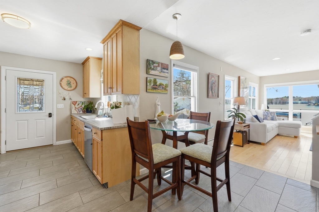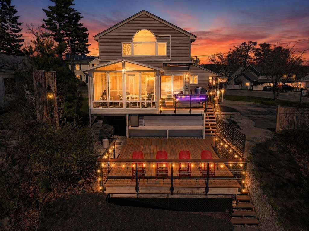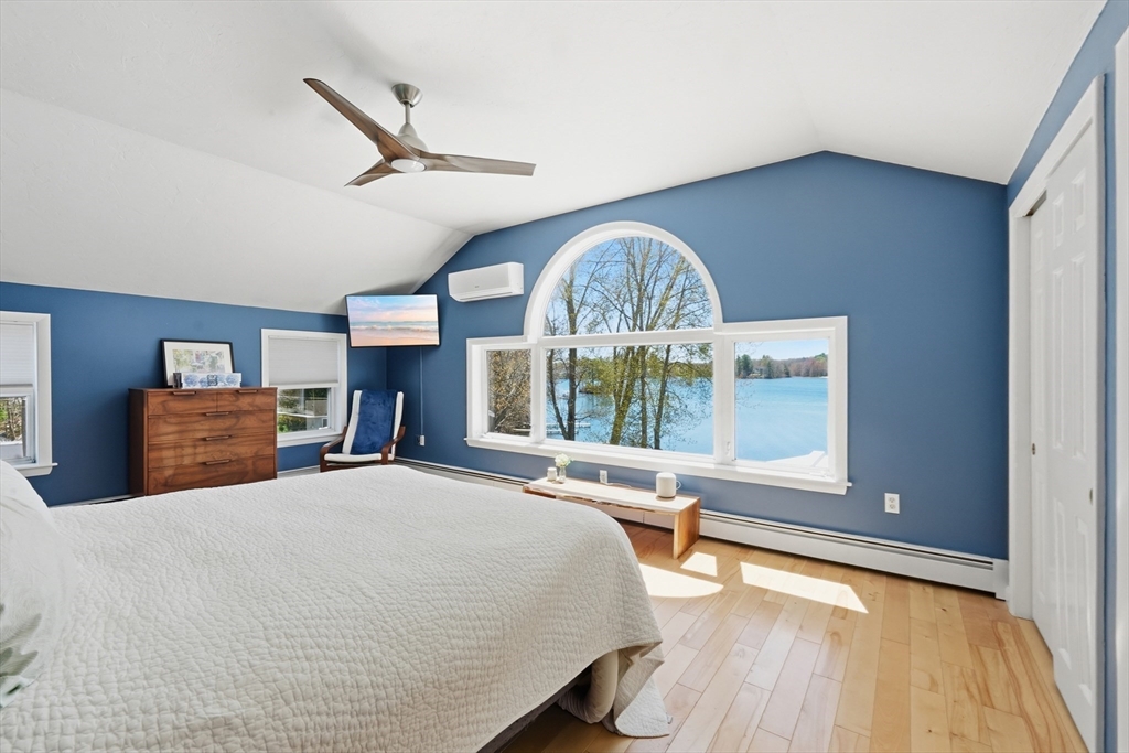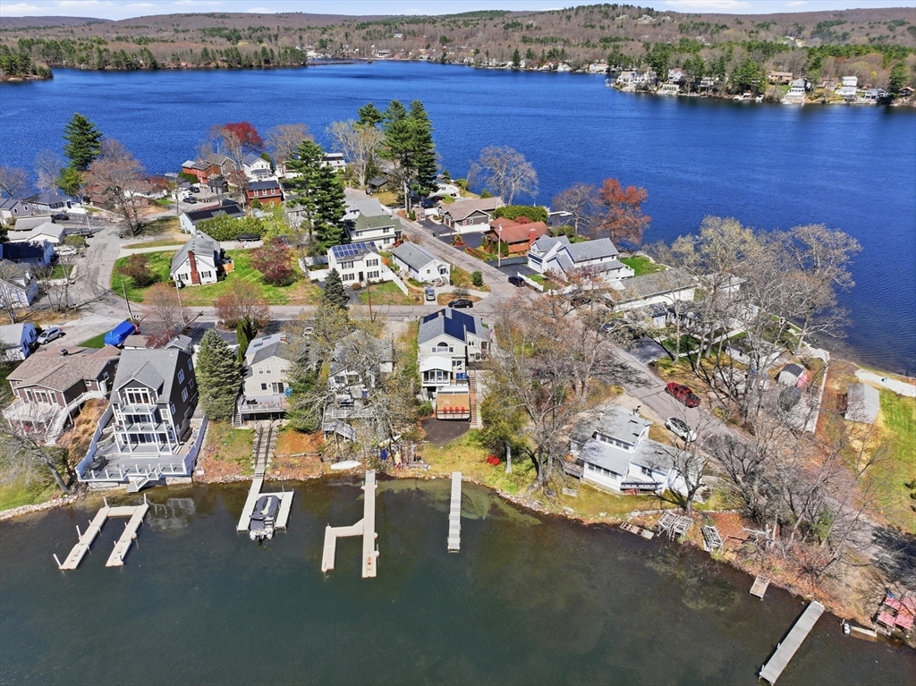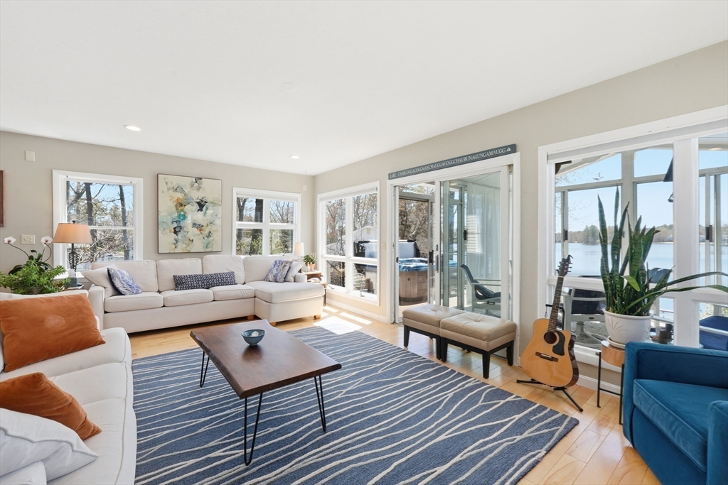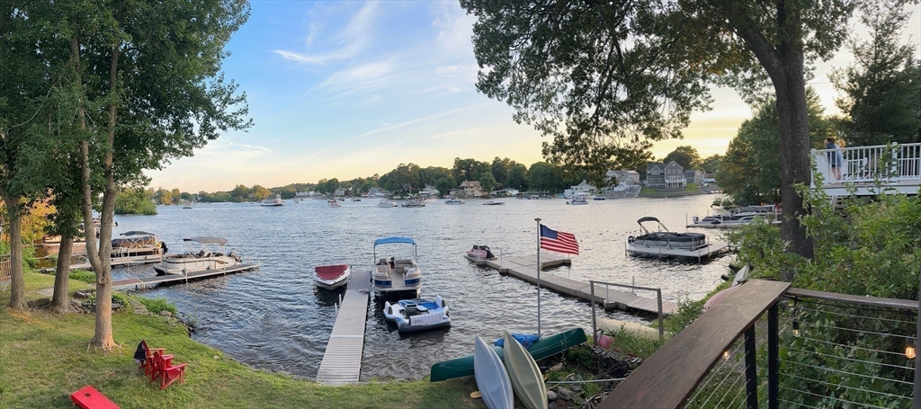 Welcome to Webster Lake on Killdeer Island! This home offers direct water frontage and a private dock. The interior features an open-concept living area and an updated kitchen with stone countertops and 48" cabinets. Hardwood floors throughout the living area and bedrooms, tiled floors in kitchen and bathrooms. The second-level master suite is a private sanctuary with elevated lake views through a beautiful arched window. A screened sunroom and premium composite deck with hot tub are perfect for entertaining. Recent updates include a new roof, high-efficiency hot water heater, oil tank, and mini-splits for climate control. This home is filled with sunshine and offers ample parking on a large driveway, a rare find for waterfront properties! Optional membership in Killdeer Island club. Enjoy everything this lake has to offer: boating, swimming, 3 restaurants, and entertainment at Indian Ranch! DON'T MISS OUT ON LAKE LIVING AT AN AFFORDABLE PRICE! OPEN HOUSE SATURDAY & SUNDAY 12:00-2:00