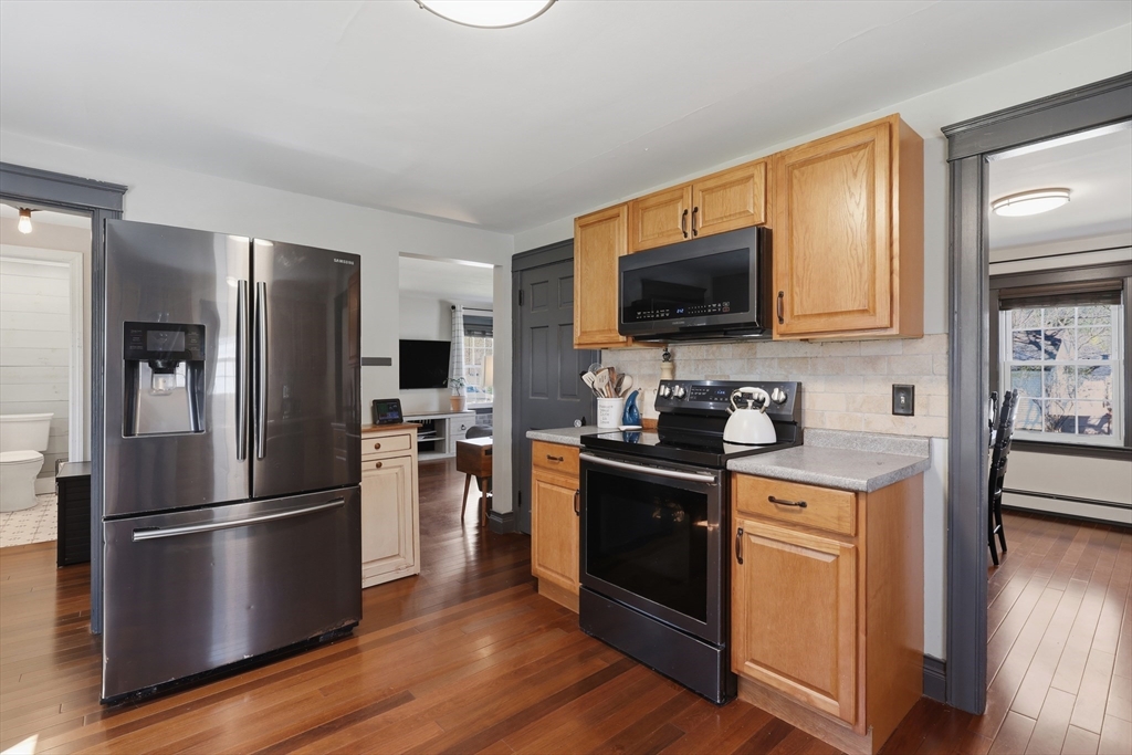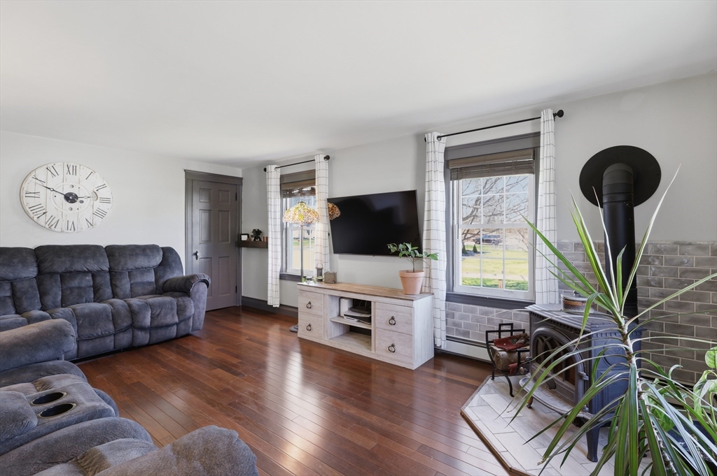Classic New England charm meets modern convenience in this inviting Cape-style home! Enter inside to find hardwood floors flowing throughout and a welcoming living room featuring a cozy fireplace—perfect for relaxing evenings. The spacious kitchen offers ample cabinet space, stainless steel appliances, and flows seamlessly into the formal dining room, ideal for entertaining. A convenient mudroom and half bath complete the main level. Upstairs, you’ll find two bedrooms and an updated full bath with a tiled shower stall and newer vanity. Enjoy your morning coffee or unwind at the end of the day on the covered back porch overlooking a backyard perfect for gardening, play, or peaceful relaxation. Additional features include a paved driveway, attached garage, and storage shed. Commuters will love the easy access to Route 2 and close proximity to the center of Westminster. Don’t miss your chance to make this charming home your own!