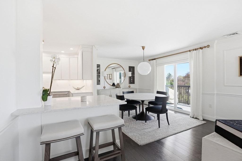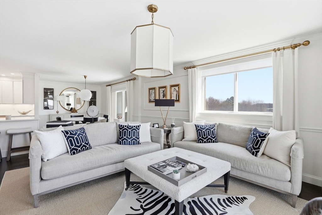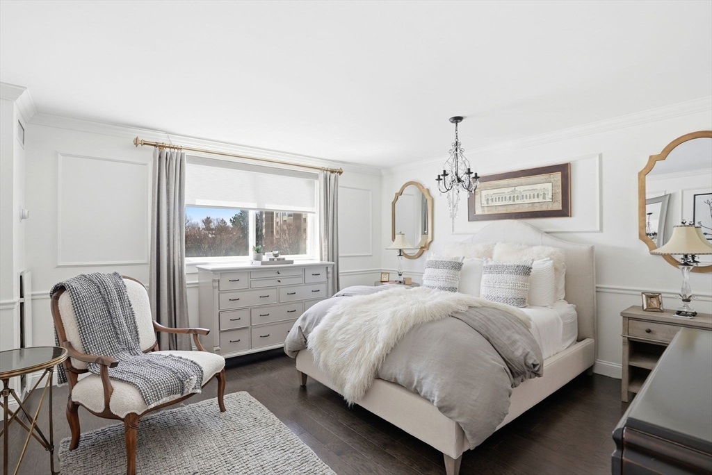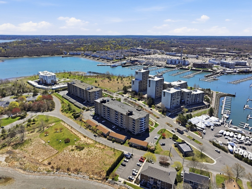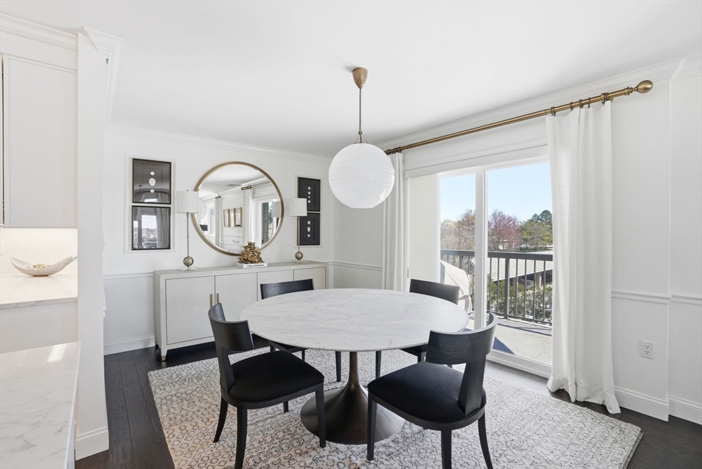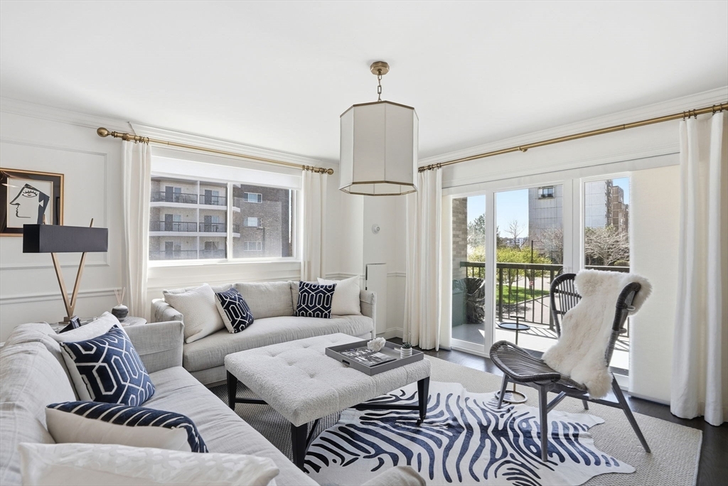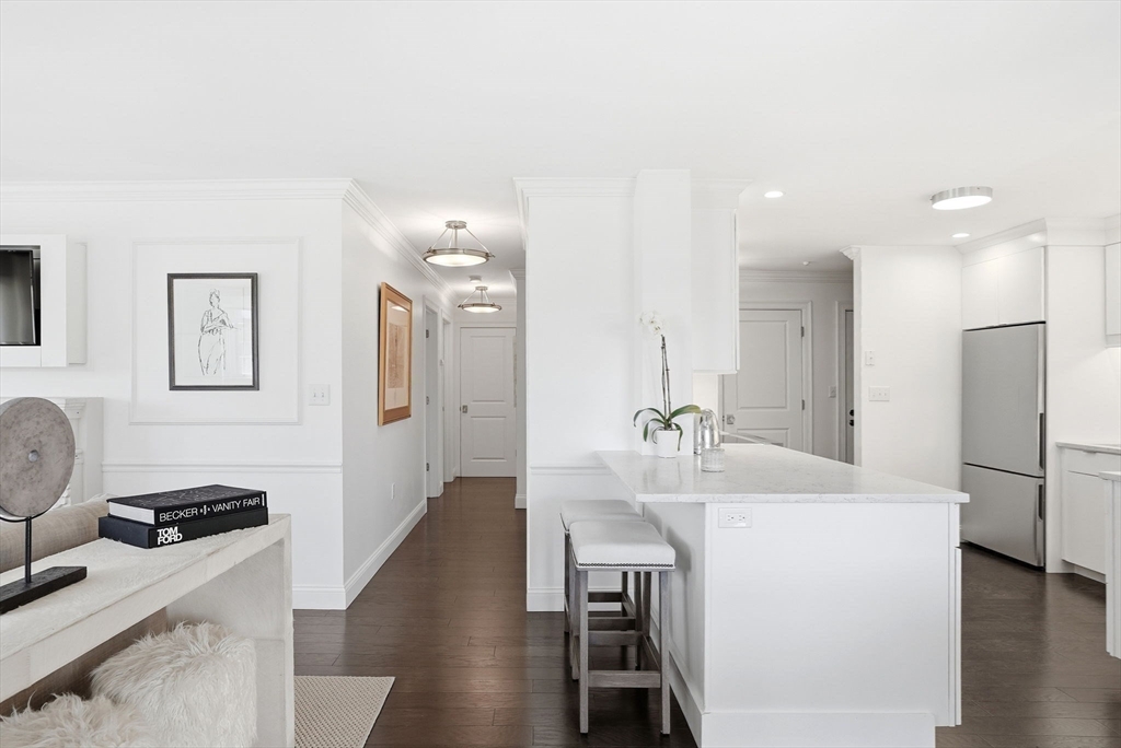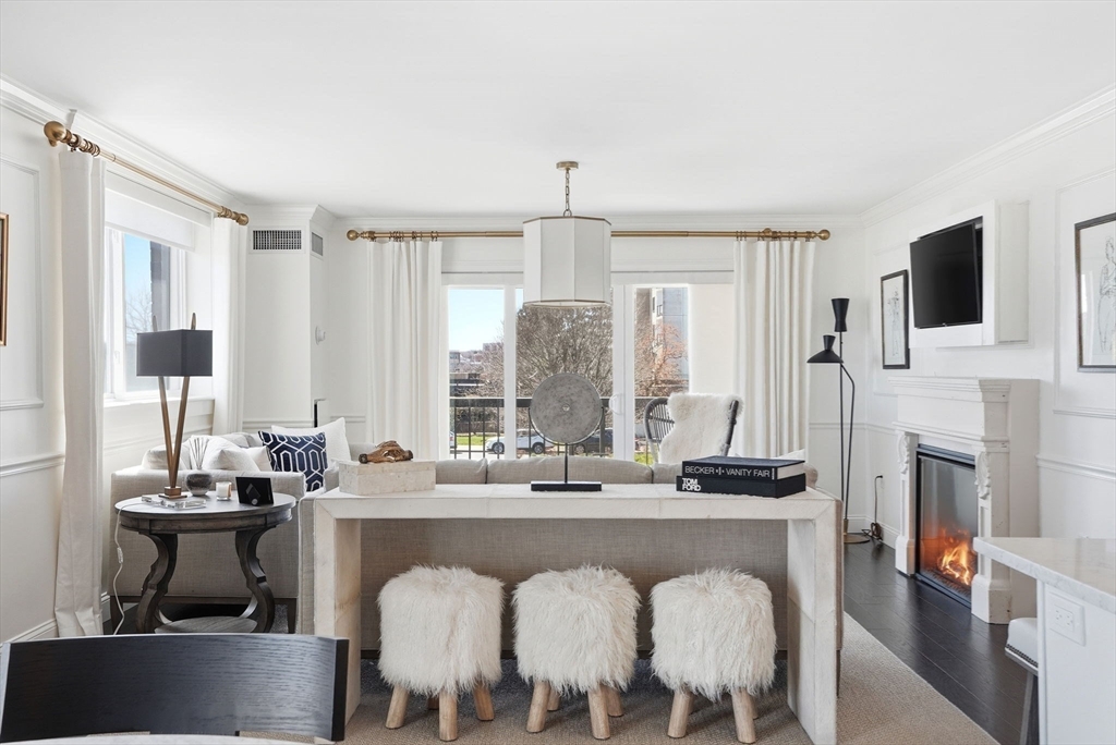 Stunning, private corner unit in sought after waterfront East Bay condominiums. Step inside to discover sunny spaces, an open floor plan, and architectural detail throughout. The welcoming foyer opens to a beautifully renovated residence seamlessly connecting the interior to the outdoors with views from two balconies. A generously sized chef's kitchen with quartz counters, stainless appliances, and a breakfast bar for sipping morning coffee. A wall of glass in the elegant dining room leads to a spacious balcony. The fireplaced living room with additional open space to the 2nd balcony is perfect for entertaining. The beautifully decorated primary suite includes double closets and a luxurious full bath. A second bedroom with full bath. For those seeking timeless design, every detail from the lighting to the flooring is elegant. East Bay offers beautiful common areas, elevators from the assigned garage parking, and waterfront al fresco dining. Minutes to the beach, Webb Park and Ferry.