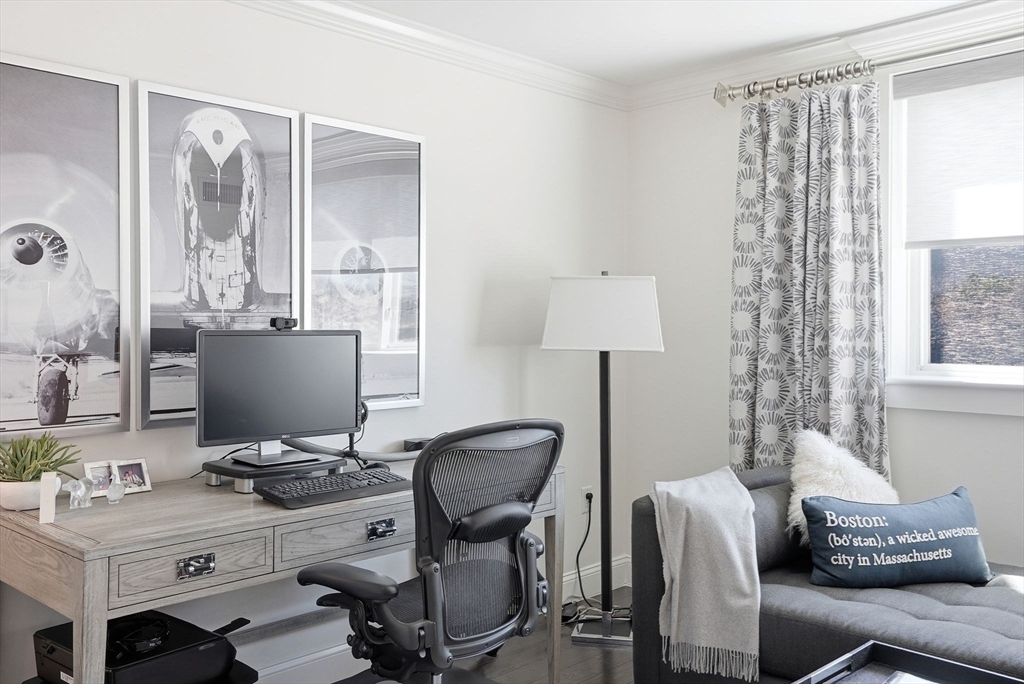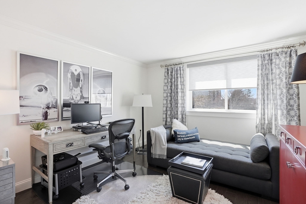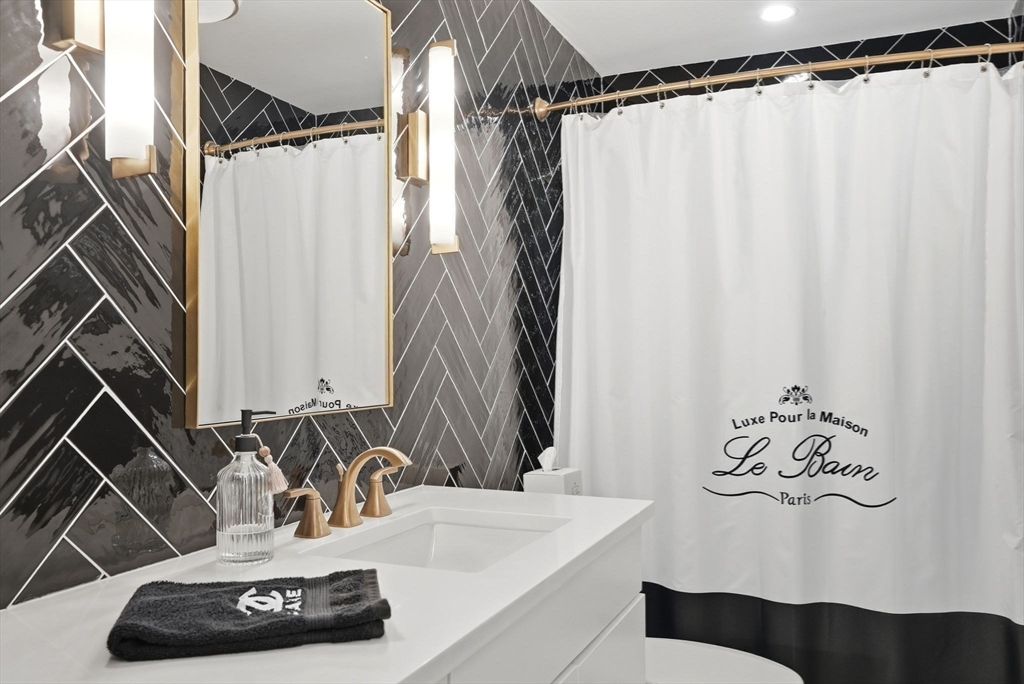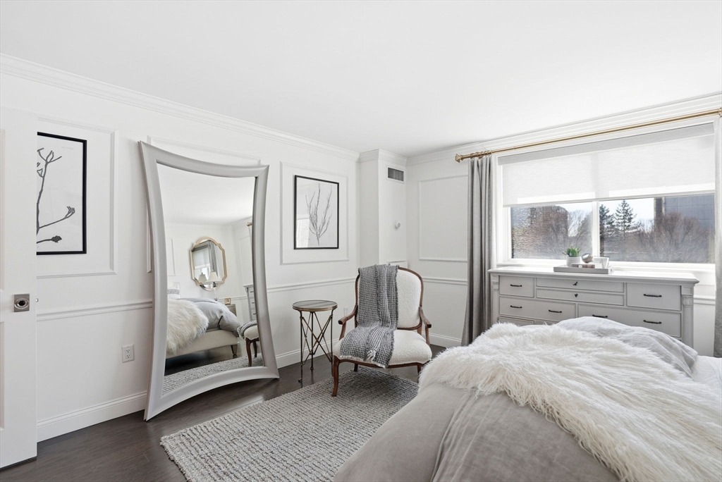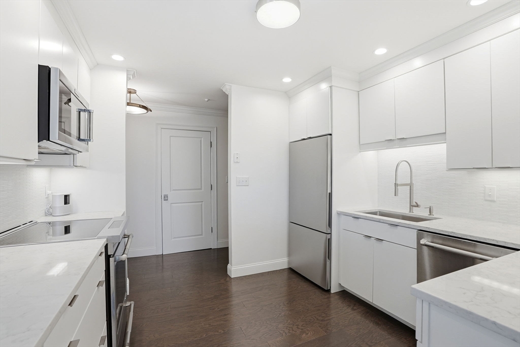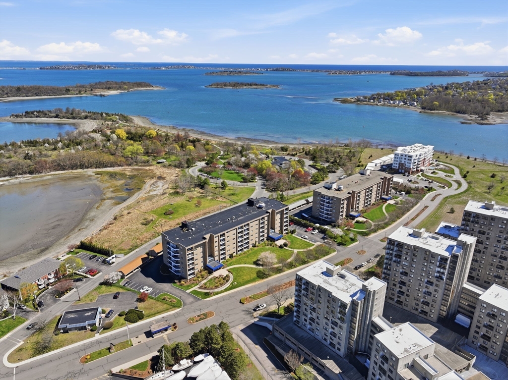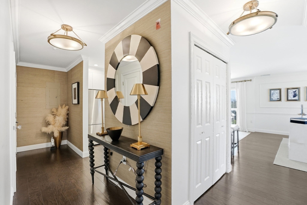 Stunning, private corner unit in sought after waterfront East Bay condominiums. Step inside to discover sunny spaces, an open floor plan, and architectural detail throughout. The welcoming foyer opens to a beautifully renovated residence seamlessly connecting the interior to the outdoors with views from two balconies. A generously sized chef's kitchen with quartz counters, stainless appliances, and a breakfast bar for sipping morning coffee. A wall of glass in the elegant dining room leads to a spacious balcony. The fireplaced living room with additional open space to the 2nd balcony is perfect for entertaining. The beautifully decorated primary suite includes double closets and a luxurious full bath. A second bedroom with full bath. For those seeking timeless design, every detail from the lighting to the flooring is elegant. East Bay offers beautiful common areas, elevators from the assigned garage parking, and waterfront al fresco dining. Minutes to the beach, Webb Park and Ferry.