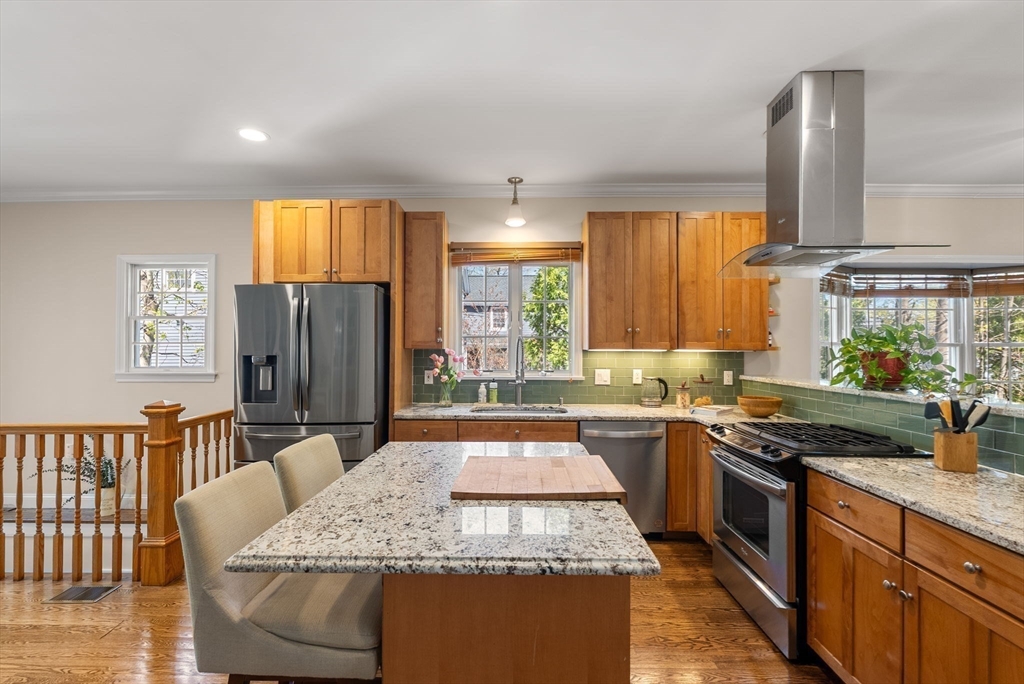 Welcome home! Beautiful sun-filled 3-bedroom, 3.5-bath townhome in coveted location just minutes from West Newton Square shops, restaurants & train.This bright & spacious home features an open-concept design w/ 9-foot ceilings, creating an airy, inviting feel throughout. The well equipped kitchen w/ maple cabinetry, stone countertops & center island opens seamlessly to dining & living areas w/ gas fireplace—ideal for gatherings w/ family & friends. Upstairs, the primary suite offers a peaceful retreat w/ private bath highlighted by a cathedral ceiling & skylight that fills the room w/ natural light, two additional bedrooms, full bath & laundry for everyday convenience. Great finished lower level w/ full bath directly connects to the main living space via an open stairwell, creating a natural extension of the home—perfect for a playroom, office or gym. Beautiful, spacious grounds w/ private deck & one car garage. Lives like a single family home. A gem!
