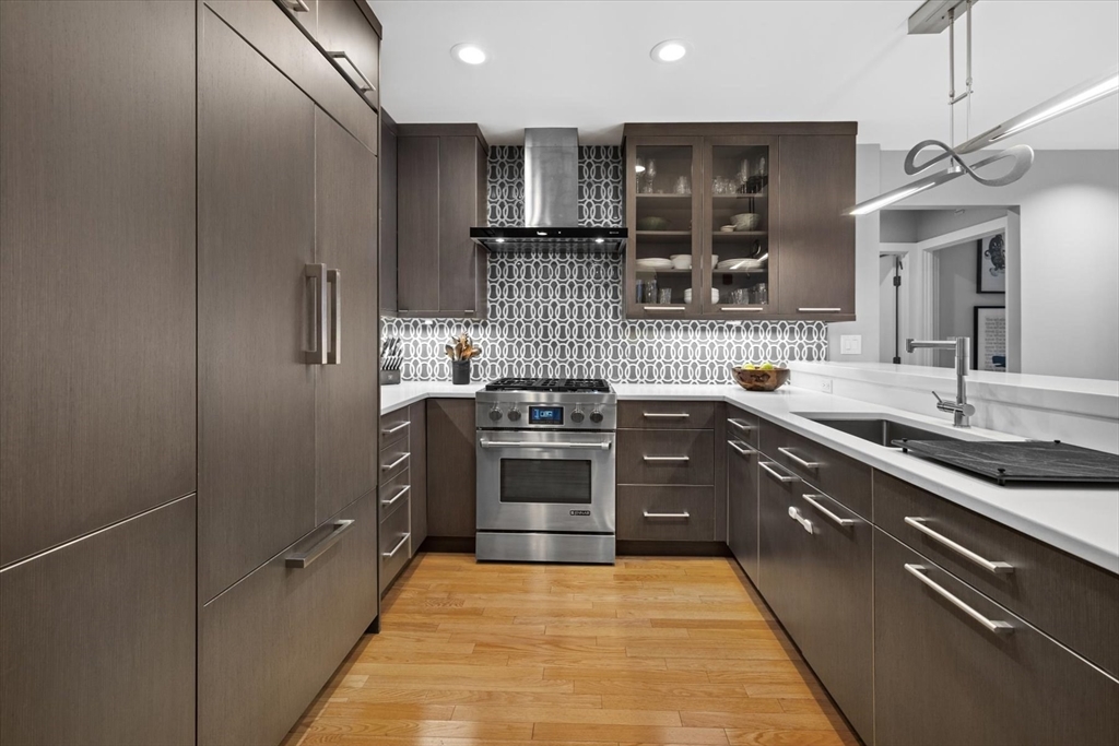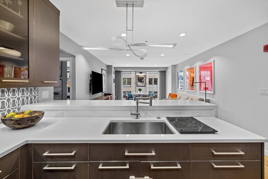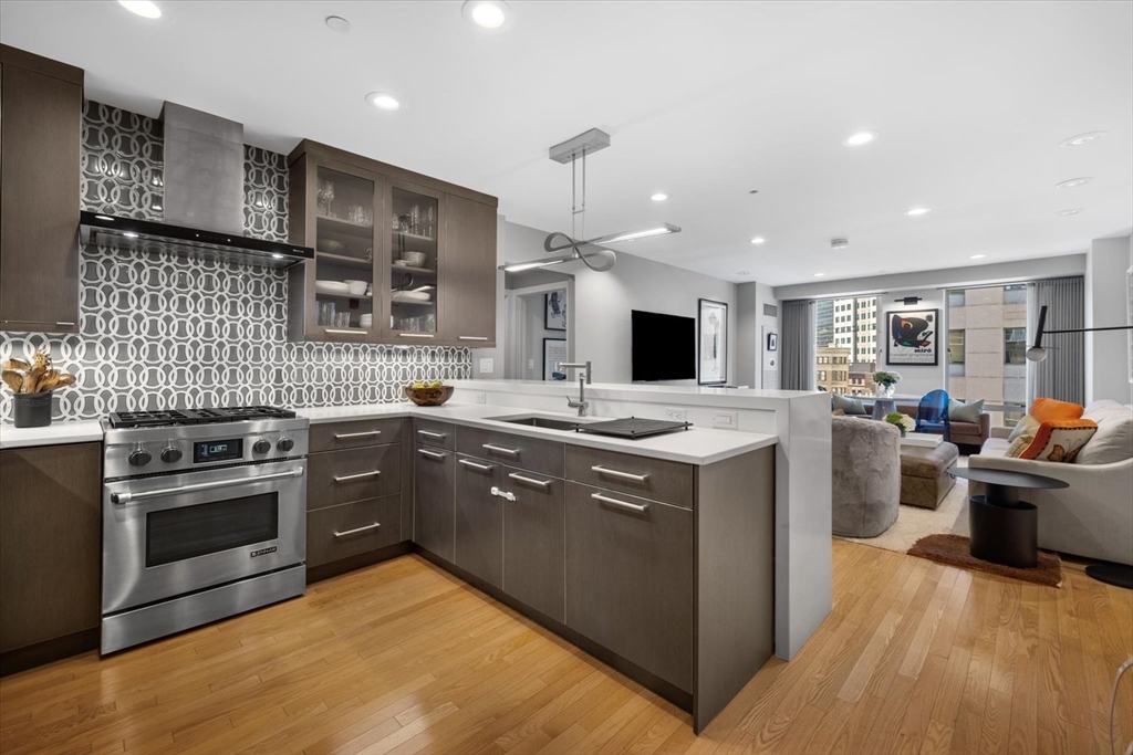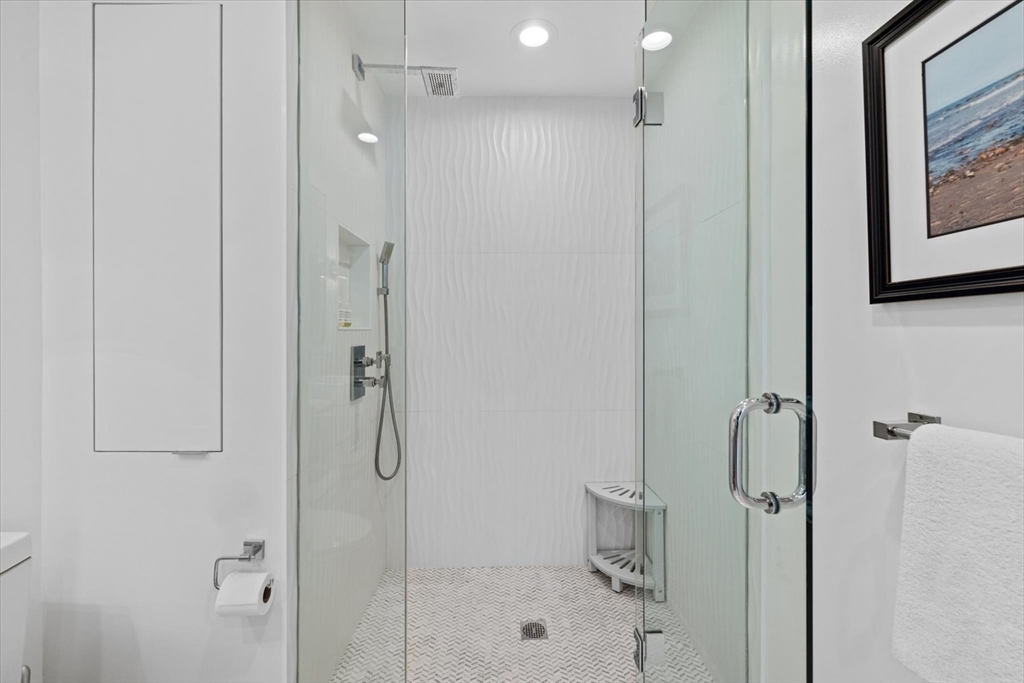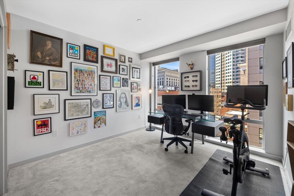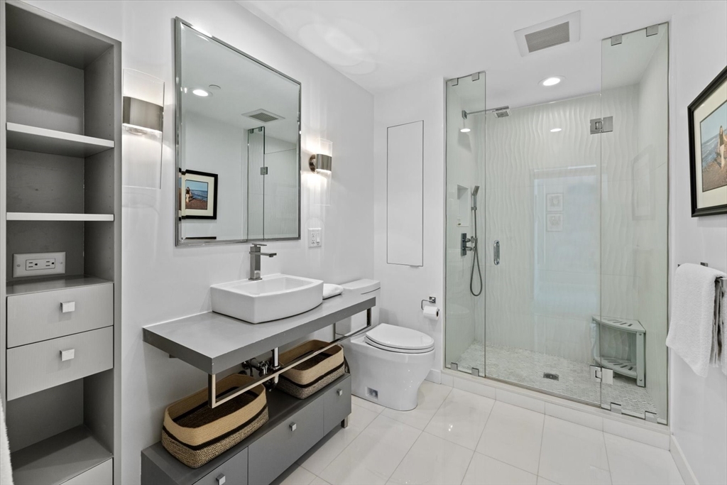 Crazy 8's!! Discover sophisticated urban living at the Folio building located at 80 Broad St. Unit 808 has been extensively renovated, featuring 1168 SQ FT of luxury living space. Located on the 8th floor w/ corner exposures, this condo features a recently updated kitchen w/ commercial grade paneled appliances, high end custom kitchen cabinetry, stone counters & open concept living that integrates w/ the living/dining areas. Unobstructed views throughout, this sun drenched home is equipped w/ custom built-ins, floor to ceiling glass windows, upgraded hardwood floors, A/C, In-unit W/D & custom built out closets in every room. Each of the SPA like, renovated baths is appointed w/ contemporary fixtures, including floating vanities, stone floors, guest bath soaking tub & walk-in ensuite shower leading to spacious primary suite w/ floor to ceiling views of the Boston skyline. The Folio is a 24HR concierge building w/ deeded storage & VALET PARKING! Located in the Waterfront neighborhood.