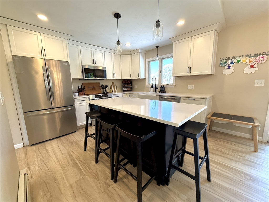 This is one of the nicest homes you'll see on the market! With loads of updates, this charming 3 bed, 2.5 bath home is move-in ready with the perfect, large backyard! The stunning and spacious living room is truly a sight to see, with a captivating fireplace anchoring the main living area! The kitchen features updated stainless steel appliances and a massive center island, perfect for entertaining and cooking. The dining room features gorgeous flooring and is the perfect spot to enjoy a meal while looking out the back slider and viewing the large and lush, green backyard. The main bathroom features tasteful tile, updated vanity and updated fixtures. All three bedrooms are generously sized with ample closet space. Not to be missed is the massive finished basement with a second standout fireplace, extra storage options and another bathroom! An oversized two car garage has plenty of room for larger cars and extra storage space too!