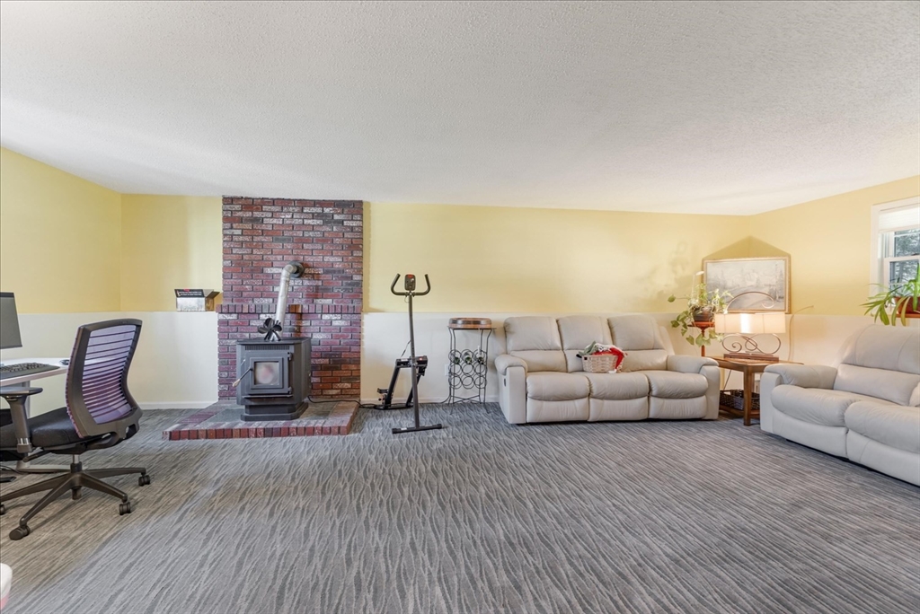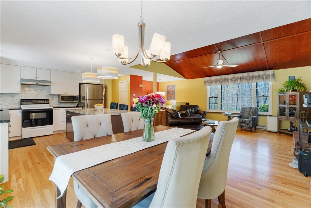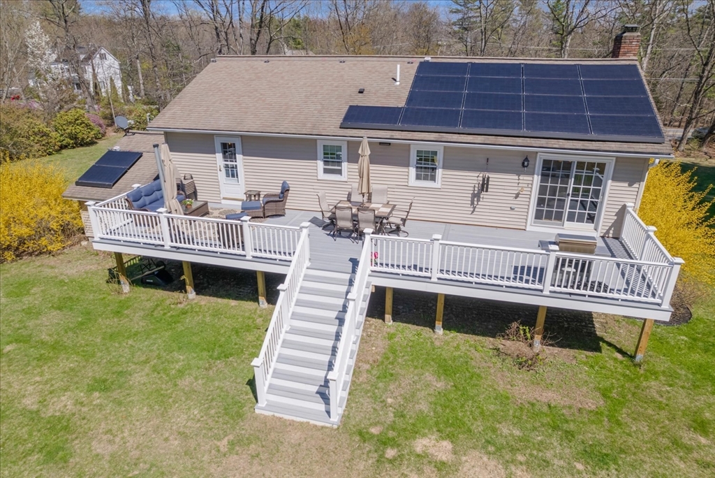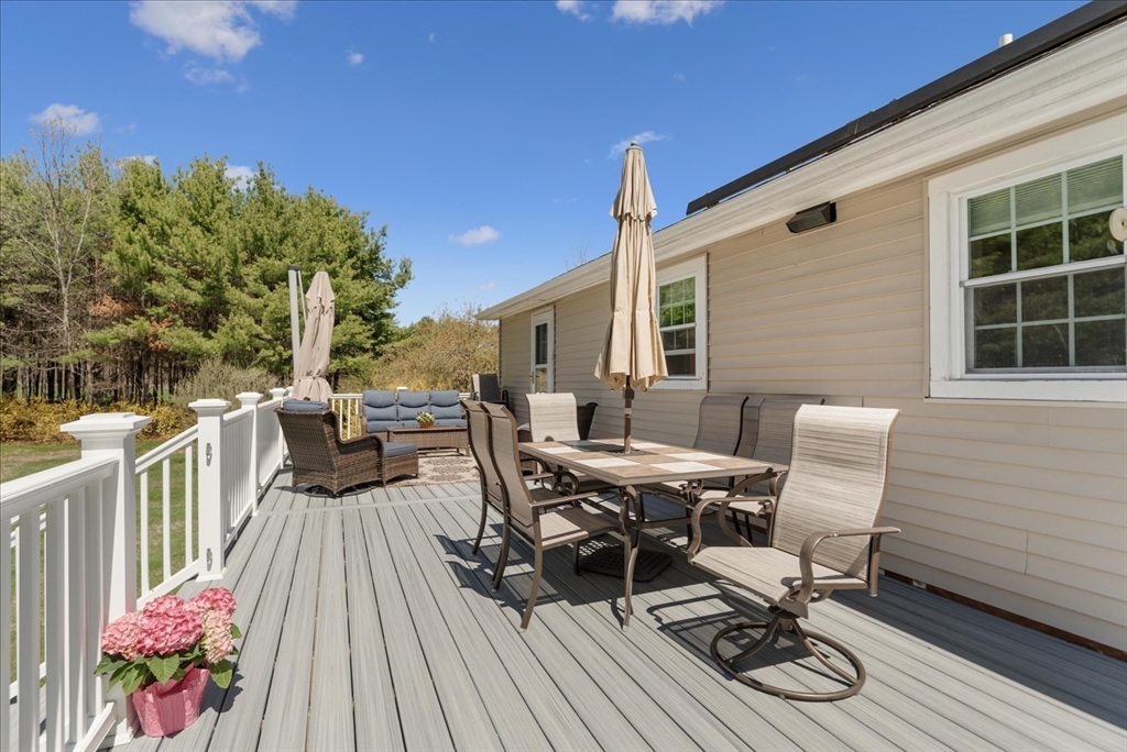 Welcome to this beautifully updated Raised Ranch nestled on 1.8 acres of level land. This spacious home grants a sun-filled open concept layout designed for convenient living. The remodeled kitchen showcases granite countertops and a massive center island flowing seamlessly into the main living area, highlighted by a custom-crafted ceiling and a classic brick fireplace creating a warm & inviting atmosphere. Enjoy peace of mind with updates throughout, along with energy-saving solar panels. A new oversized deck, perfect for entertaining or relaxing while overlooking your private backyard leading to a scenic walking trail. A master bed & bath and a finished basement w/ pellet stove present increased comfort & living space ideal for a home office, recreation area or endless possibilities. Additional features: Attached garage, ample off-street parking. Conveniently located near Rt.2, Commuter Rail, schools, public pool, dining &more this move-in ready home truly has it all! Don't miss out!