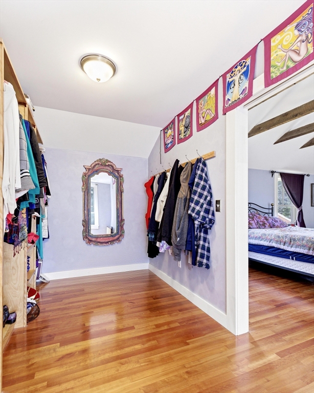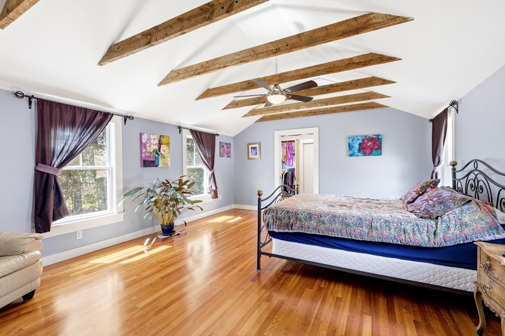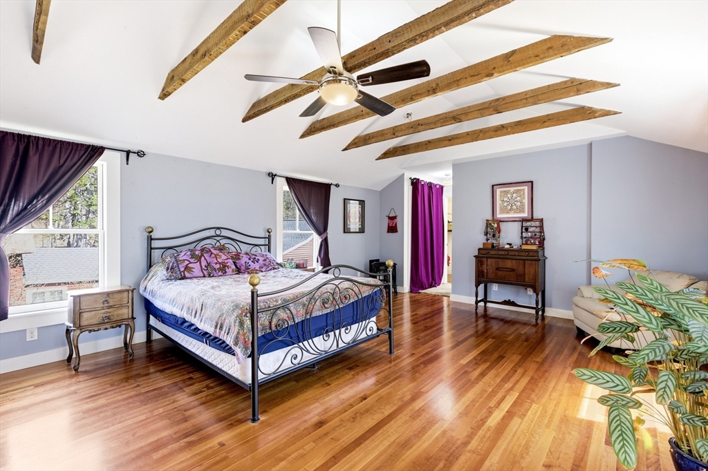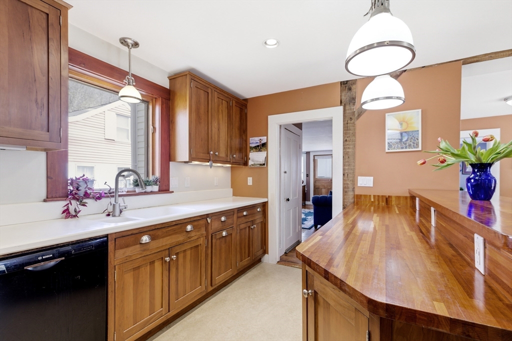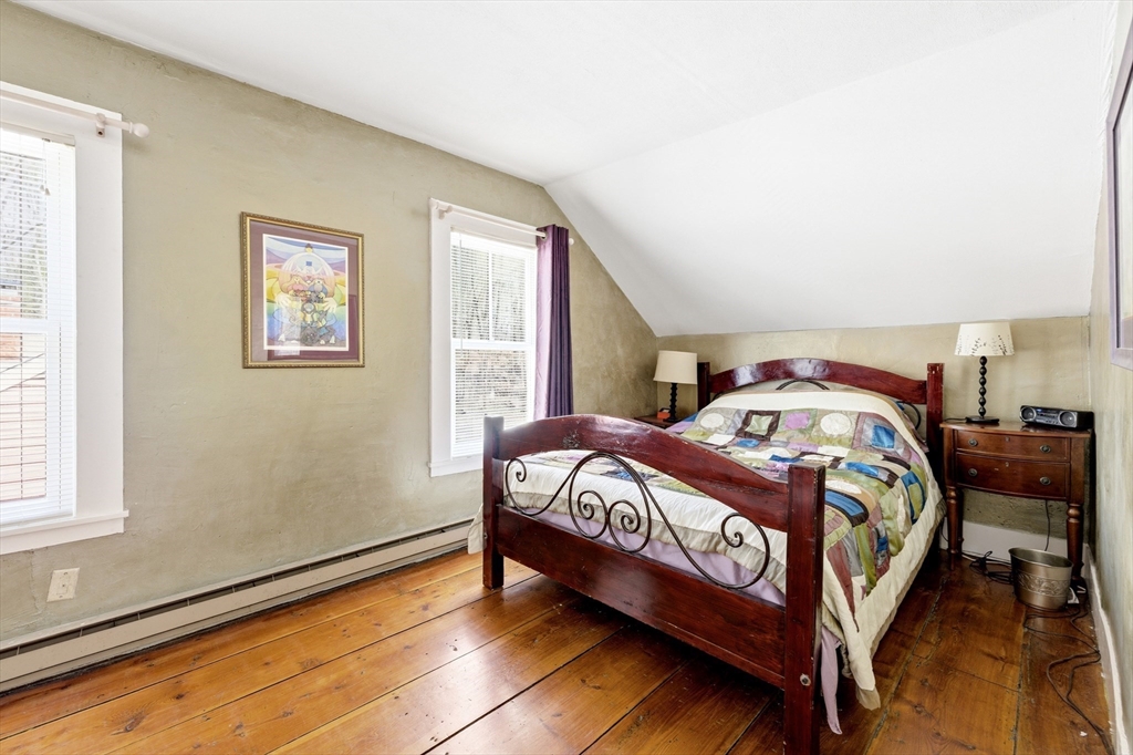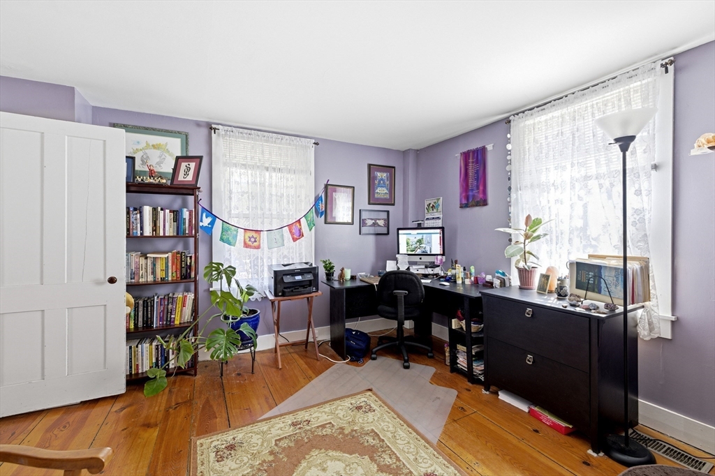 Traditional 4 bed/2.5 bath farmhouse with modern updates! The renovated kitchen offers abundant cabinetry & workspace w/ peninsula seating & a cozy dining area.The main level features a versatile family room or guest space w/ half bath, a welcoming living room & a dedicated office or dining rm. Rich wood flooring runs throughout much of the home. Upstairs, three original bedrooms alongside a spacious primary bedroom with spa-like ensuite bath, huge walk-in closet & propane stove. Extras: owned solar panels, pellet stove, newer water heater and asphalt driveway. Enjoy peaceful mornings on the front porch or custom paver patio, afternoons in the garden and open space of the large yard. A contemporary, attached barn provides additional storage. Puffers Pond & its waterfall dam are across the street, as are several wooded paths. Close to Mill River Recreation area with its outdoor summer pool, the vibrant Mill-District, UMass and Amherst Center. Showings begin @ Friday Open House 4:30-6pm.