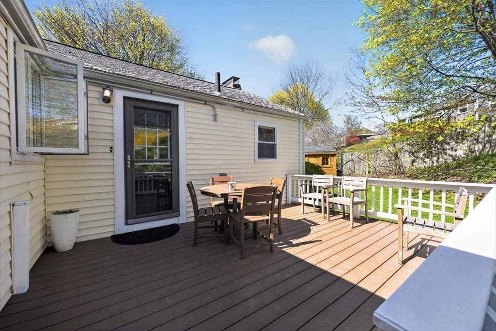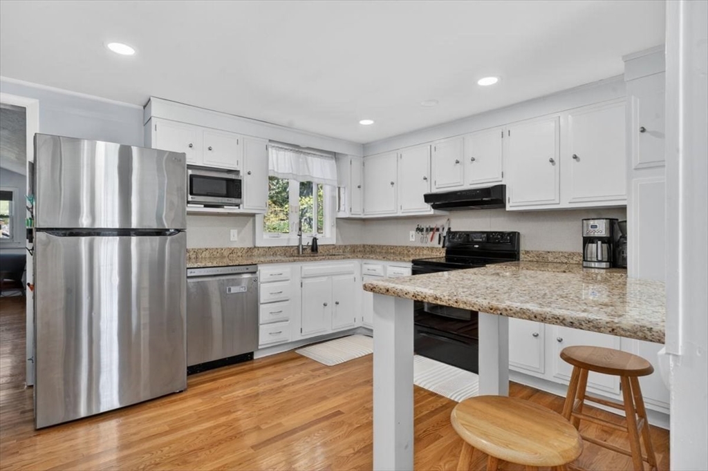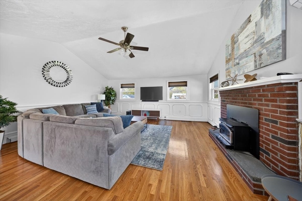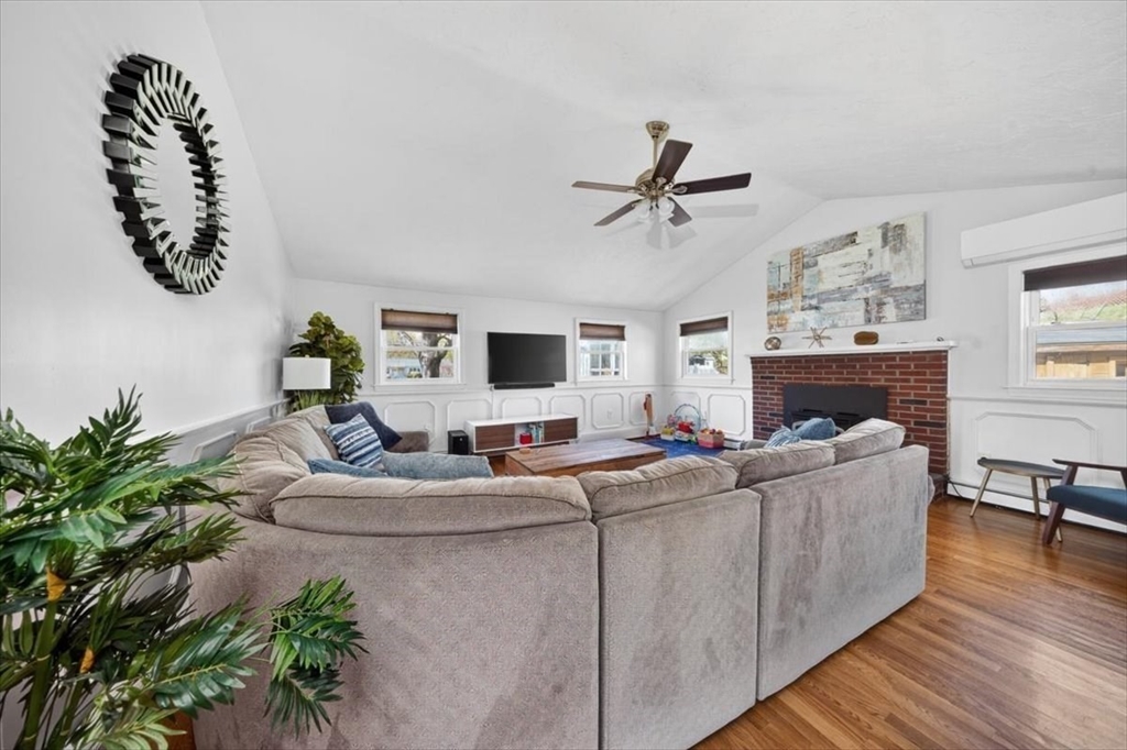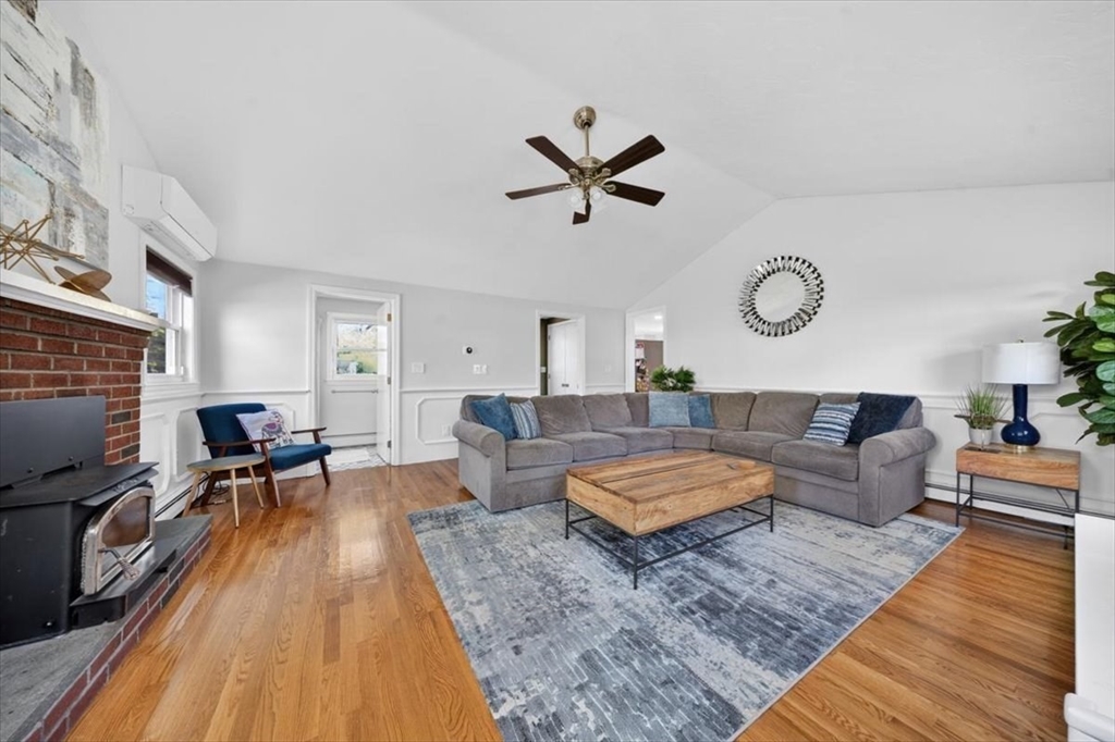 Move right in and enjoy summer in this sought after South Weymouth location! This home offers a warm and inviting layout with hardwood floors throughout and a bright kitchen and living area that flow effortlessly for everyday living and entertaining. Both bathrooms have been beautifully renovated with a clean, modern feel. The family room features vaulted ceilings, creating an open and airy space filled with natural light. An additional finished room in the basement offers flexibility for a home office, gym, or playroom. Recent improvements include a new roof (2022), mini splits for efficient heating and cooling (2023), and a low maintenance Trex deck (2023) perfect for relaxing outdoors. Ideally located near shopping, dining, commuter routes, and the commuter rail, this home offers comfort, style, and convenience.