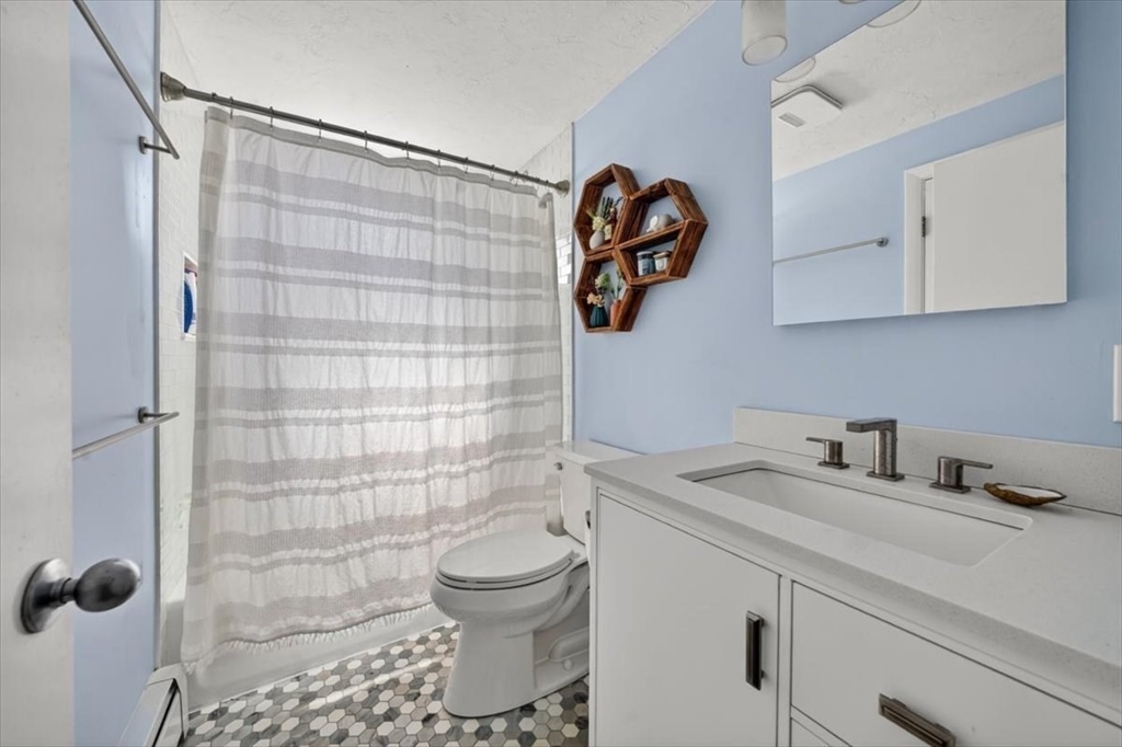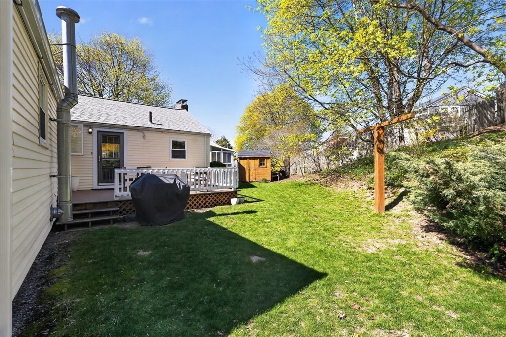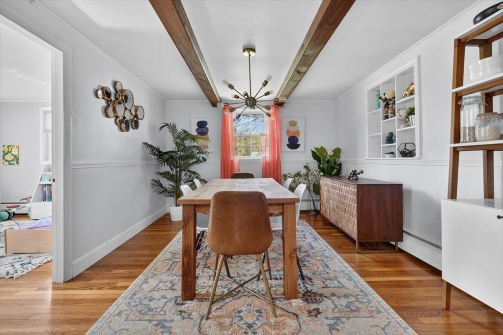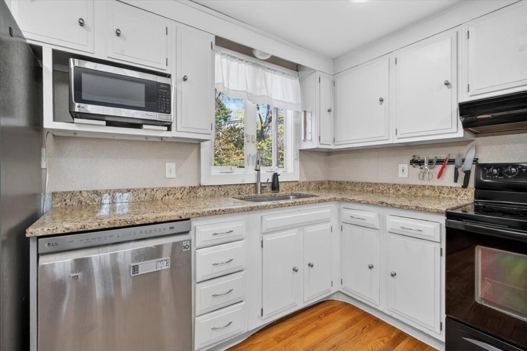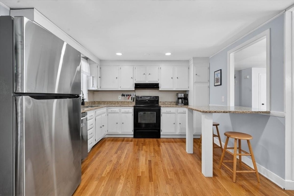 Move right in and enjoy summer in this sought after South Weymouth location! This home offers a warm and inviting layout with hardwood floors throughout and a bright kitchen and living area that flow effortlessly for everyday living and entertaining. Both bathrooms have been beautifully renovated with a clean, modern feel. The family room features vaulted ceilings, creating an open and airy space filled with natural light. An additional finished room in the basement offers flexibility for a home office, gym, or playroom. Recent improvements include a new roof (2022), mini splits for efficient heating and cooling (2023), and a low maintenance Trex deck (2023) perfect for relaxing outdoors. Ideally located near shopping, dining, commuter routes, and the commuter rail, this home offers comfort, style, and convenience.